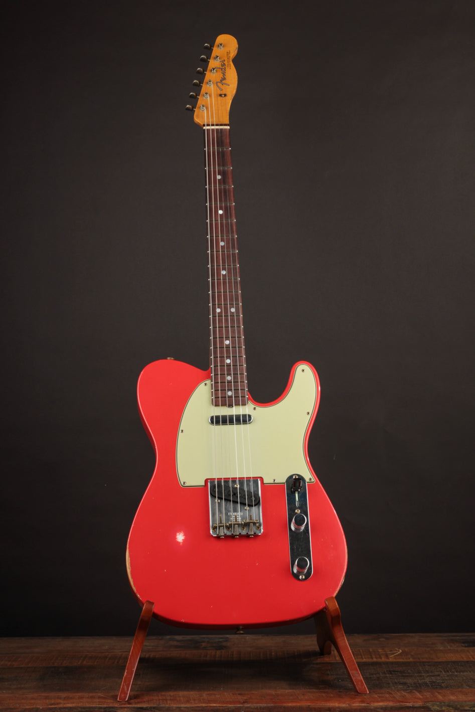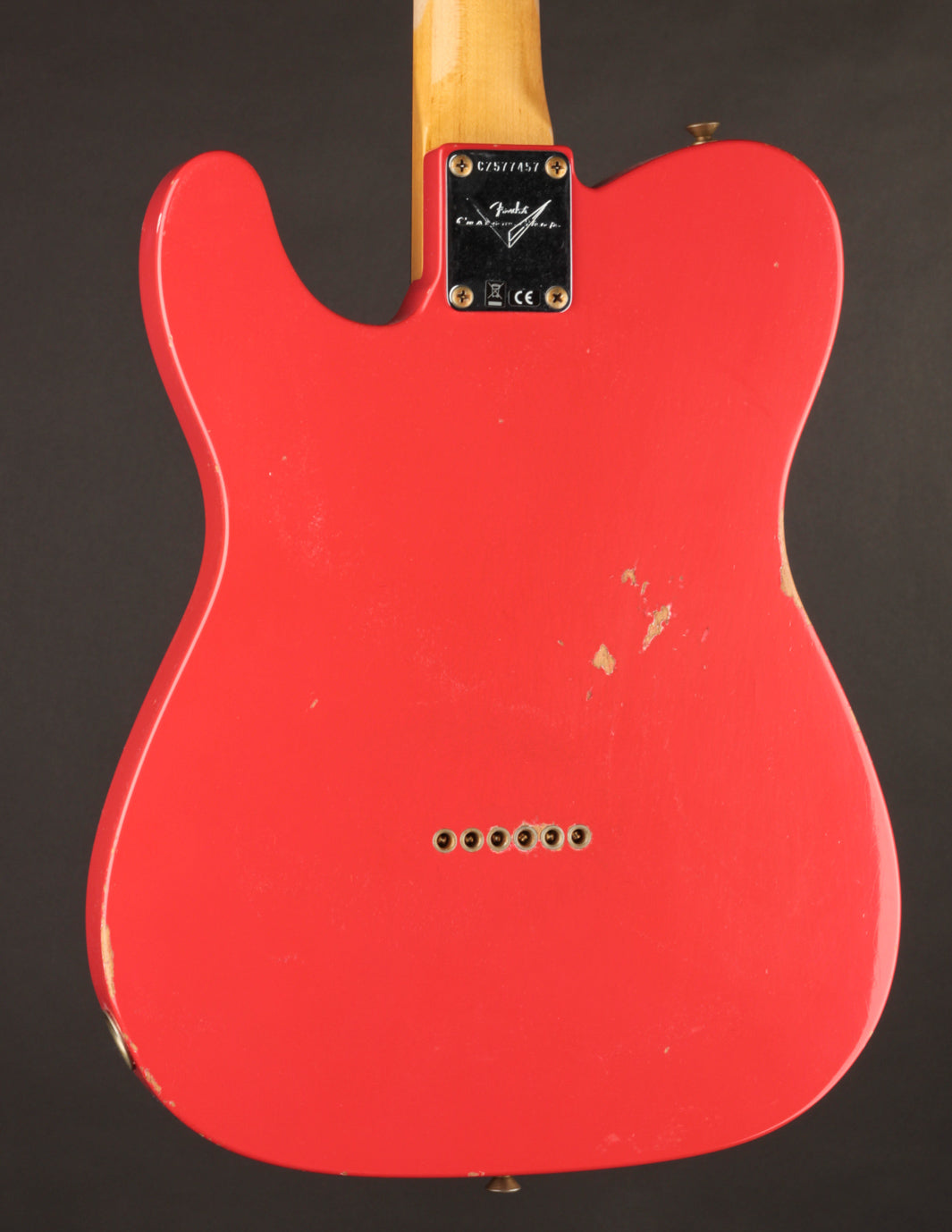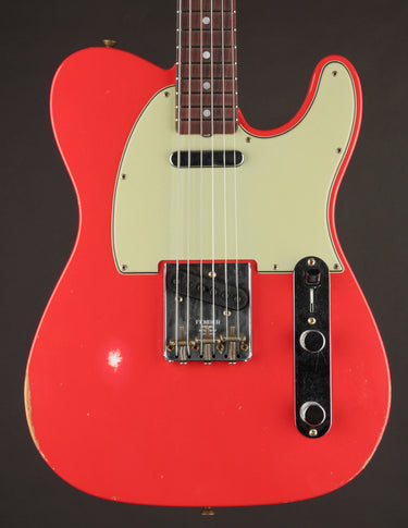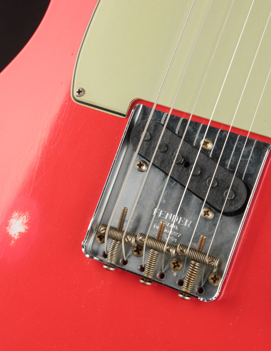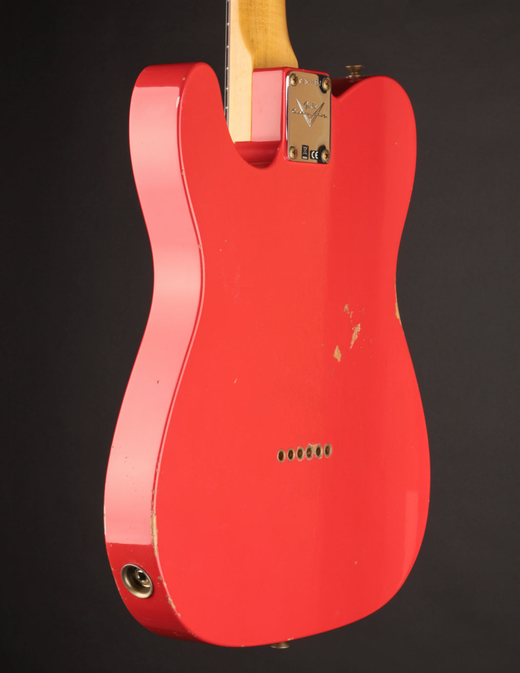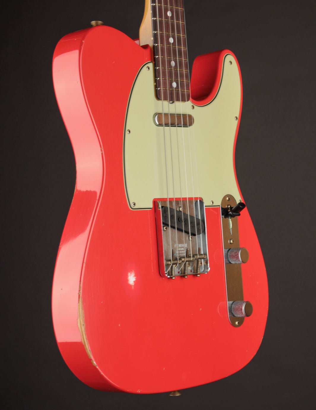This '64 Telecaster's two-piece body is made from select alder for well-balanced sound, and features a Relic lacquer finish in Aged Fiesta Red. From the finish checking that covers the body to every last ding, dent and scar from bridge to headstock, this treatment imparts authentically worn-in look and feel and tells a story of a guitar that has experienced many years of regular use in clubs and bars.