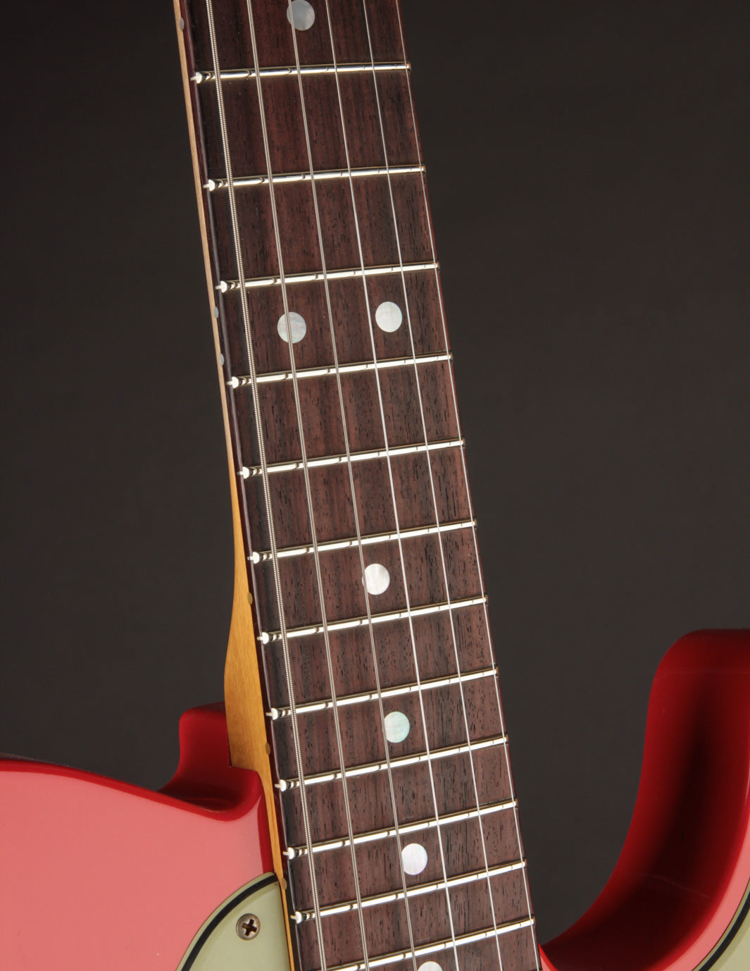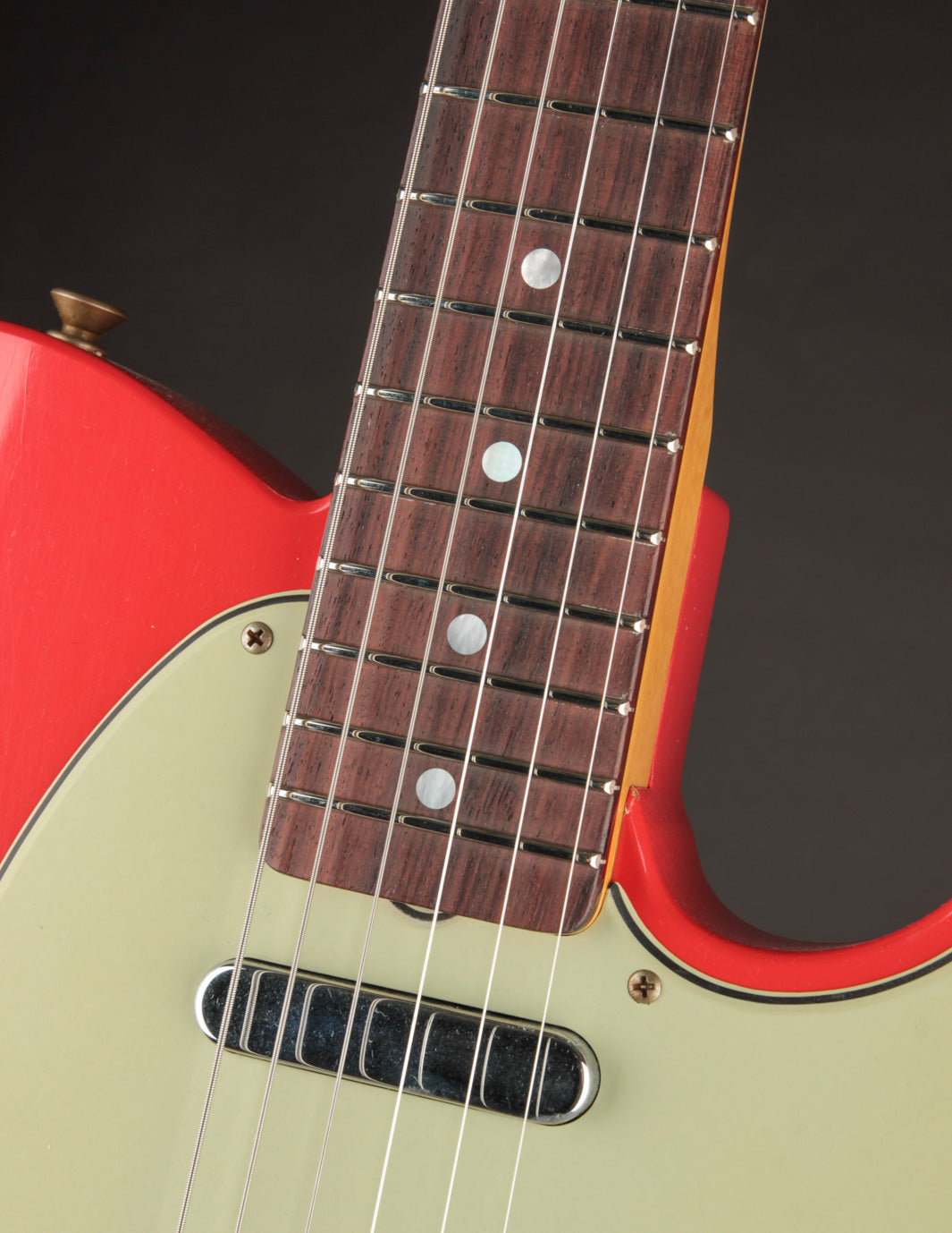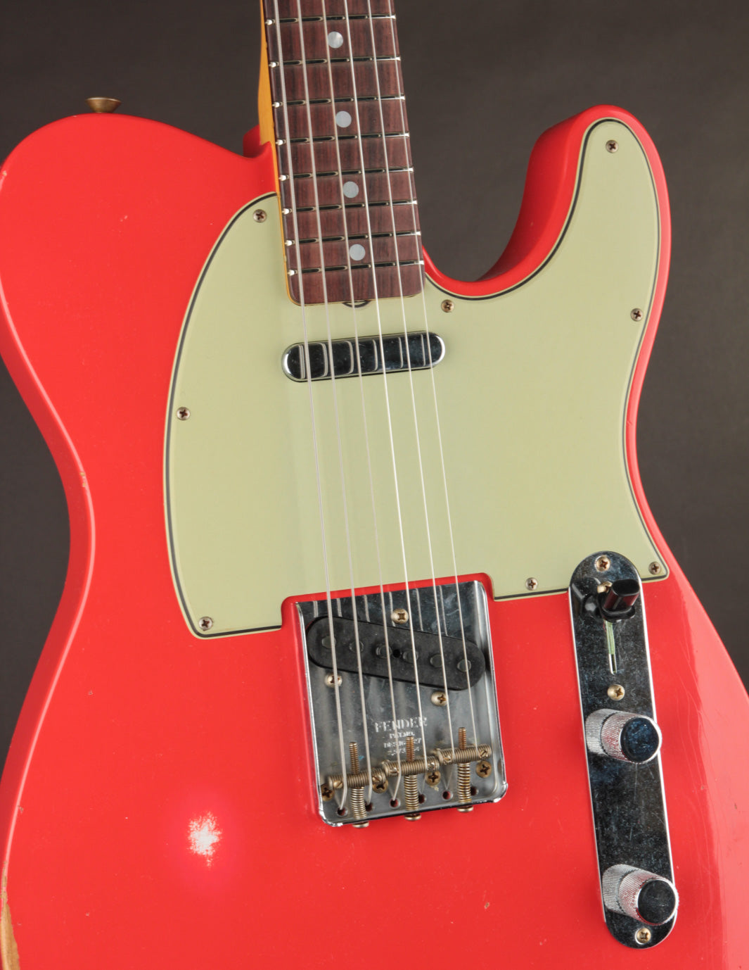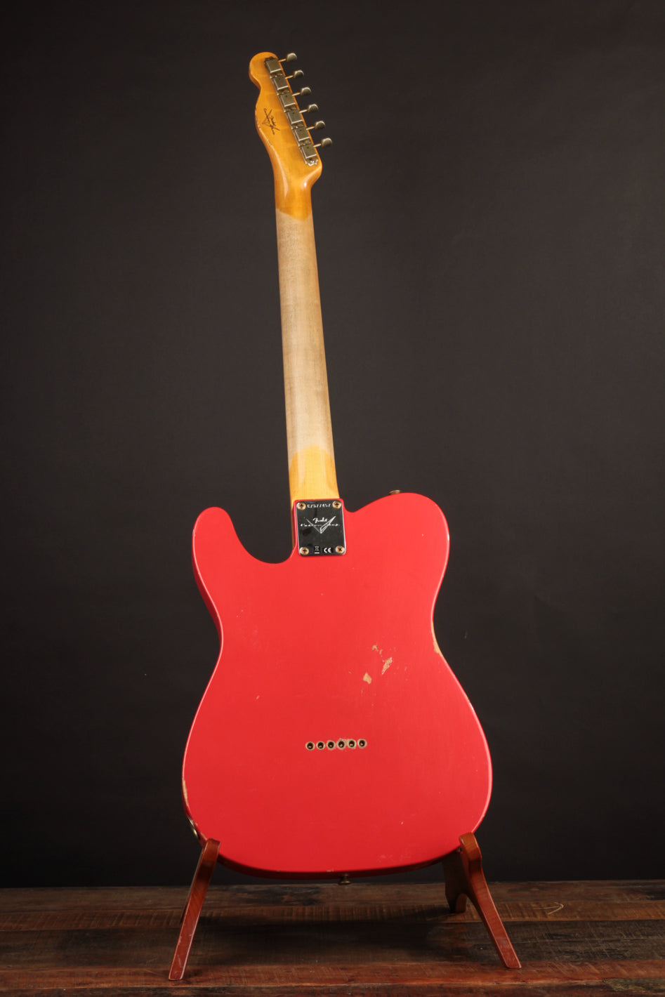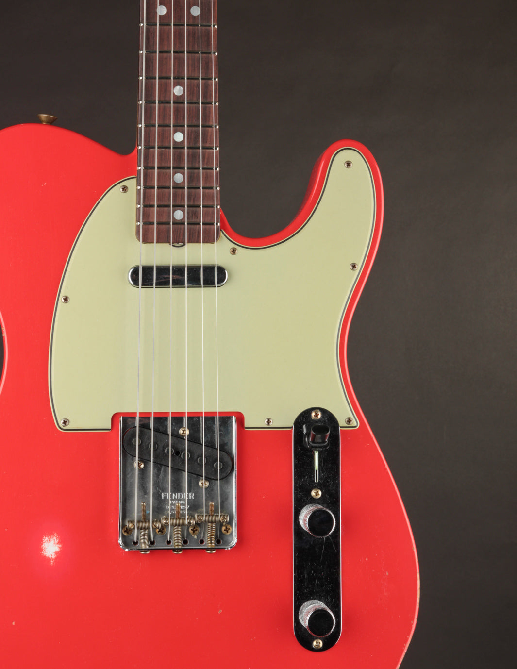 This '64 Telecaster's two-piece body is made from select alder for well-balanced sound, and features a Relic lacquer finish in Aged Fiesta Red. From the finish checking that covers the body to every last ding, dent and scar from bridge to headstock, this treatment imparts authentically worn-in look and feel and tells a story of a guitar that has experienced many years of regular use in clubs and bars.