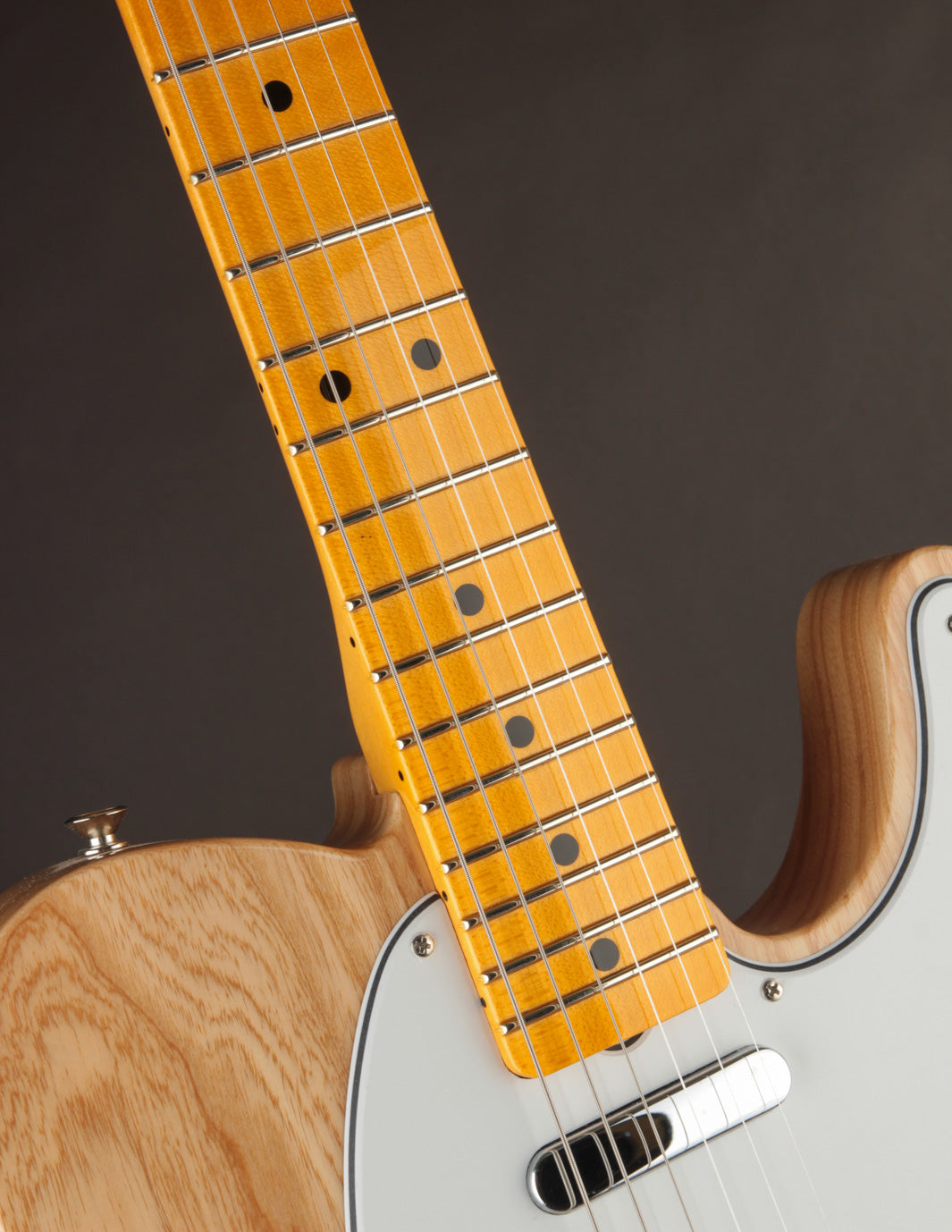 The gorgeous two-piece select ash body gives it that classic Tele snap and clarity with a slightly scooped midrange, while the quartersawn maple neck - with its comfy '60s Oval C profile and narrow tall frets - feels immediately familiar and comfortable under the fingers. It’s a fast, lively neck that doesn’t fight you, whether you’re digging in for twangy leads or riding the volume knob for subtler textures.
