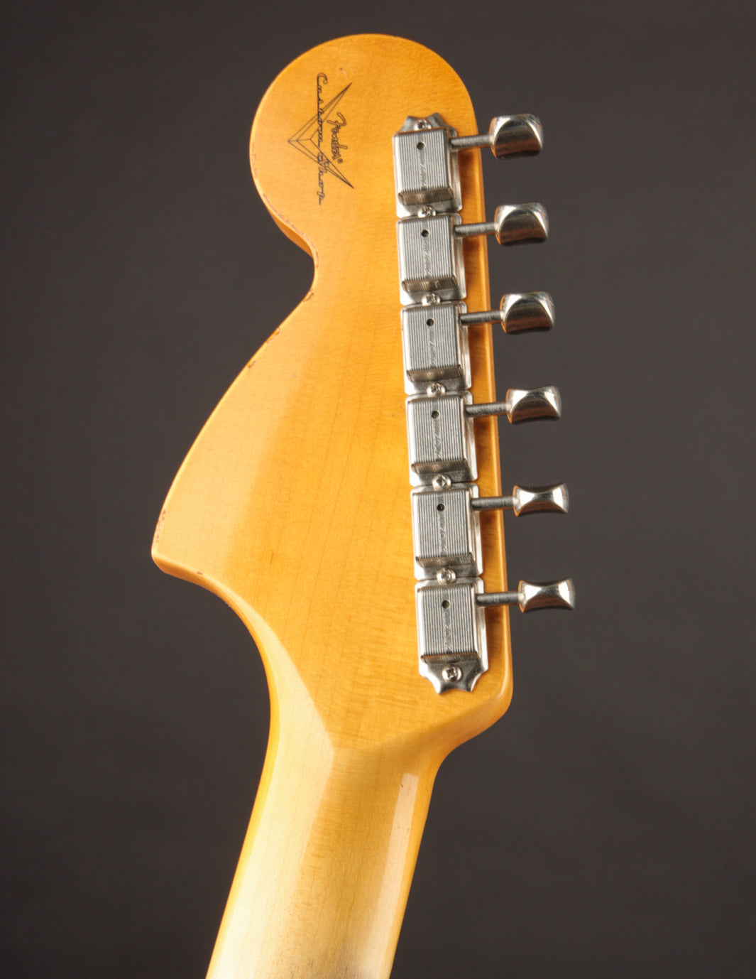 Other features include a 9.5" radius, 21 narrow tall (6105) frets, Vintage Modified #2 wiring with tone-saver bleed, 5-way switch, 3-ply parchment pickguard, Custom Shop vintage synchronized tremolo, vintage-style tuning machines, bone nut, wing string tree with nylon spacer, deluxe hardshell case, strap, and certificate of authenticity.