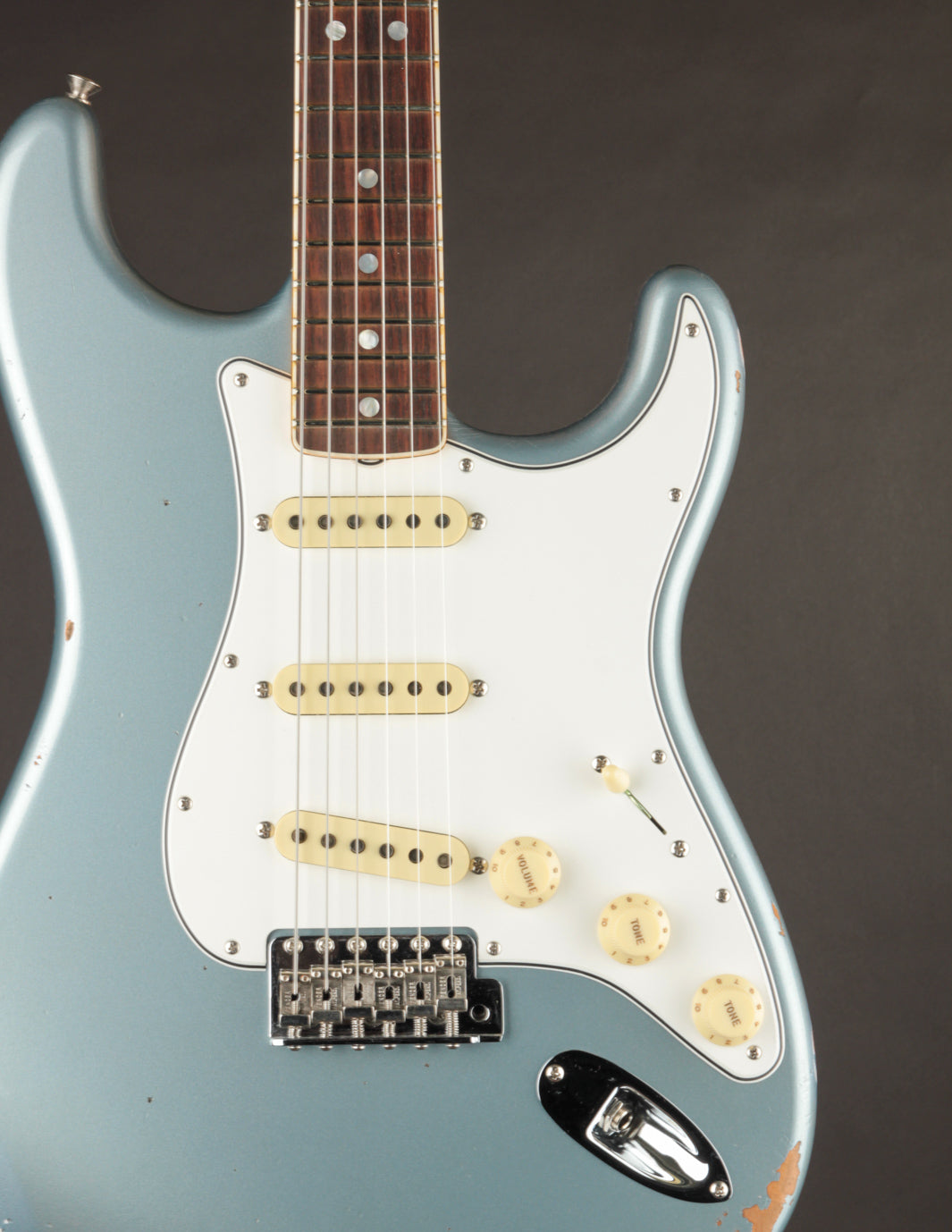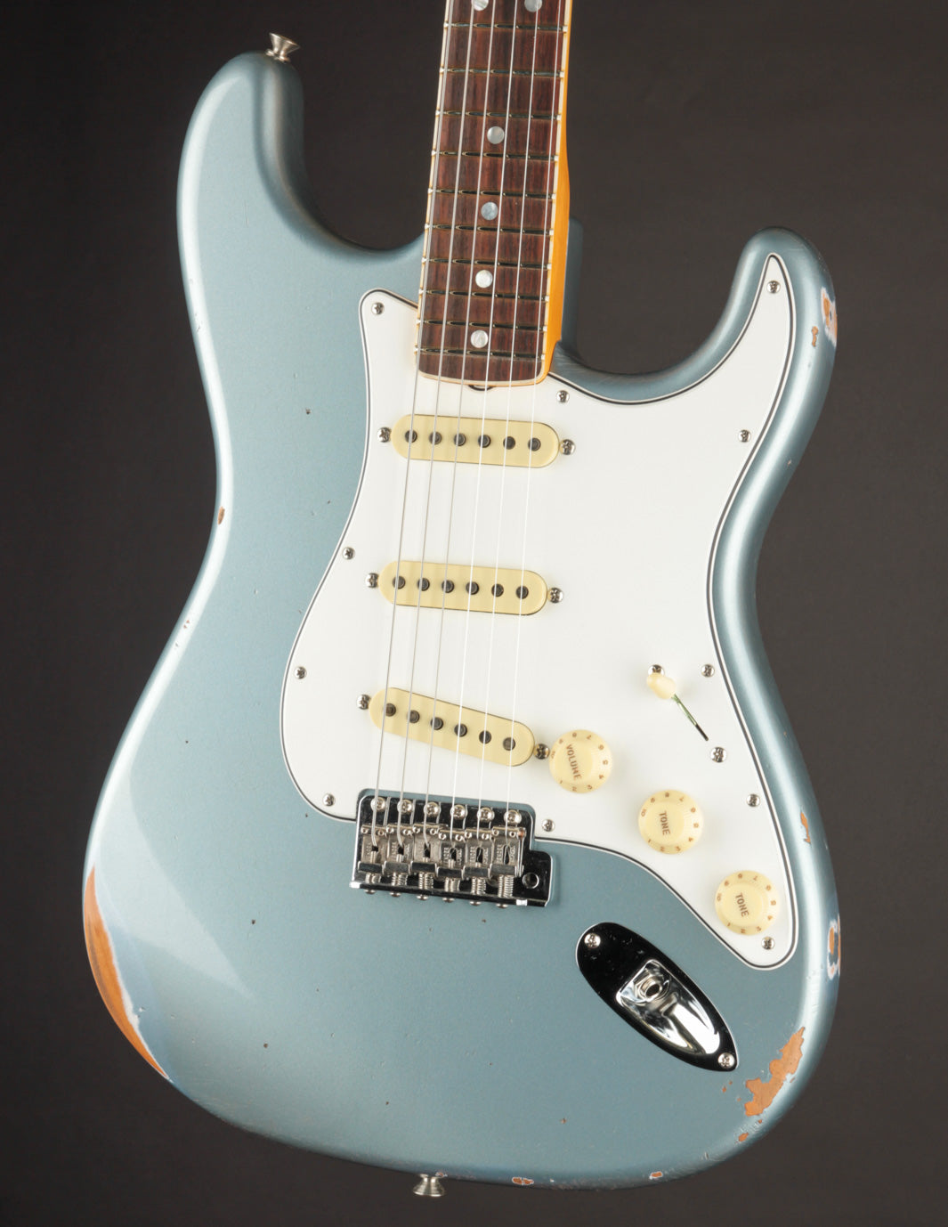 Finished in a Relic lacquer (Aged Blue Ice Metallic) with Closet Classic hardware, this '67 Stratocaster looks like a perfectly worn, workhorse that’s seen years and years of gigs, but was handled with care. We're loving that the FCS is pushing into a more refined version of wear on the back of the necks (think: Danocaster). It really ups the believability factor as well as just feeling great / immediately comfy in-hand.