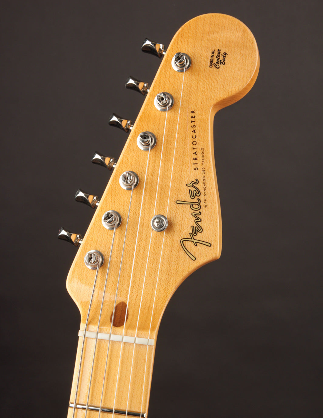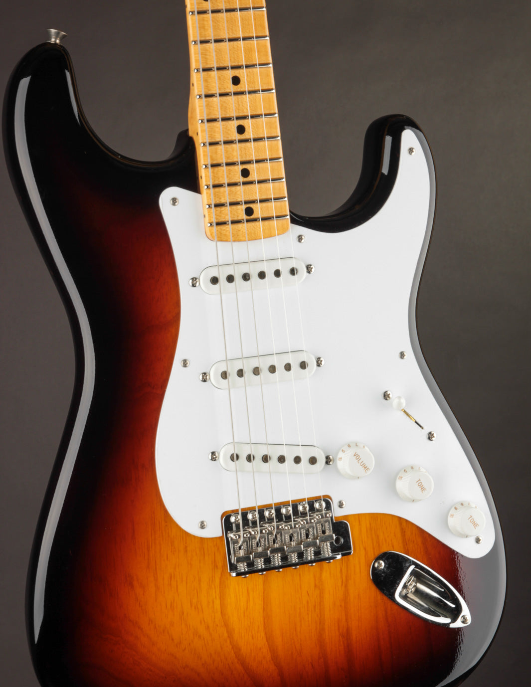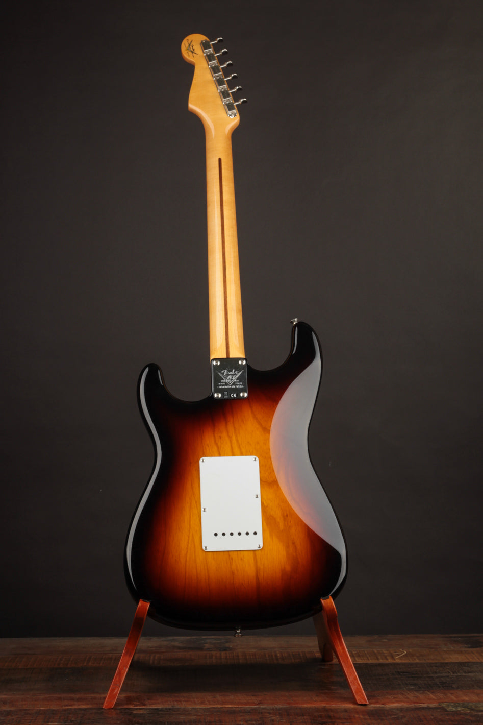 This guitar nails every aspect that made the original a game-changer. The 70th Anniversary neck profile, a soft V-to-C carve, feels substantial yet incredibly comfortable, inviting effortless playability. Authentic period details like skirted knobs, a 'football' 5-way switch tip, and a beautifully grained offset-seam two-piece ash body add to its vintage vibe. Topping it all off are the hand-wound '54 pickups, which deliver the twangy, open, and almost Tele-like tone that made those early Strats so distinctive.