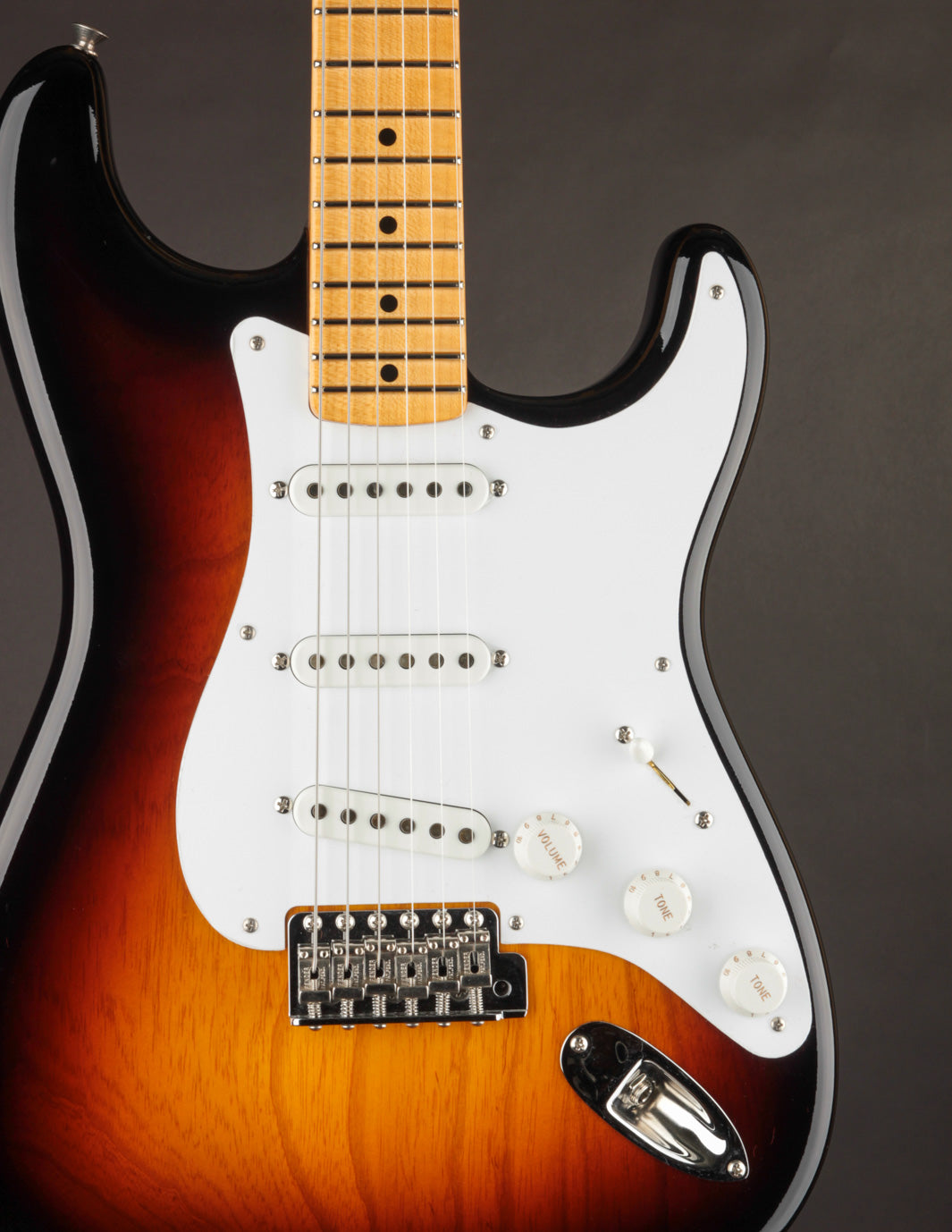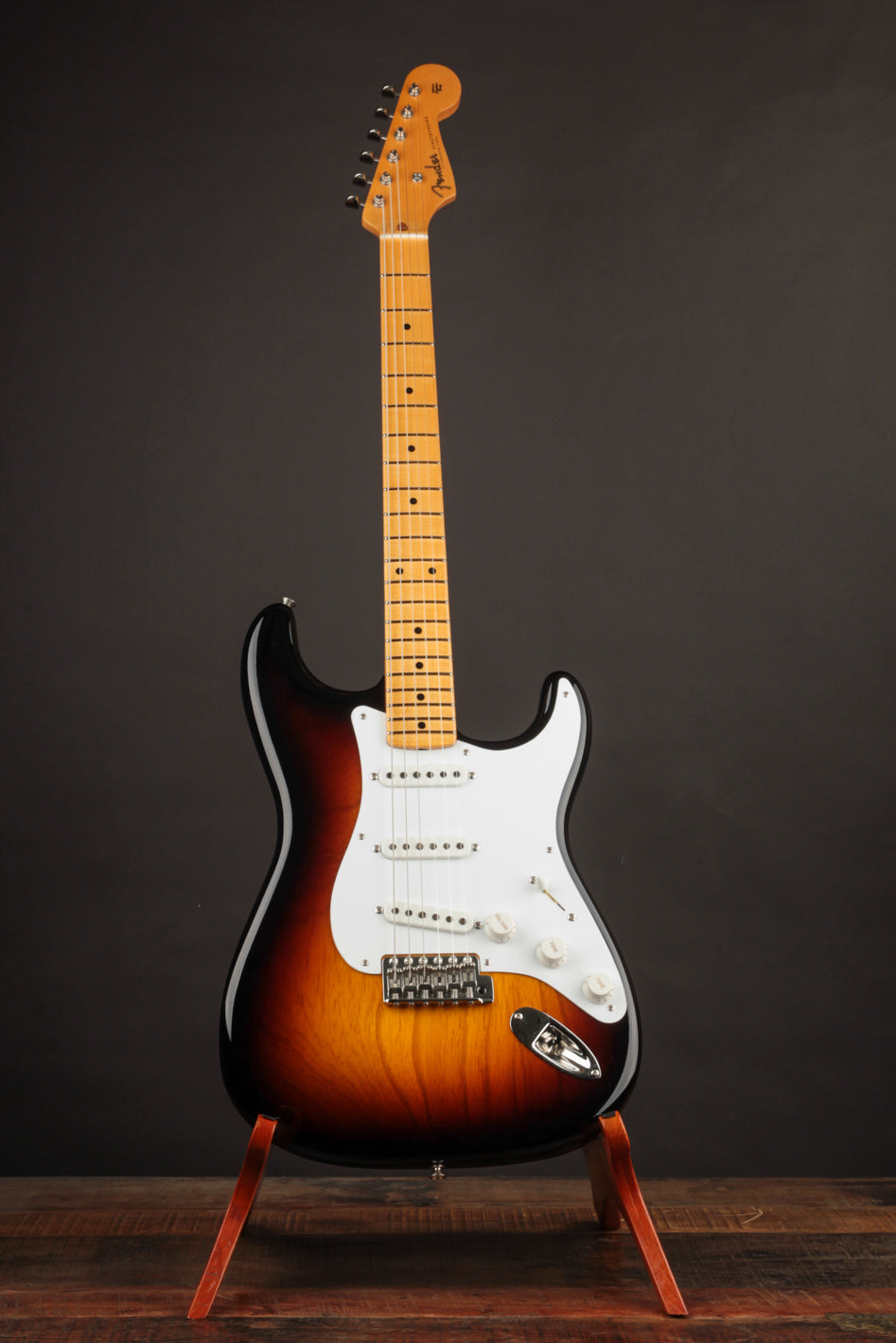 With its sleek, contoured double-cutaway body, innovative synchronized tremolo, and trio of single-coil pickups, the Strat would go on to become a legend, shaping the sound of countless artists over the past seven decades.