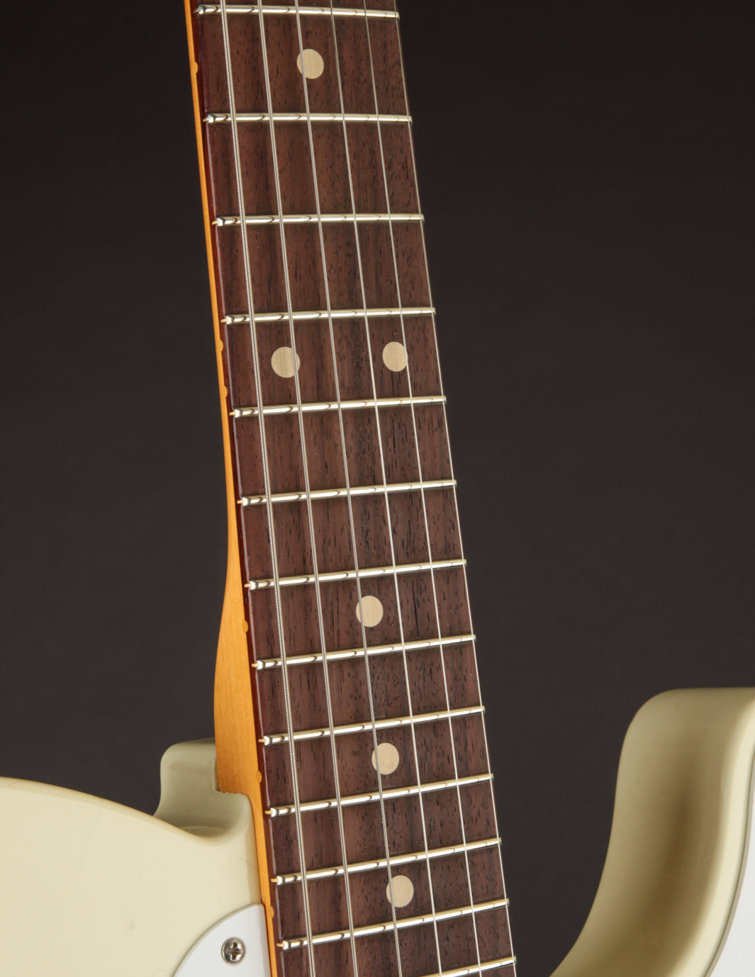 The Jimmy Page Mirror Telecaster features an ash body, lacquer finish and a pair of Jimmy Page Custom '59 Tele single-coil pickups that deliver the incendiary, full-bodied tone that inspired all the unforgettable licks on Led Zeppelin's first album. The custom "Oval C"-shaped maple neck has a 7.25"-radius slab rosewood fingerboard with 21 vintage-style frets, giving it a smooth playing feel. The "top-loader" bridge allows for through-body or top-load stringing, which produces a rounder, warmer tone and less tension so you can bend the strings with ease. Other features include a bone nut vintage-style round string tree and Pure Vintage Single Line "Fender Deluxe" tuning machines for authentic style and performance.
