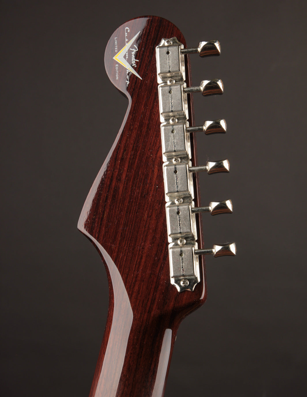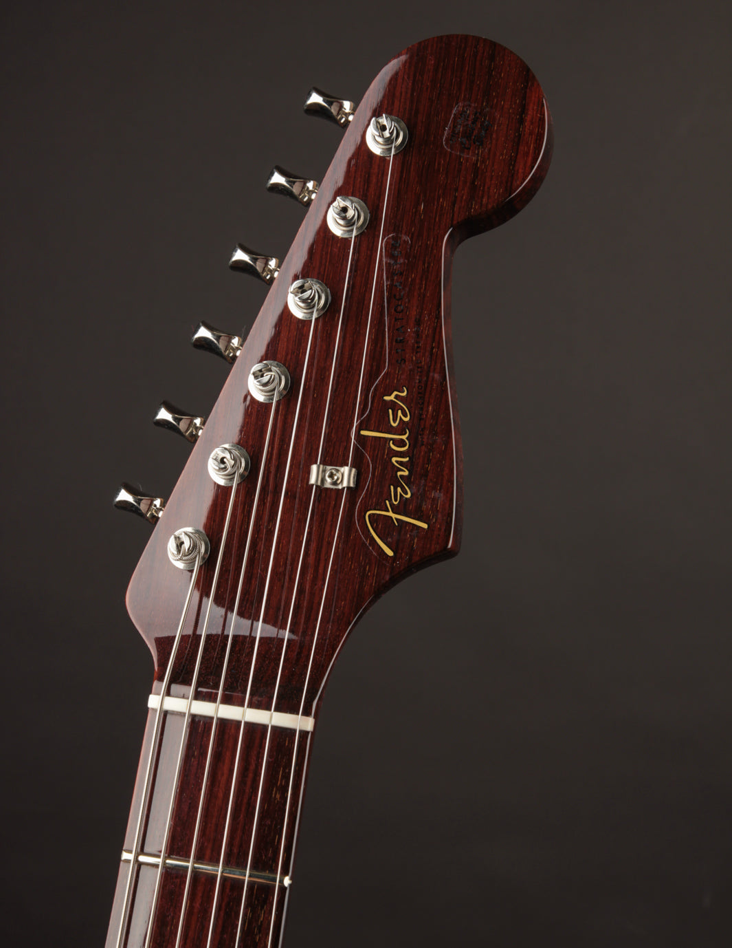And that first strum? Wow. This guitar is lively, resonant, and surprisingly loud when played acoustically. The trio of Custom Shop Fat 50s pickups deliver great twang and bite a la a 50s Strat, but as the name implies, with a fatter low-midrange to beef up the overall tone in each position. True to the feel of original '50s Strats, it has that slightly taut, responsive quality reminiscent of a great Tele in some respects..