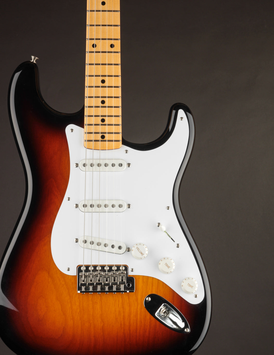Authentic period touches like skirted knobs, “football” 5-way tip, and a beautifully grained, offset-seam two-piece ash body complete the vintage look. Hand-wound ’54 pickups deliver the twangy, open, almost Tele-like tone that made the originals so distinctive.