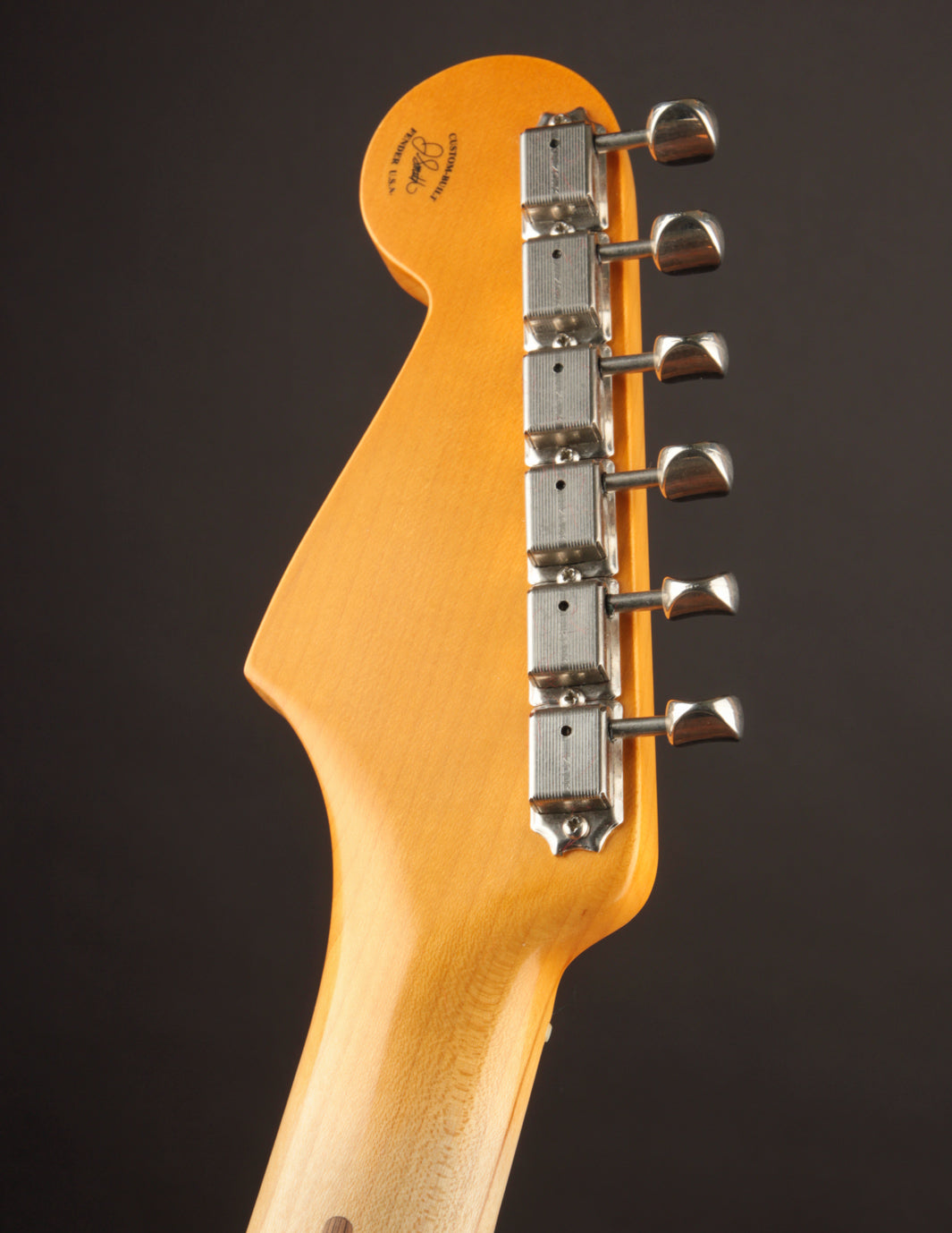 This Jason Smith Masterbuilt ’57 Stratocaster is a rare bird, one of just 16 guitars produced, and it absolutely rips. At lbs oz, it’s light, lively, and incredibly responsive. The ultra-comfy ’68 C neck carve, 7.25" radius, and 6105 frets deliver a vintage-style feel with an effortless playability that invites you to dig in. The 2-piece ash body is paired with a set of pearl-topped Lollar Imperial humbuckers, giving this Strat a tone profile that’s fatter, punchier, and more muscular than what you'd expect, without losing the snap and clarity we all love in a great Strat.