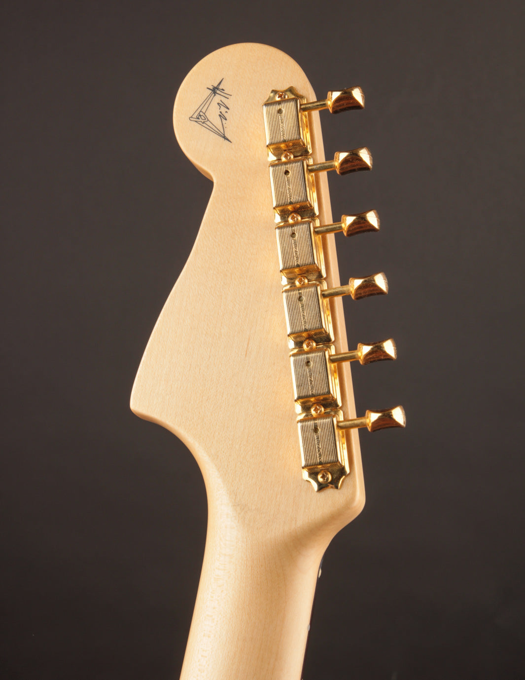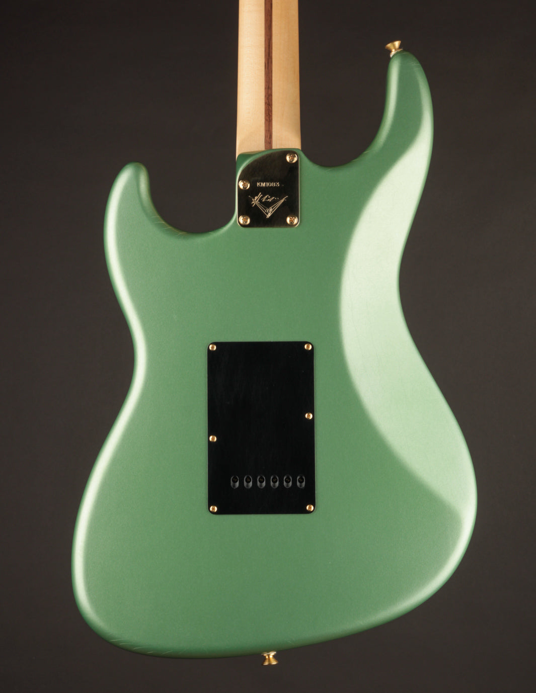 But the real magic reveals itself when you sit down to play it. Strats are known for comfort and ergonomics - that’s baked into the design. And somehow, Kyle has taken that to the next level. The guitar balances effortlessly and feels almost short-scale in how the body sets the neck: slightly elevated, slightly shifted right. It puts your fretting hand right where it wants to be. Cowboy chords are closer. Upper fret access is effortless. The deep scoop in the lower horn clears the way. It just feels right.