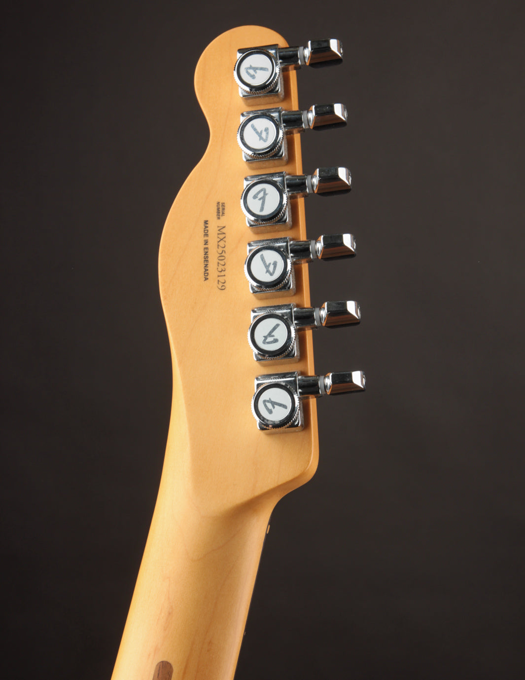 Tonally, the setup is equally dialed in. A Player II Modified humbucker in the neck adds power and warmth, but pull up on the push/pull tone control and you’ve got that unmistakable Tele neck single-coil snap on tap. The bridge pickup is Fender’s Noiseless design, so you still get all the bite and twang you’d expect, without the hum. A 6-saddle bridge, locking tuners, TUSQ nut, and modern string tree round out a rock-solid build that holds tuning even through heavy bends or aggressive lead playing.