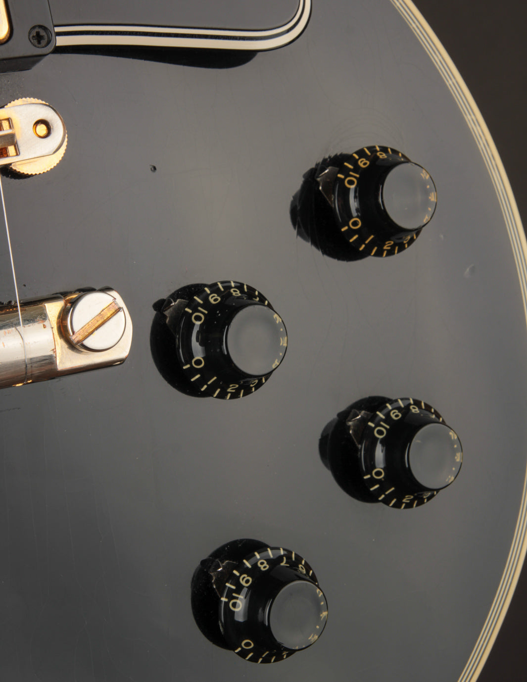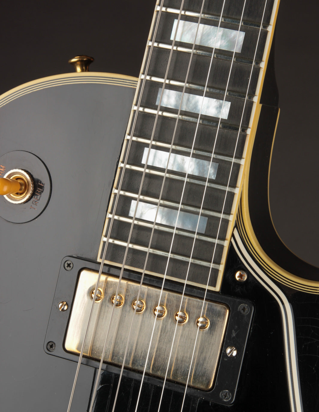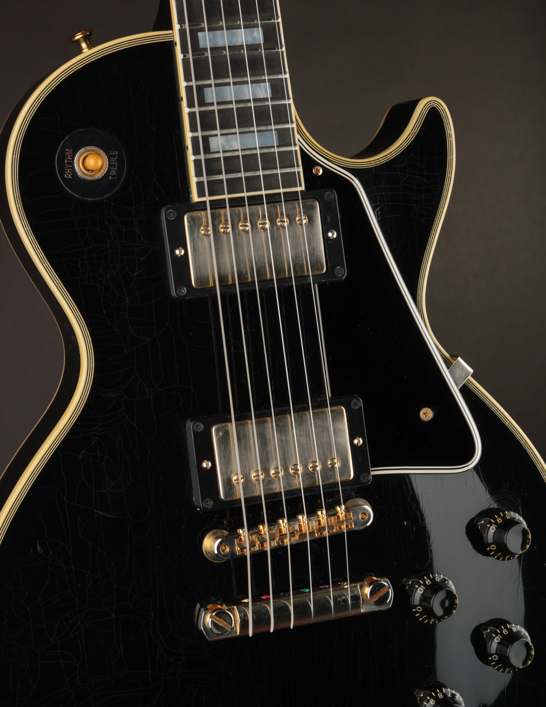 The Wildwood Spec 1957 Les Paul Custom features a solid mahogany body for extra tonal heft and exceptional resonance. The ebony fingerboard is also attached with hot hide glue for improved energy transfer, so these guitars are quite loud and resonant when unplugged! Our Wildwood Spec Custom 'Buckers only improve this excellent natural tone by delivering sweet, vintage-perfect tone.