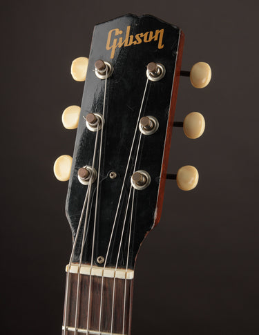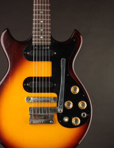 This is a very nice playing and sounding version of the second iteration of the Melody Maker, with Gibson moving from the single-cutaway version in 1961 to this double-cutaway version you see before you. Nearly identical in construction otherwise, these mid 60s examples really only have one construction change of note - the bridge! Gibson moved from the slanted 50s style wraparound to the "lightning bar" compensated bridge, and often outfitted many of these with the option vibrola system.