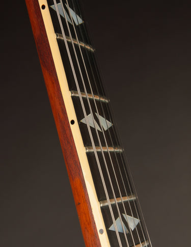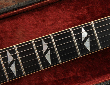 What makes this particular example one of the rarest across the the entire production run is its nut width. It features the full width 1 11/16" nut that Gibson moved away from in the early part of 1965, likely making this one of just a handful of Trini Lopez Deluxe builds to ship with a wide nut. The neck profile sits somewhere between slim and medium, with a nice roundness that still allows for quick playing up and down the fretboard.