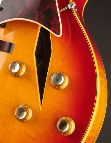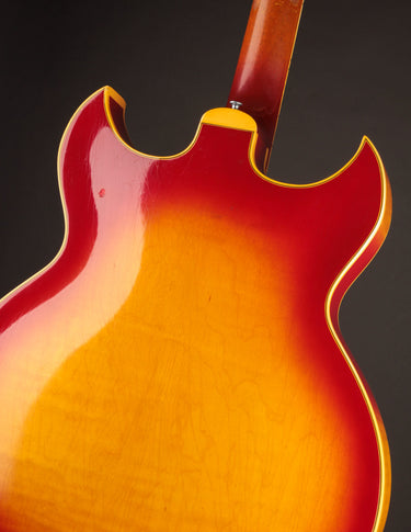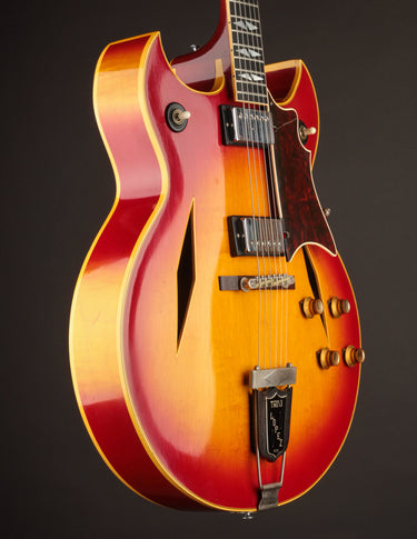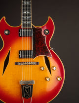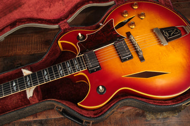 This 1965 Trini Lopez Deluxe (also known as Custom) is one of just 45 shipped in 1965, and only one of 302 built during the entire 7-year production run. It's one of the rarest production electrics to come out of Kalamazoo in the 1960s. The twin florentine cutaway body is shared with another artist model - the Barney Kessel. With its ES-175 foundation, it serves as a wonderful jazz instrument and takes a lot of its tonal queues from that model.