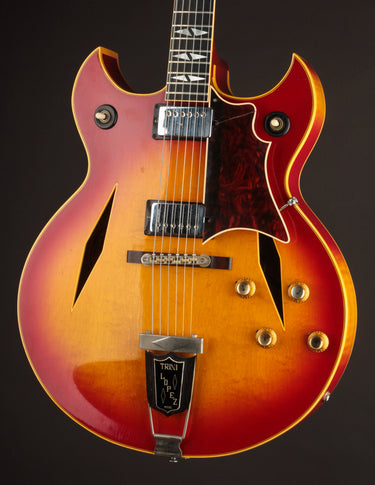 Few artists can celebrate the fact that they had two of their own guitar models released simultaneously throughout history, and Trini Lopez sits among the top of that list. Gibson introduced two distinct Trini Lopez models in 1964 - one 'Standard' in an ES-335 format and one 'Deluxe' in a flashier ES-175 format - both certainly different both stylistically and tonally, but achieving a similar "wow factor" in presentation.