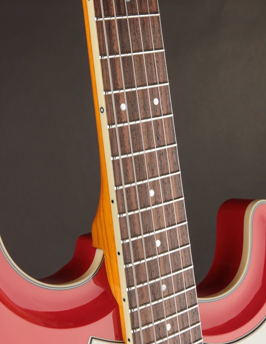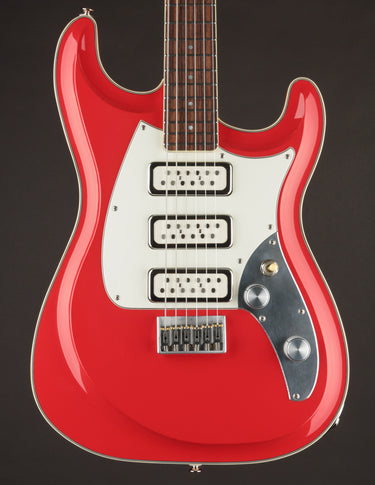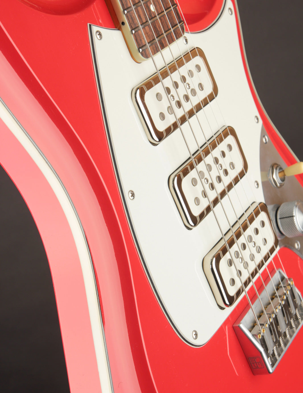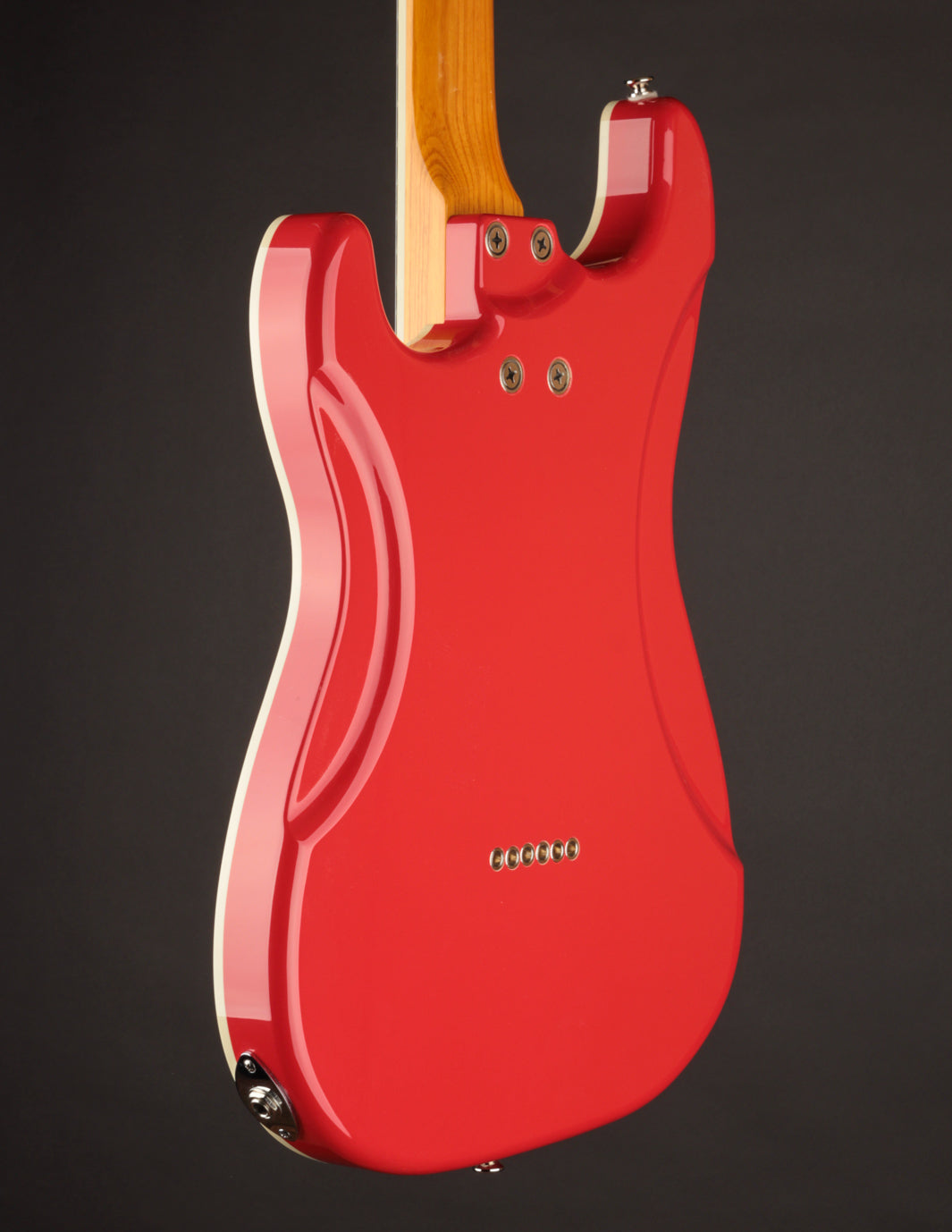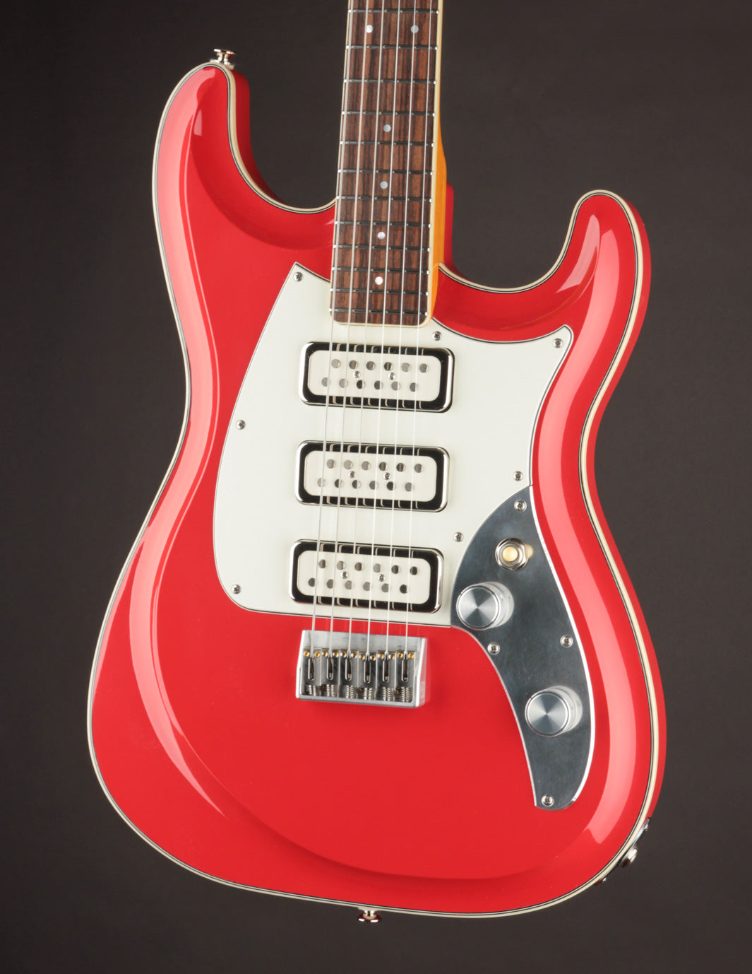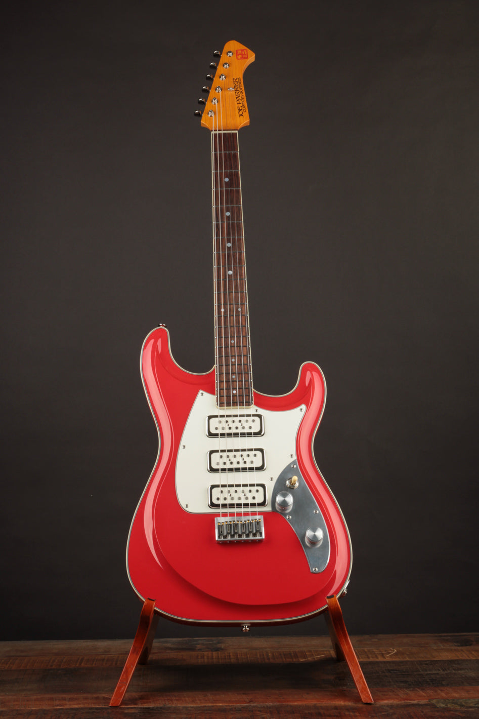 This Fiesta Red Skylighter is a perfect example of Joe’s genius, blending the best elements of Strats, and subtly of Gibsons, into one versatile instrument. Outfitted with Gemini Twin Mag pickups, a hardtail bridge, Gotoh tuners, and the innovative Freeway 6-Position switch (we’ll get to that in a second), the Skylighter combines the comfort and ergonomics of a Strat with the punch, sustain, and dynamic range of a Gibson. It’s a guitar built for everything from nimble single-note runs to powerful, punchy chord riffage.