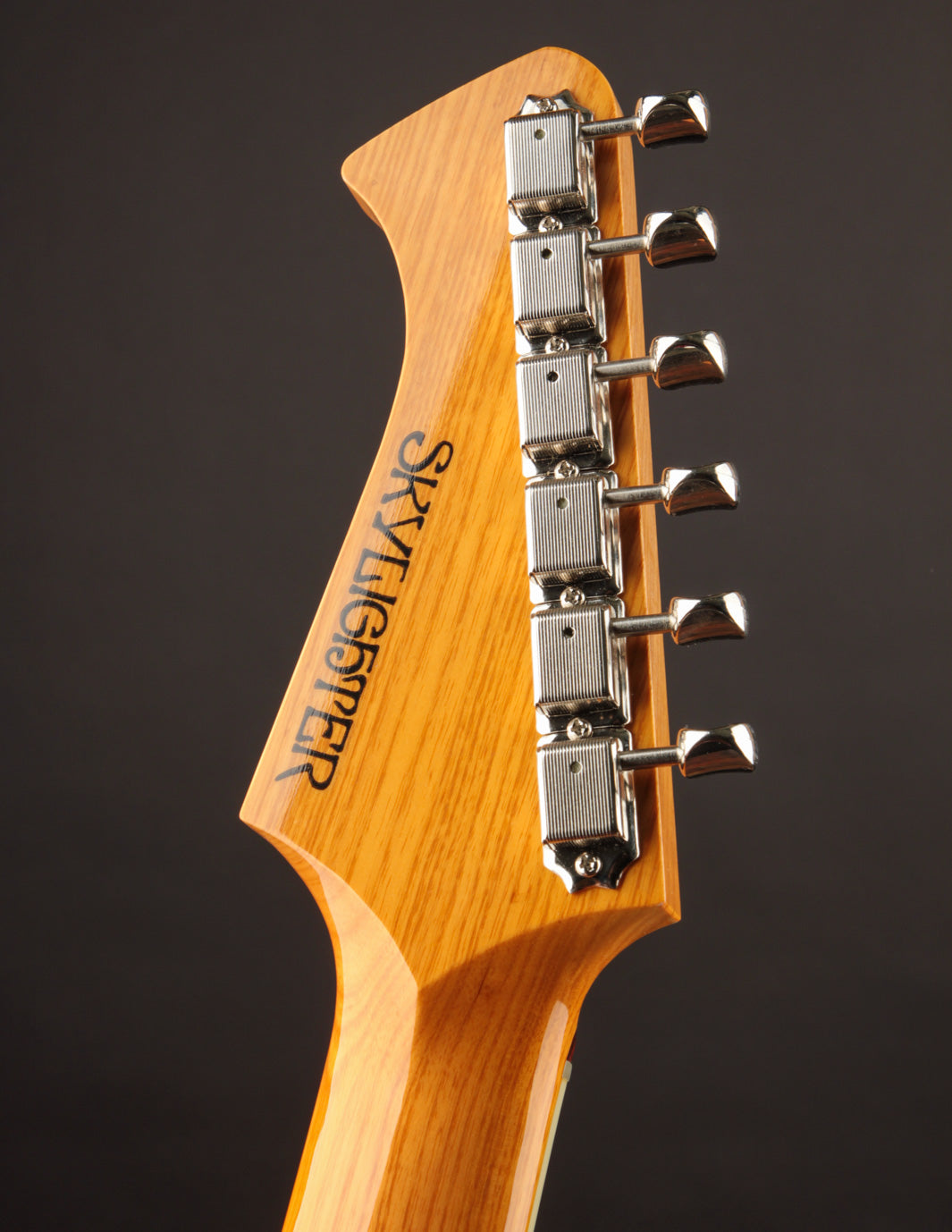The Skylighter’s aesthetics are nothing short of extraordinary. With its deep German carves on both the top and back of the swamp ash body, this guitar balances visual movement, depth, and player comfort.