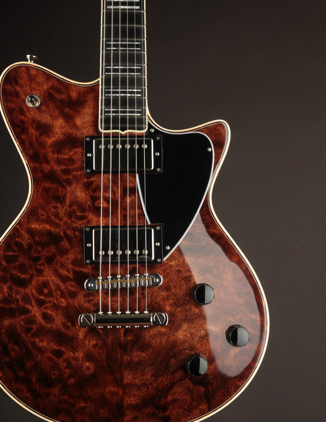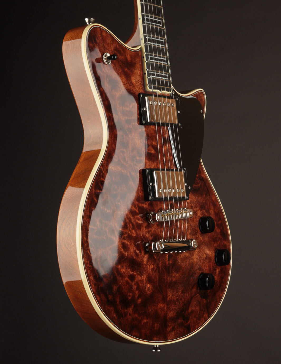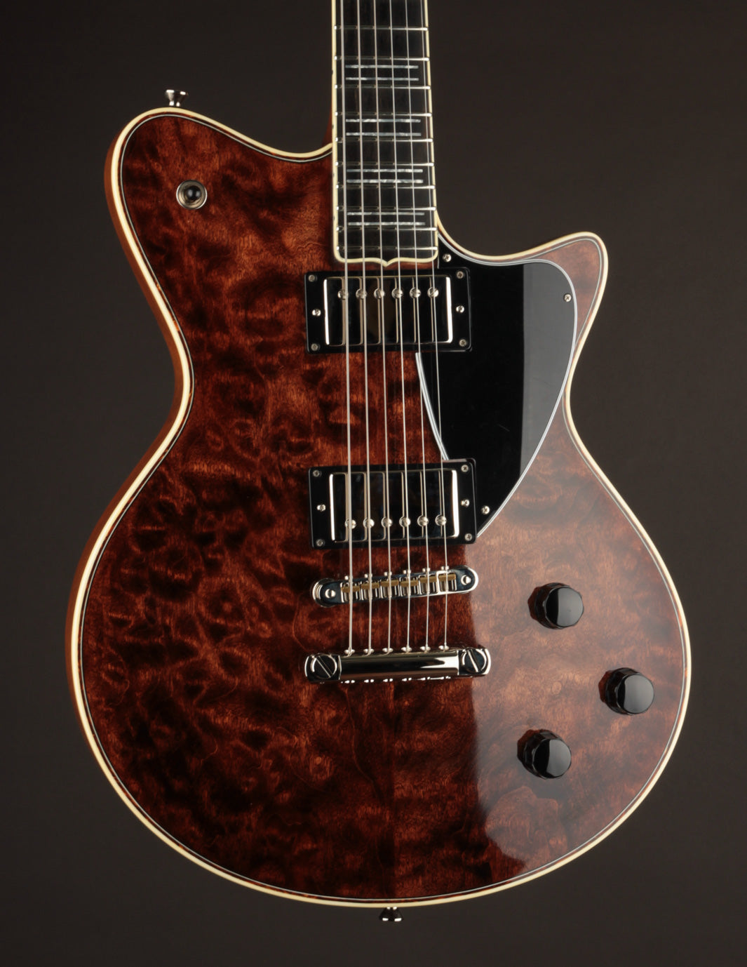 The neck carve? A slightly chunky "medium C" that feels like a sweet spot between a Duo Jet and a Les Paul Special - substantial, but not shouldered or cumbersome. Comfortable. Confident. Just right.