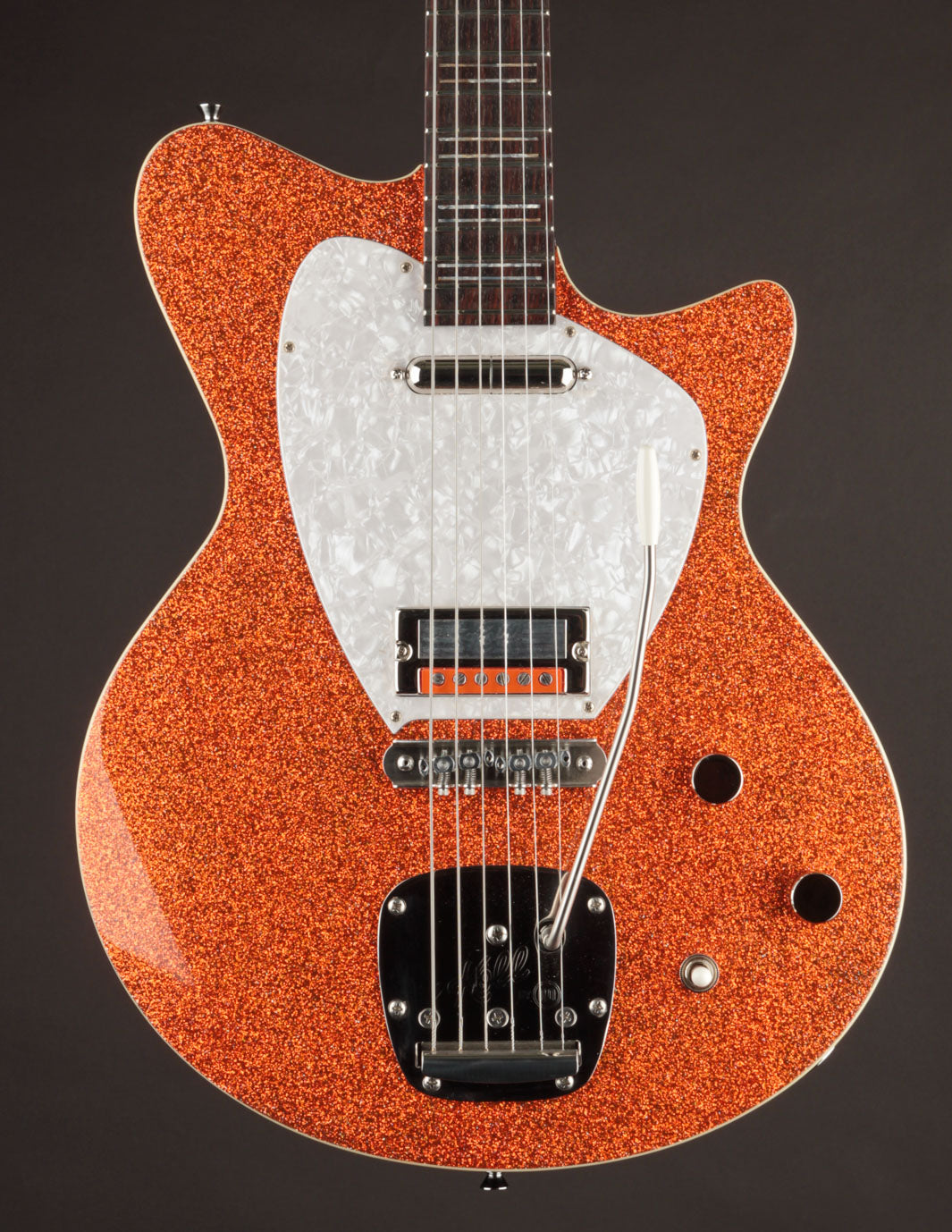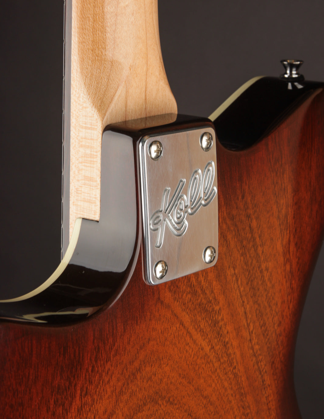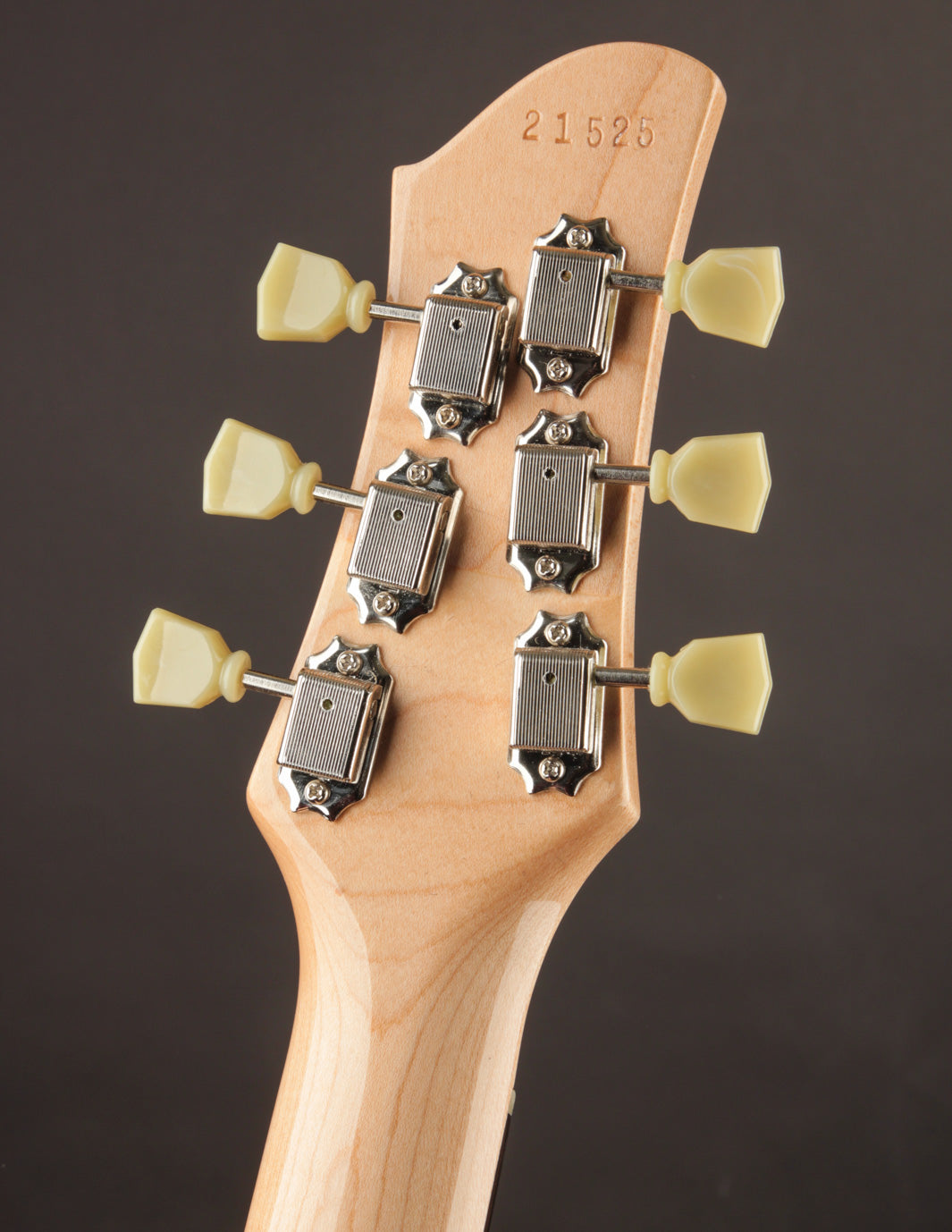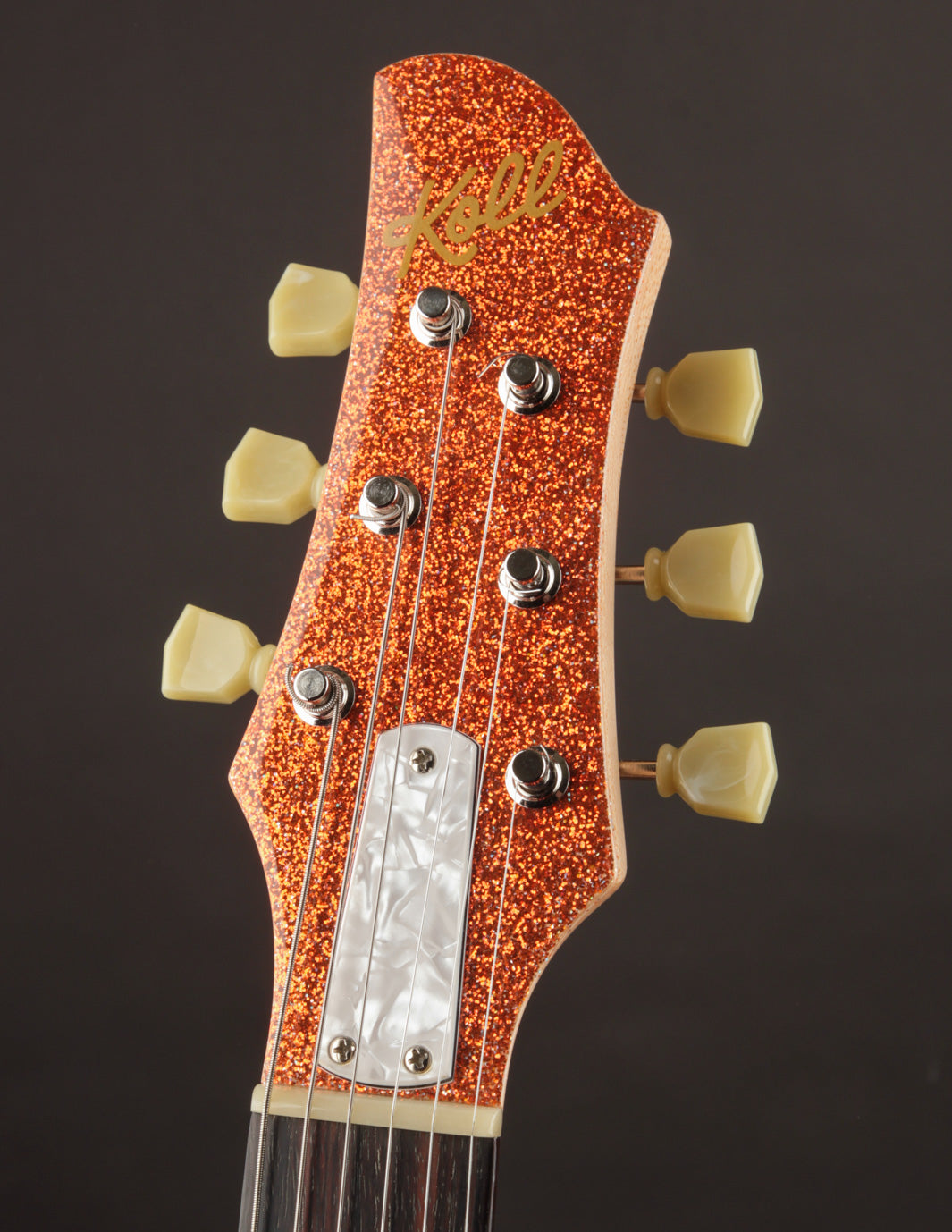 Subtle design choices set this guitar apart: the Pearl “Euro” inlays, Rosewood fingerboard, the straight string pull Tornado headstock (borrowed from another brilliant Koll design), and the overall fit and feel suggest a more modern interpretation of the funky student model builds of the '60s—and a far more refined one at that.