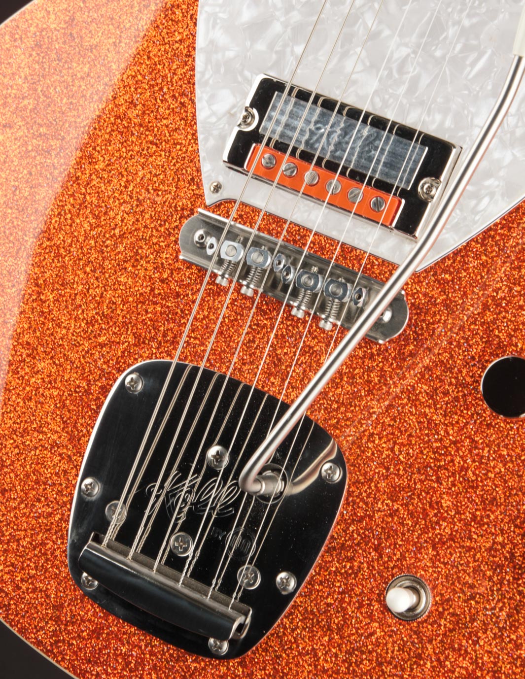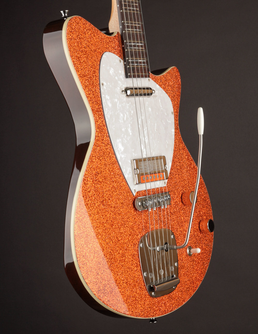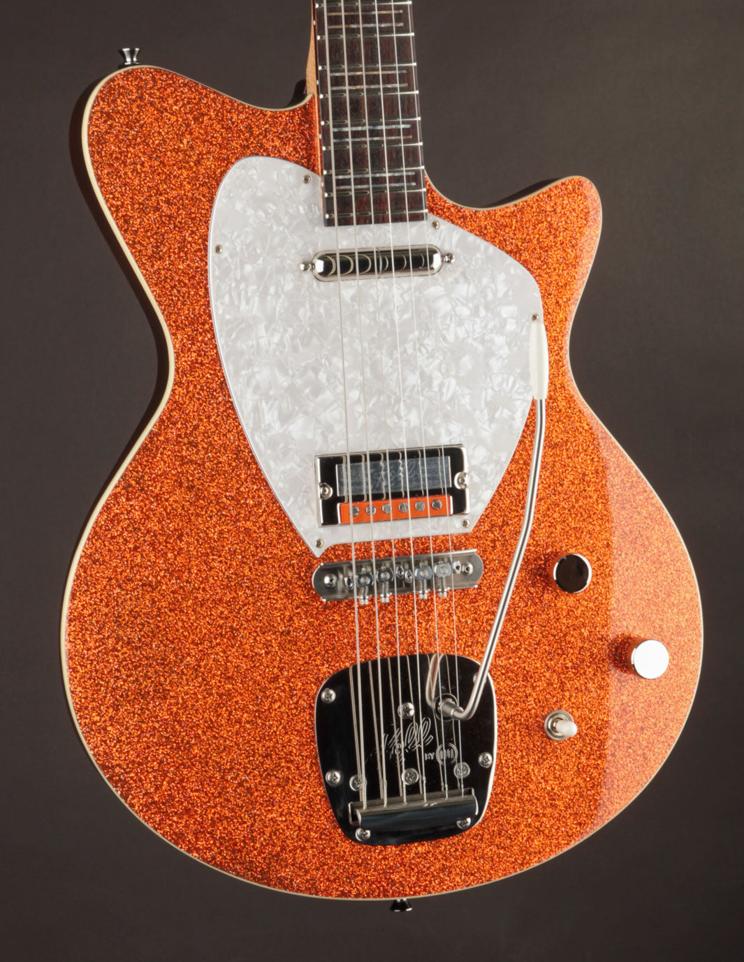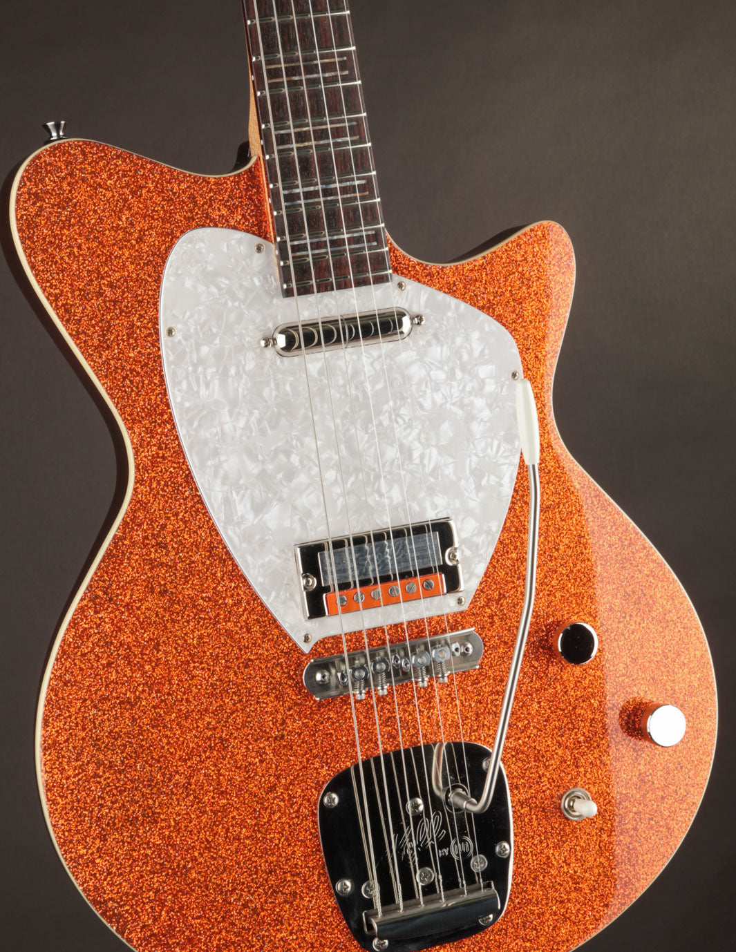 Subtle design choices set this guitar apart: the Pearl “Euro” inlays, Rosewood fingerboard, the straight string pull Tornado headstock (borrowed from another brilliant Koll design), and the overall fit and feel suggest a more modern interpretation of the funky student model builds of the '60s—and a far more refined one at that.