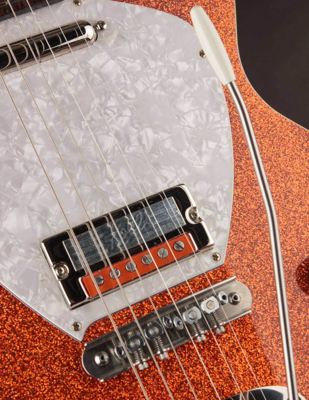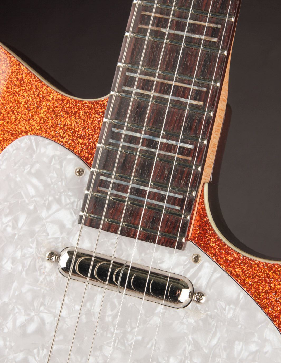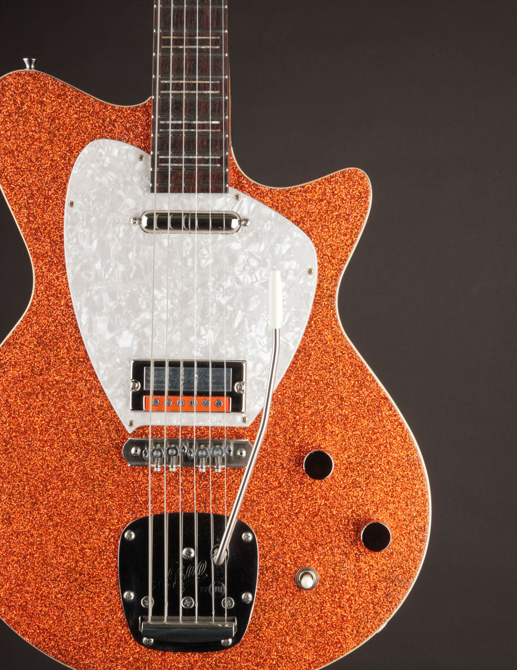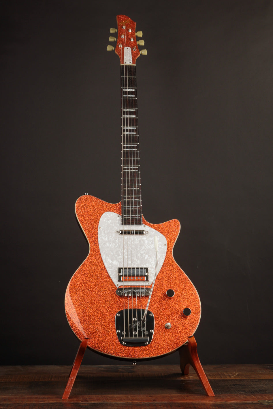 Subtle design choices set this guitar apart: the Pearl “Euro” inlays, Rosewood fingerboard, the straight string pull Tornado headstock (borrowed from another brilliant Koll design), and the overall fit and feel suggest a more modern interpretation of the funky student model builds of the '60s—and a far more refined one at that.