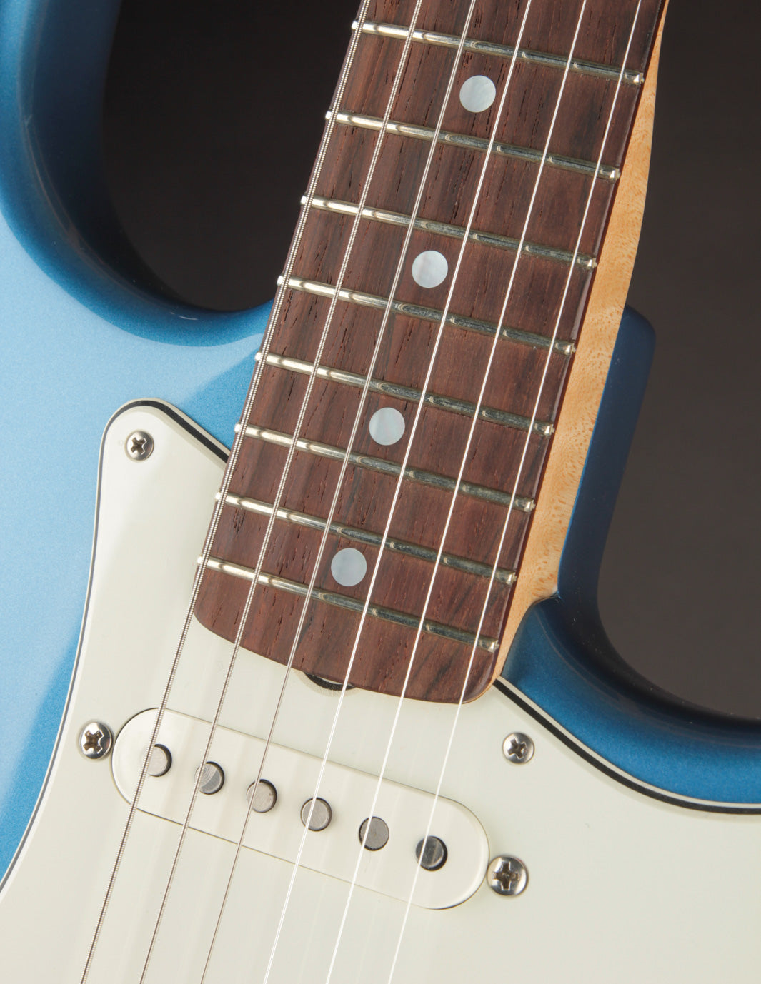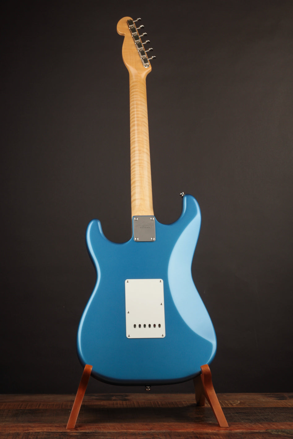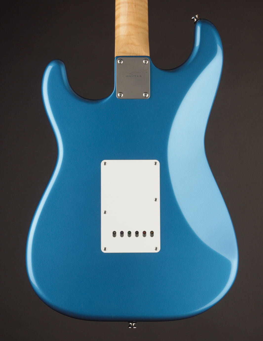 This Jr Reserve S, in a very rare Lake Placid Blue, utilizes cabinet aged woods (25+ years is typical), a one piece Ash body, a Brazilian rosewood fretboard made from stock dating back to 1915, pickups wound specifically for this guitar, a 3-ply guard, and electronics that are carefully matched in order to achieve the best tones possible.