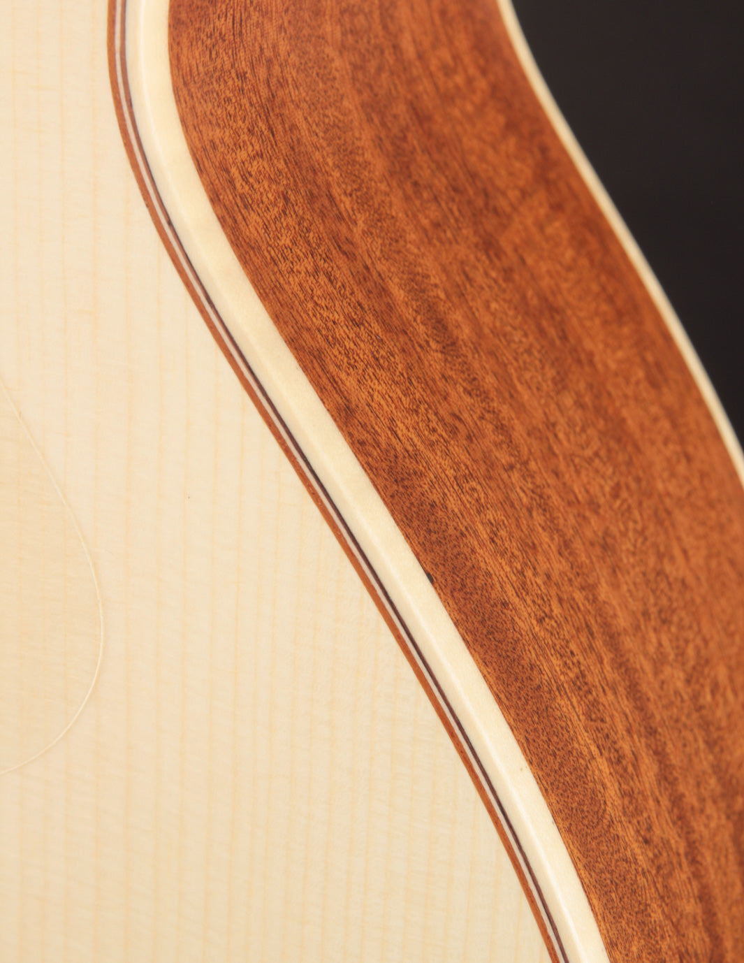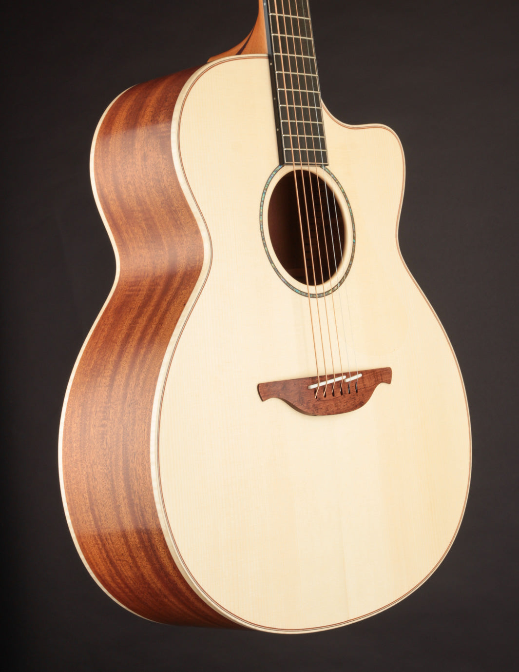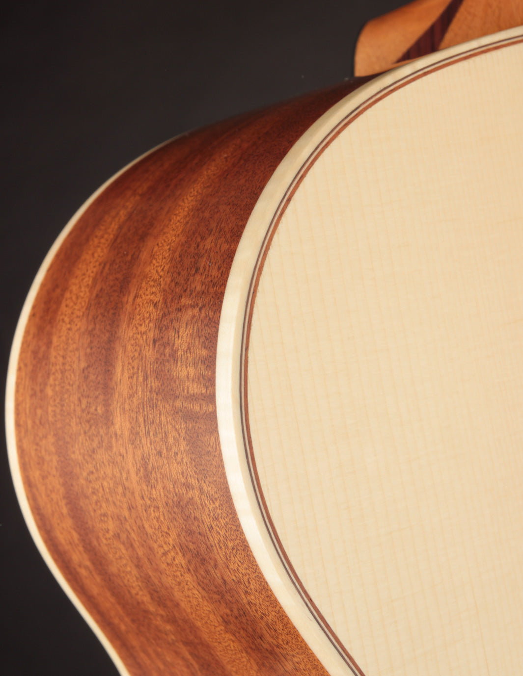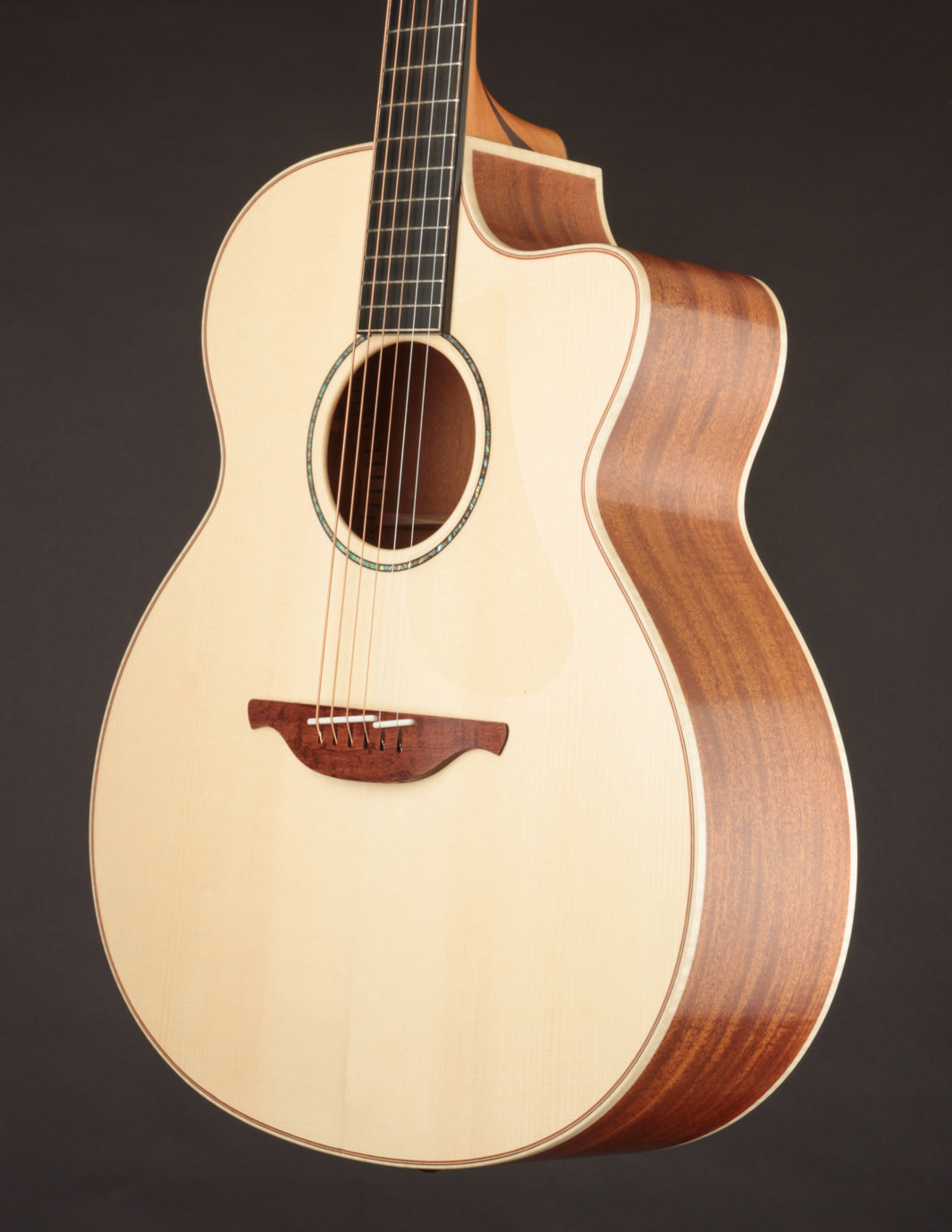 The Lowden 35 Series features upgraded tonewoods and a mid-tier appointment level, emphasizing sound above all else and catering to discerning players interested in subtlety of tone. This O-35CX features TME house favorite pairing Cuban Mahogany and Adirondack Spruce, a combination that yields power, depth, and a woody articulation that seems to suit any style of music excellently. The "O" is Lowden's jumbo body size ~ well suited to strummers looking for maximum horsepower; but the "X" designation signifies Lowden's shallower body option. Translation? If you're after the most booming, present guitar in the Lowden stable, but the idea of a deep bodied jumbo doesn't jive with your playability preferences ~ this is the guitar for you. Priced with Ameritage hardshell case.