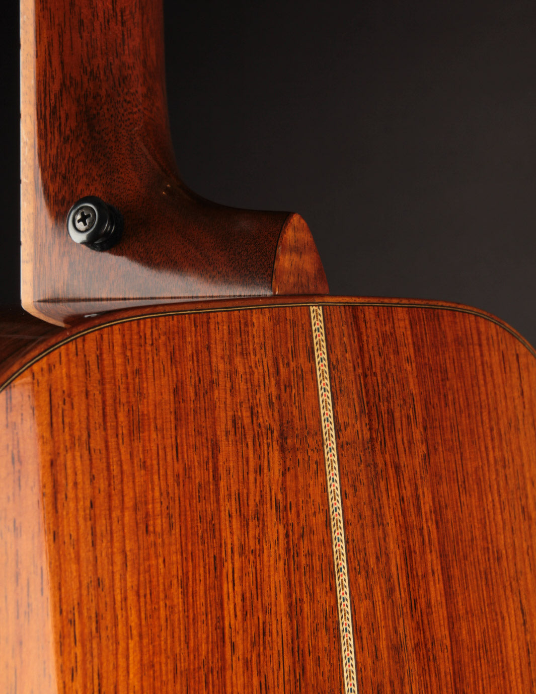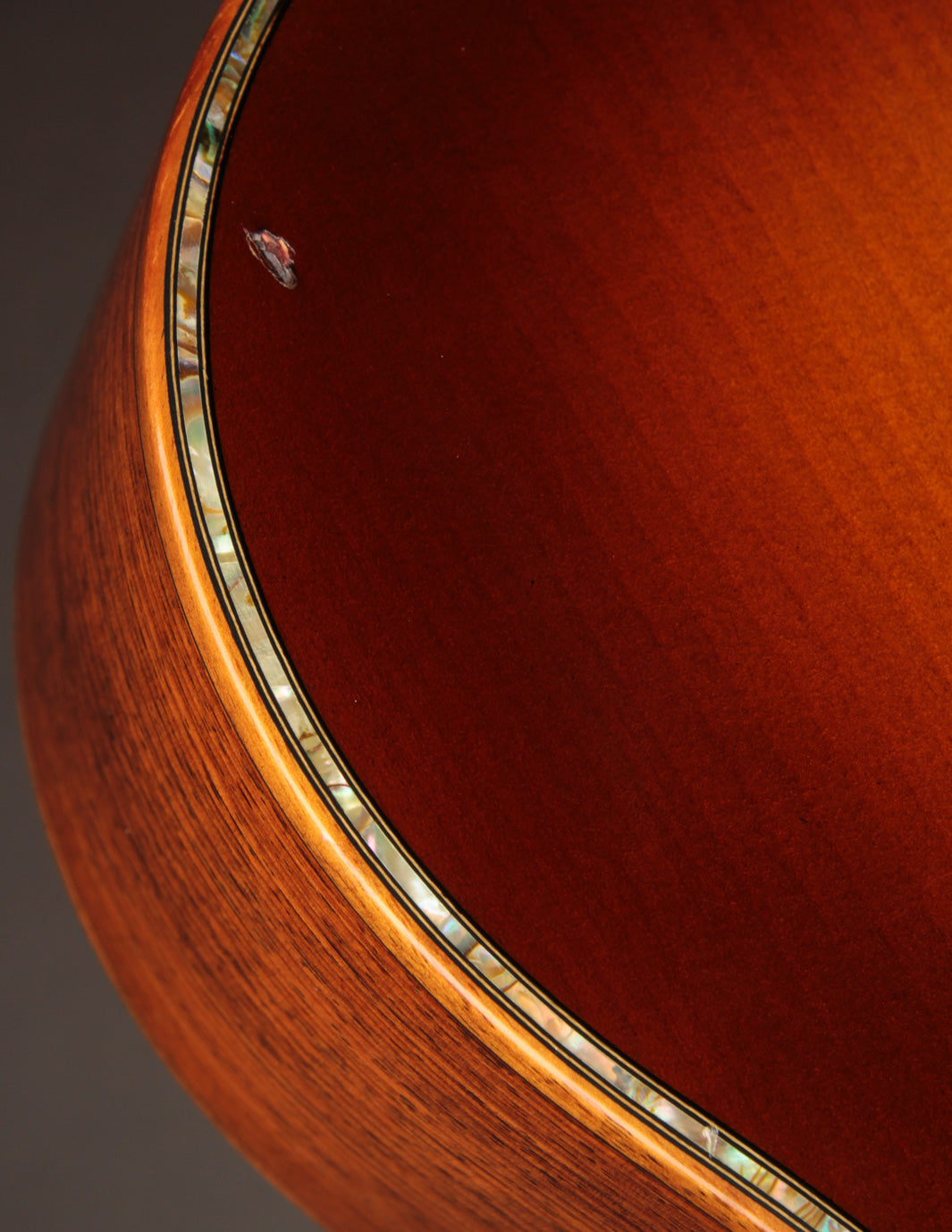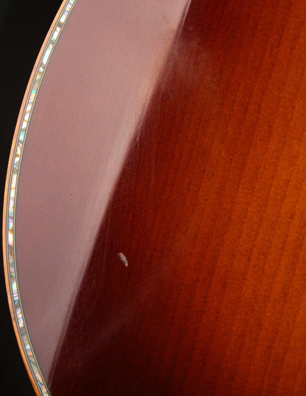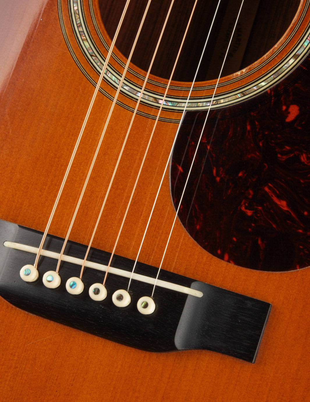 We rate this guitar in good pre-owned condition. It has been played (gigged, even!) very regularly these last seven years. The top shows light pick wear and a couple noticeable dings. The back and neck each show minor signs of handling (only available on close inspection). Our shop has removed a previously installed pickup and given it a fresh setup. Priced with its original 3-ply Martin hard case.