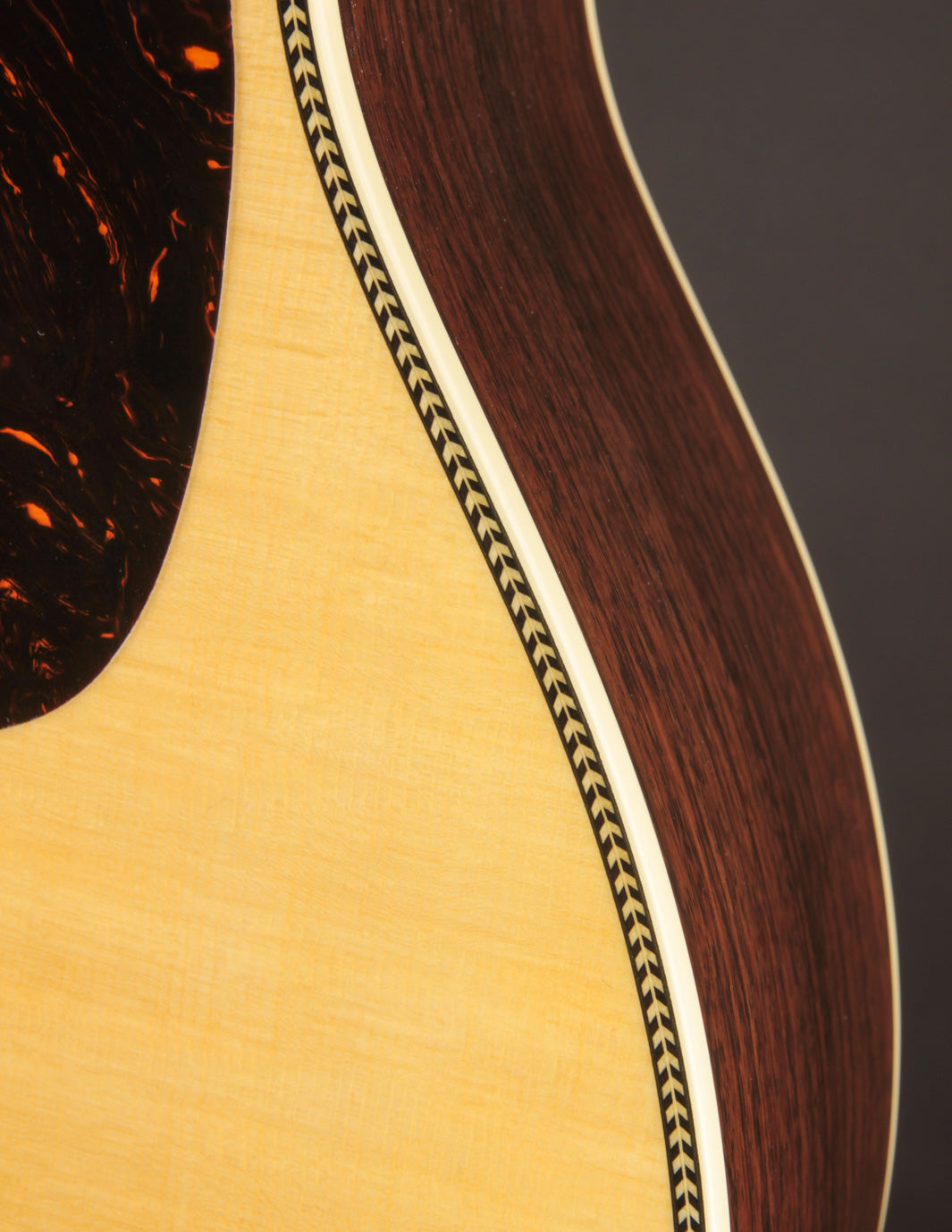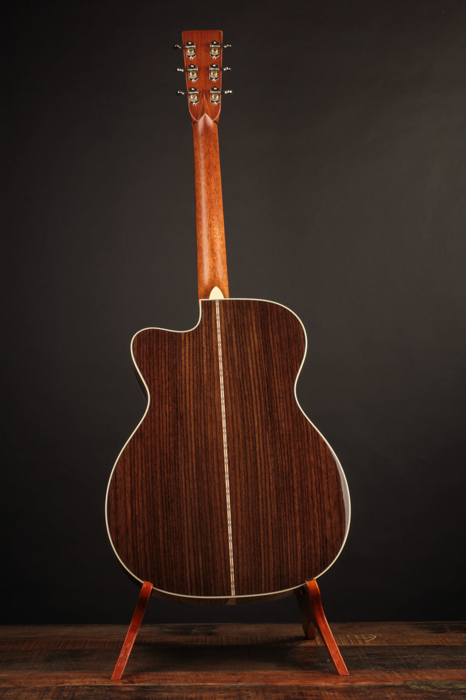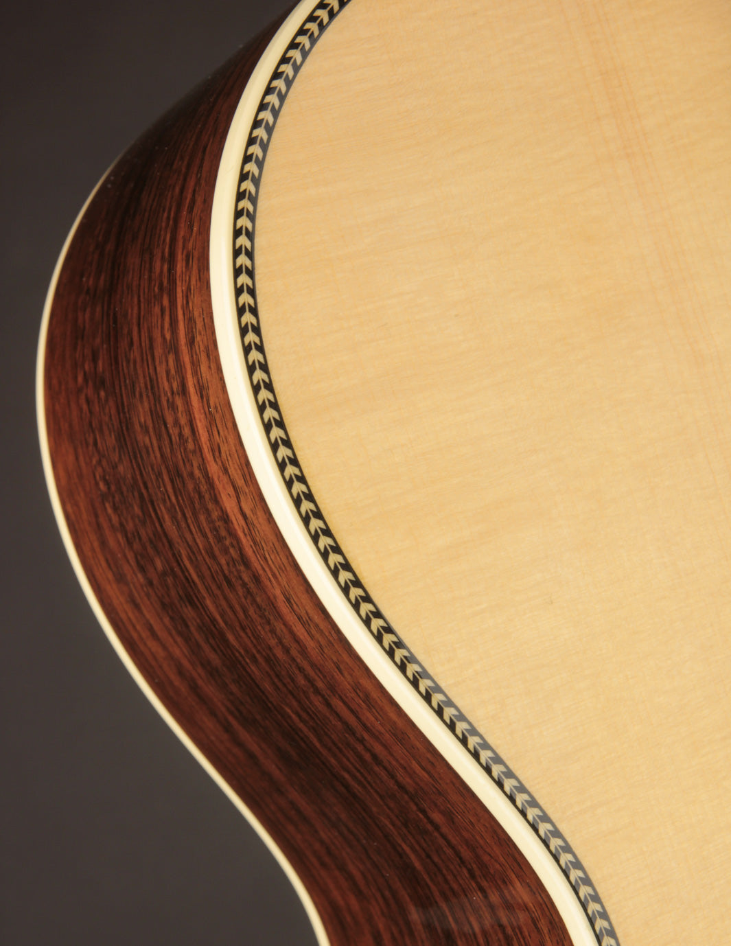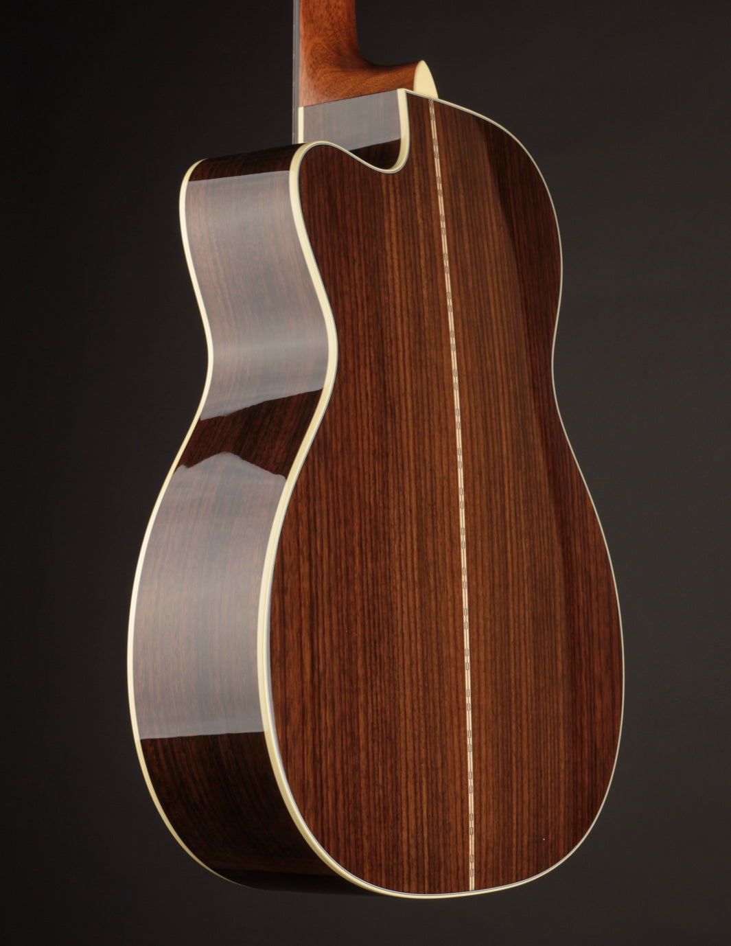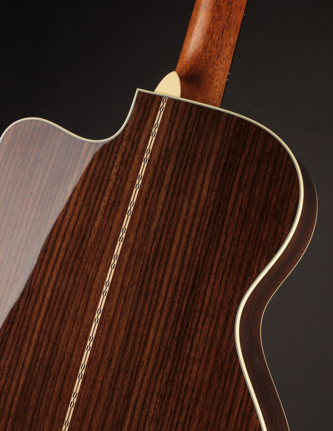 To our ears, this is an OM-28, only better. The European Spruce top brings more stiffness to the table, imparting color of tone, clarity, snap, and a significantly more focused & clear low end. This Custom Shop take on the classic OM-28 offers depth of tone that will rival a boutique guitar ~ with the modern neck profile and cutaway favored by many contemporary fingerstyle players.