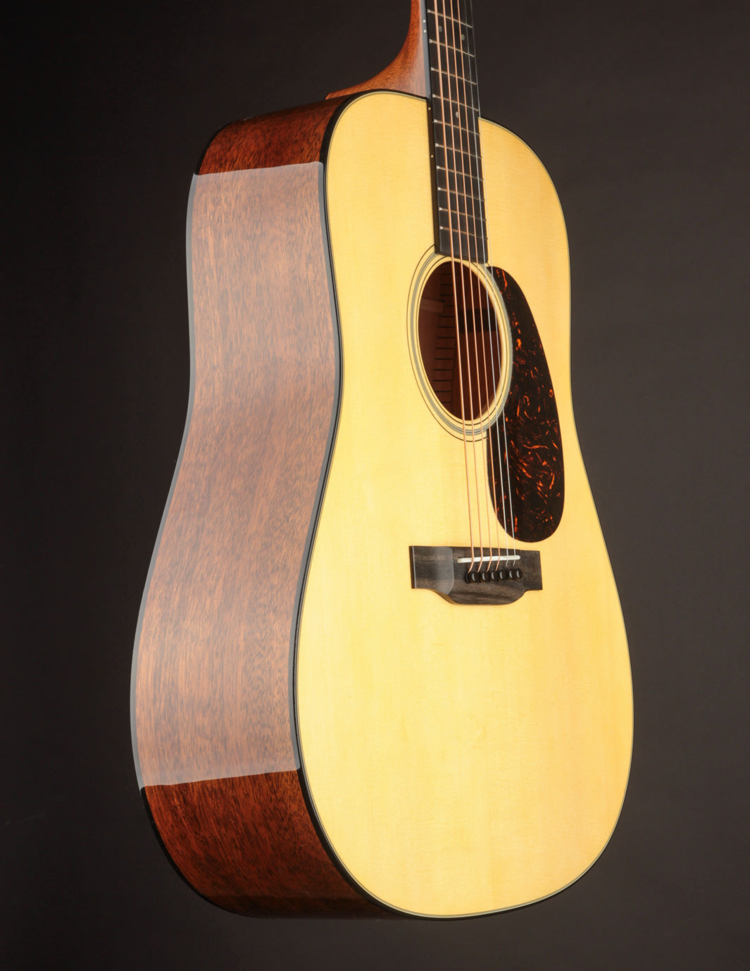 The Martin D-18 is unquestionably one of the most popular guitars in our shop! In an effort to offer an upgrade without stretching to an "Authentic" level price point, we've created a Custom Shop 18-style dreadnought that incorporates all the specs of a Standard Series D-18 but substitutes a European Spruce top for the normal Sitka.
