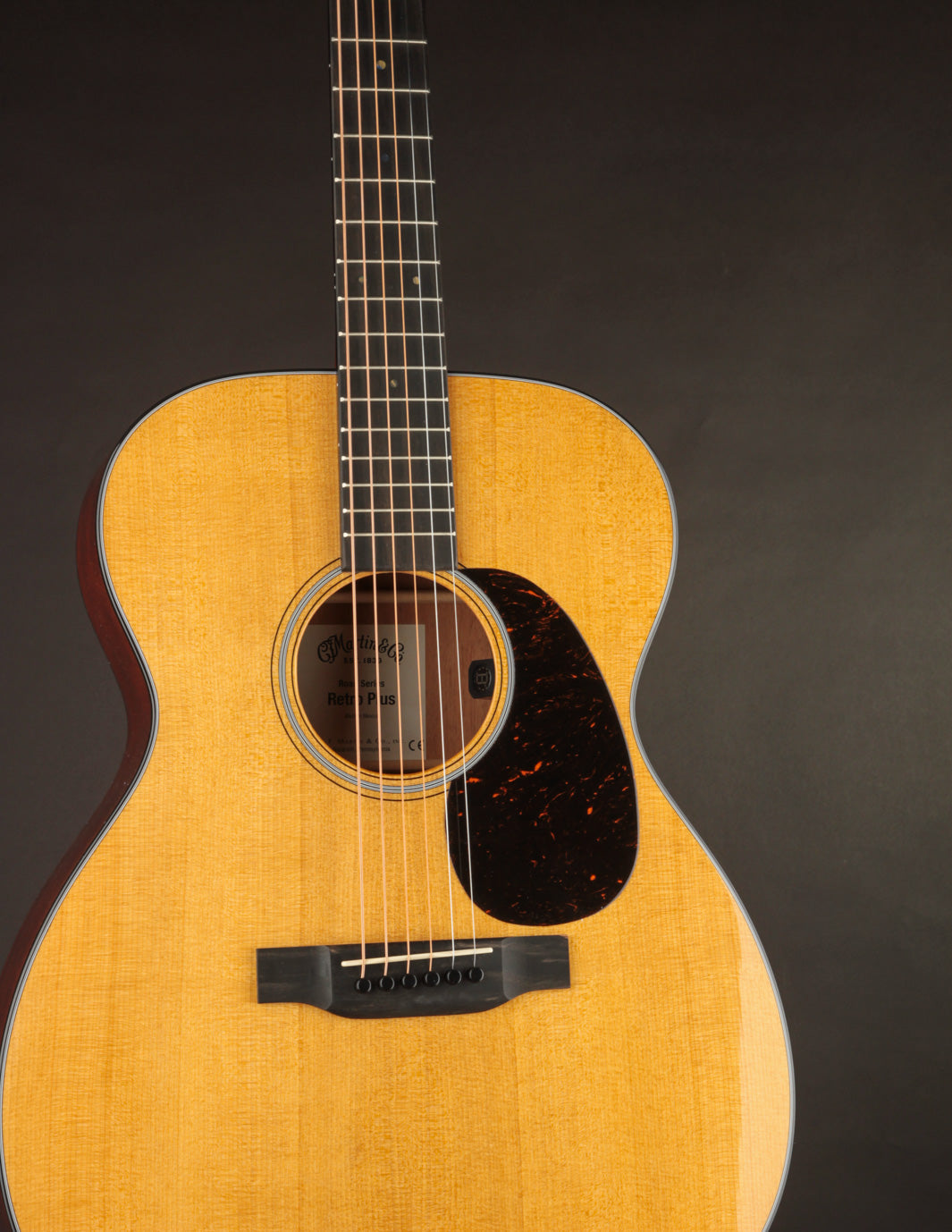 Martin's new "Retro Plus" models offer vintage-style looks and tone at a previously unattainable price point! Featuring a torrefied Spruce top, solid Mahogany back and sides, and a full gloss finish, the Retro Plus guitars bring specs associated with Martin's Authentic line into the Road Series. The 000E Retro Plus is ready to gig, with Martin's E1 electronics on board; and it's priced with a structured gig bag. A great-sounding and exciting development from Martin Guitars!