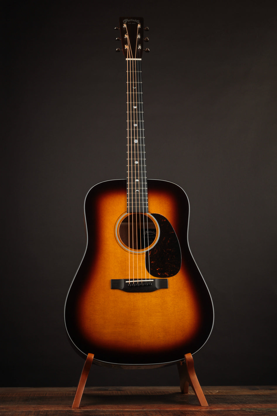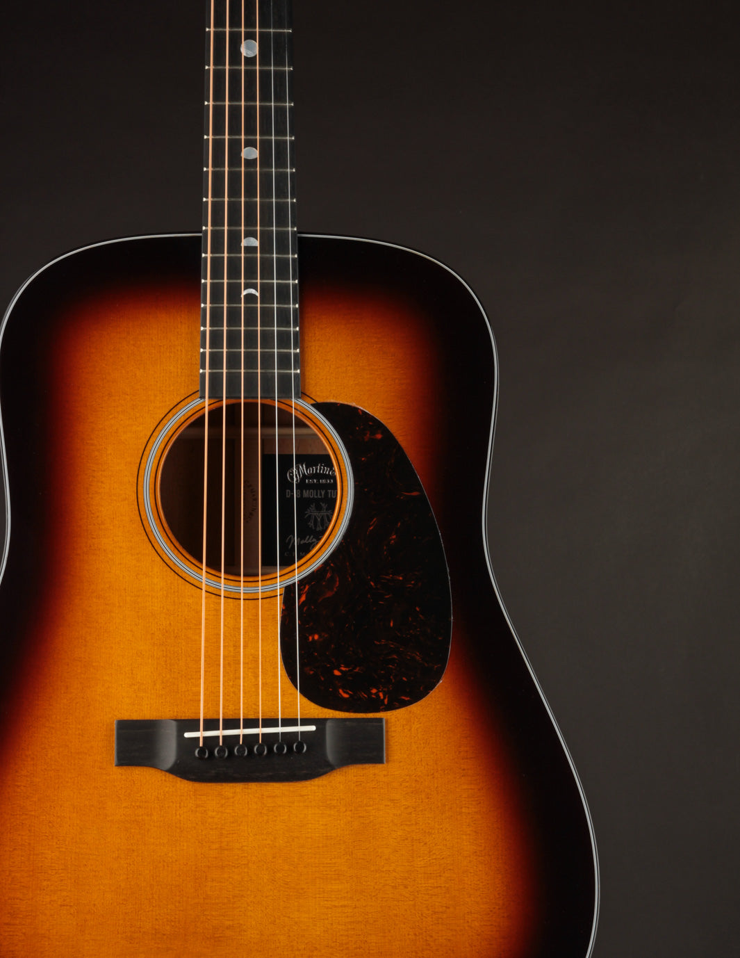 The Martin D-18 Molly Tuttle pays tribute to one of the modern era's most exciting and accomplished flatpickers. Inspired by Molly's own 1943 D-18, this guitar features a Spruce top, Mahogany back & sides, scalloped bracing with a rear-shifted X brace, and Martin's Authentic 1941 neck carve. Bluegrass guitarists who've bonded with the response and feel of an early 1940's Martin dreadnought will love the way this guitar plays; and its crisp, clear sound calls to mind the fabled description Norman Blake sang about in "The D-18 Song." We're happy Molly Tuttle is getting her time to shine, and applaud her design choices as well! Priced with hard case, the D-18 Molly Tuttle is an exciting entry in the Martin lineup for players who crave vintage tone & looks in a modern instrument.