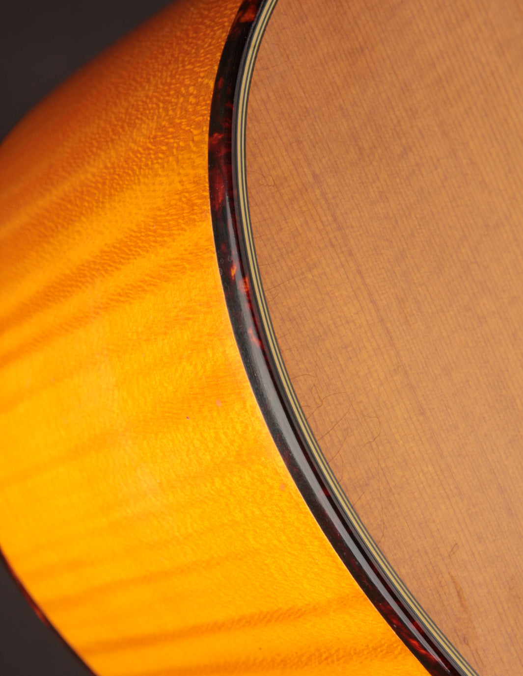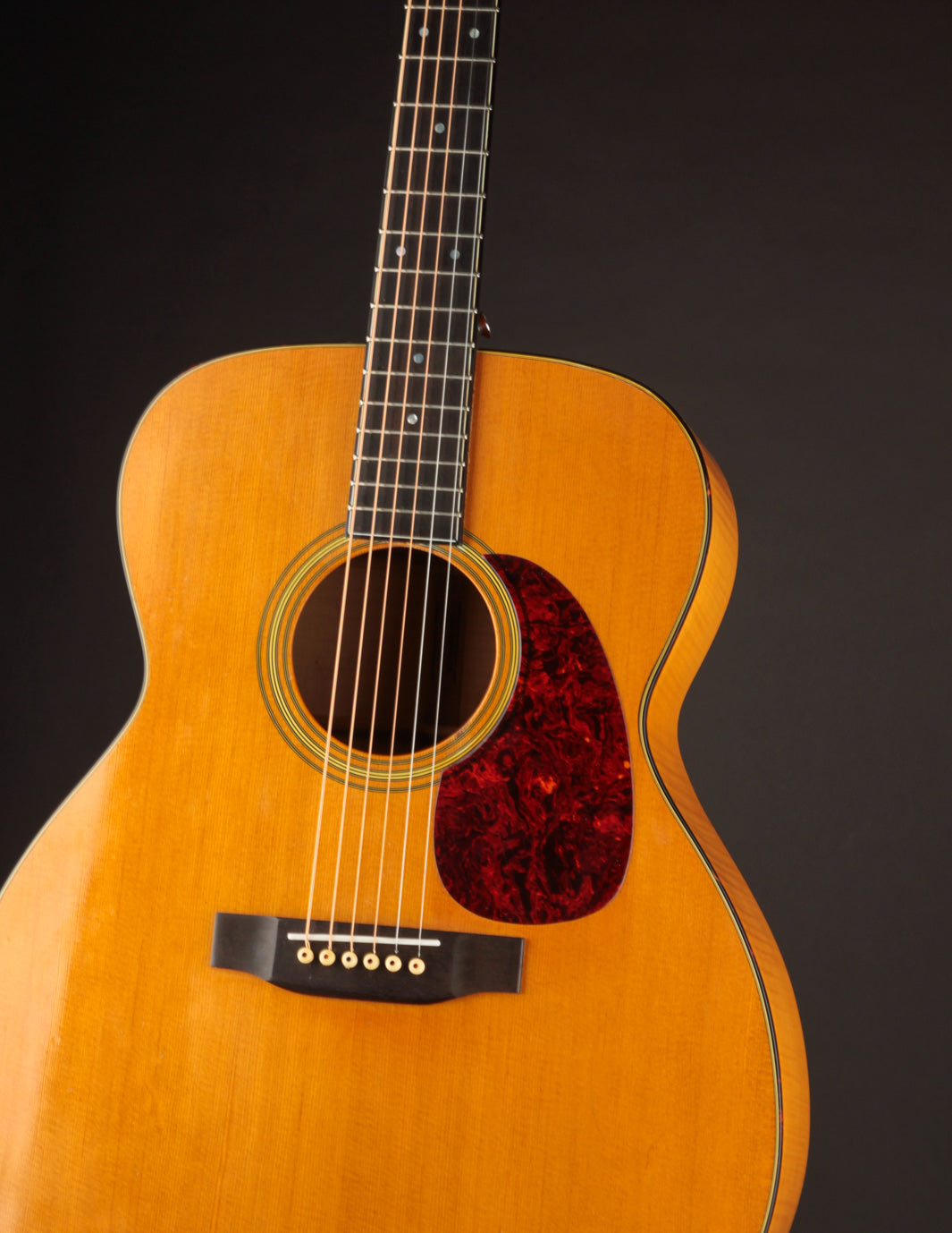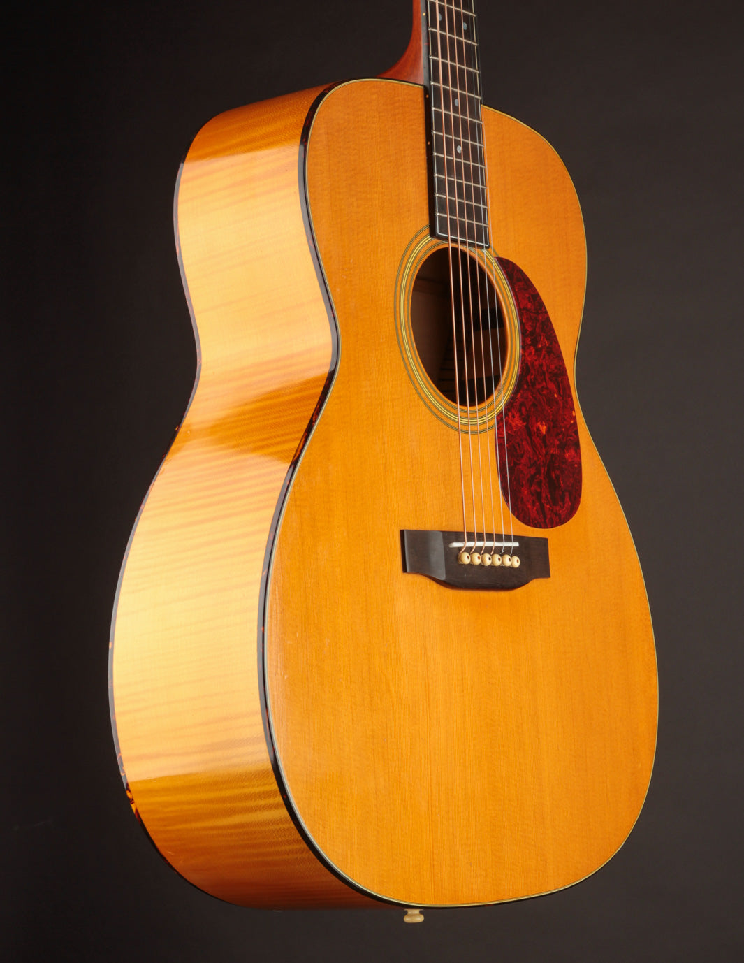 The Martin J-65M was produced from 1985 to 1995, representing a bit of a stylistic departure for the iconic flattop builder. Built on a 16" wide Jumbo platform, this guitar combines Maple back & sides, scalloped braces, and a Sitka top to produce a booming, chimey sound. It's an excellent guitar for a heavy strummer who doesn't want a dreadnought; and it also offers a fingerstylist an excellent platform for alternate tunings when clarity and warmth are called for.