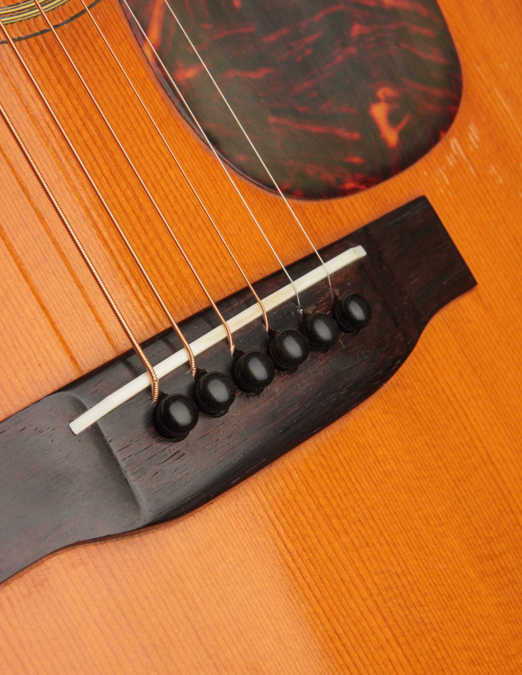 This 1964 Martin D-18 represents a great entryway into vintage guitars for a flatpicker interested in their first old-factory instrument. It's a powerful sounding instrument, with a fat, punchy low end and bright trebles. The mids have the dry, present snap coveted by crosspickers; and this guitar would record like a dream. For a bluegrass player who doesn't mind minor issues consistent with 60 years of use, this old D-18 fits the bill and then some.