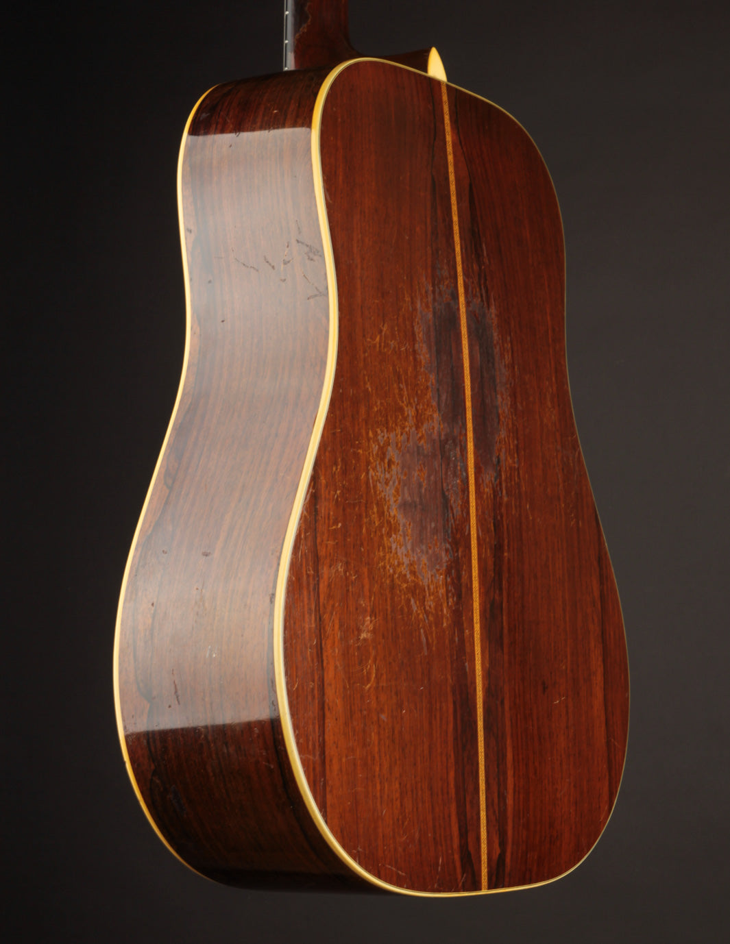 This guitar has been played; and its voice shows the benefit of many hours logged under a flatpick. The instrument is hugely resonant, with wide-open punch, power, and midrange clarity imparted by its non-scalloped braces. It's an amazing-sounding guitar for a bluegrass player who wants to dig in, but its dryness and crystalline high end make it a great recording guitar for anyone who spends time in alternate tunings as well.