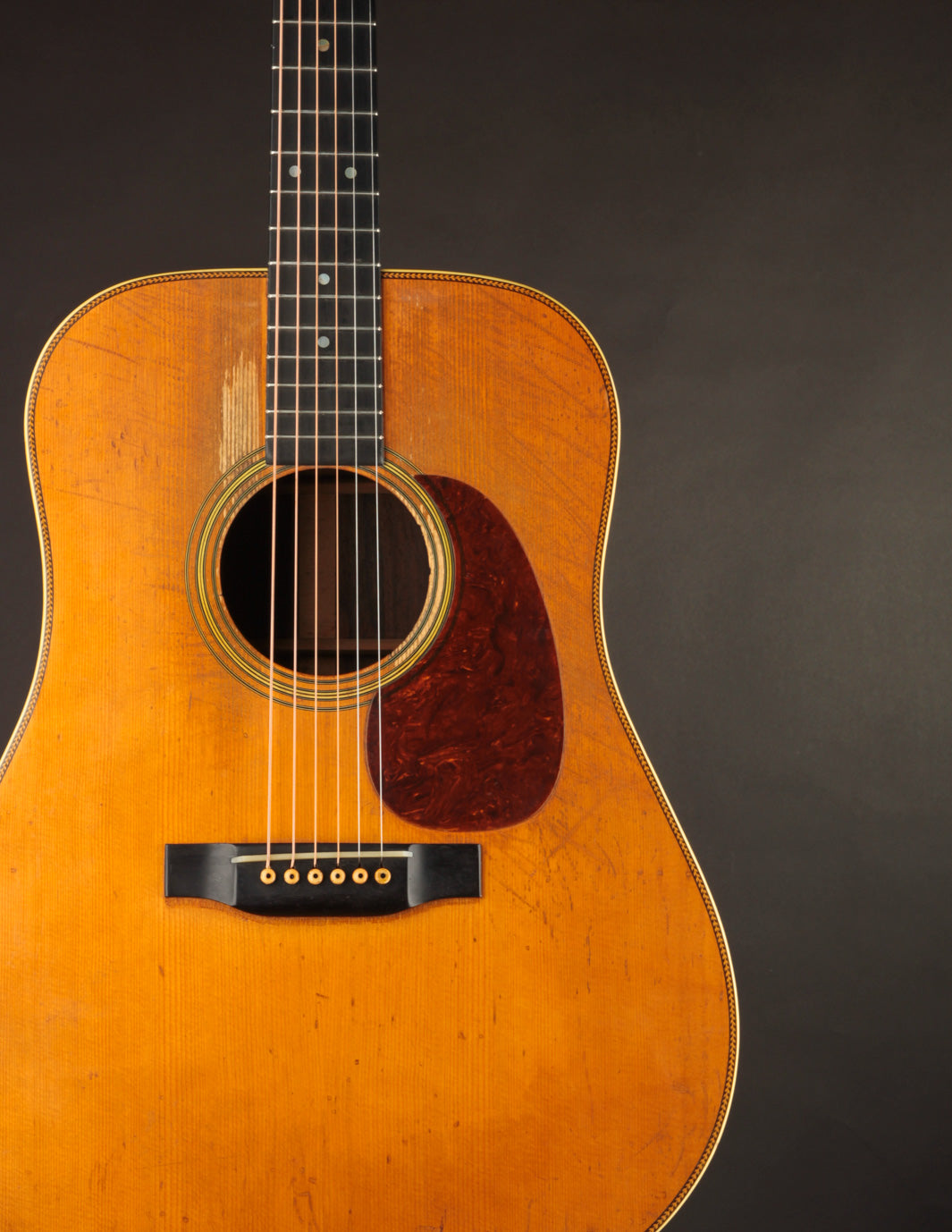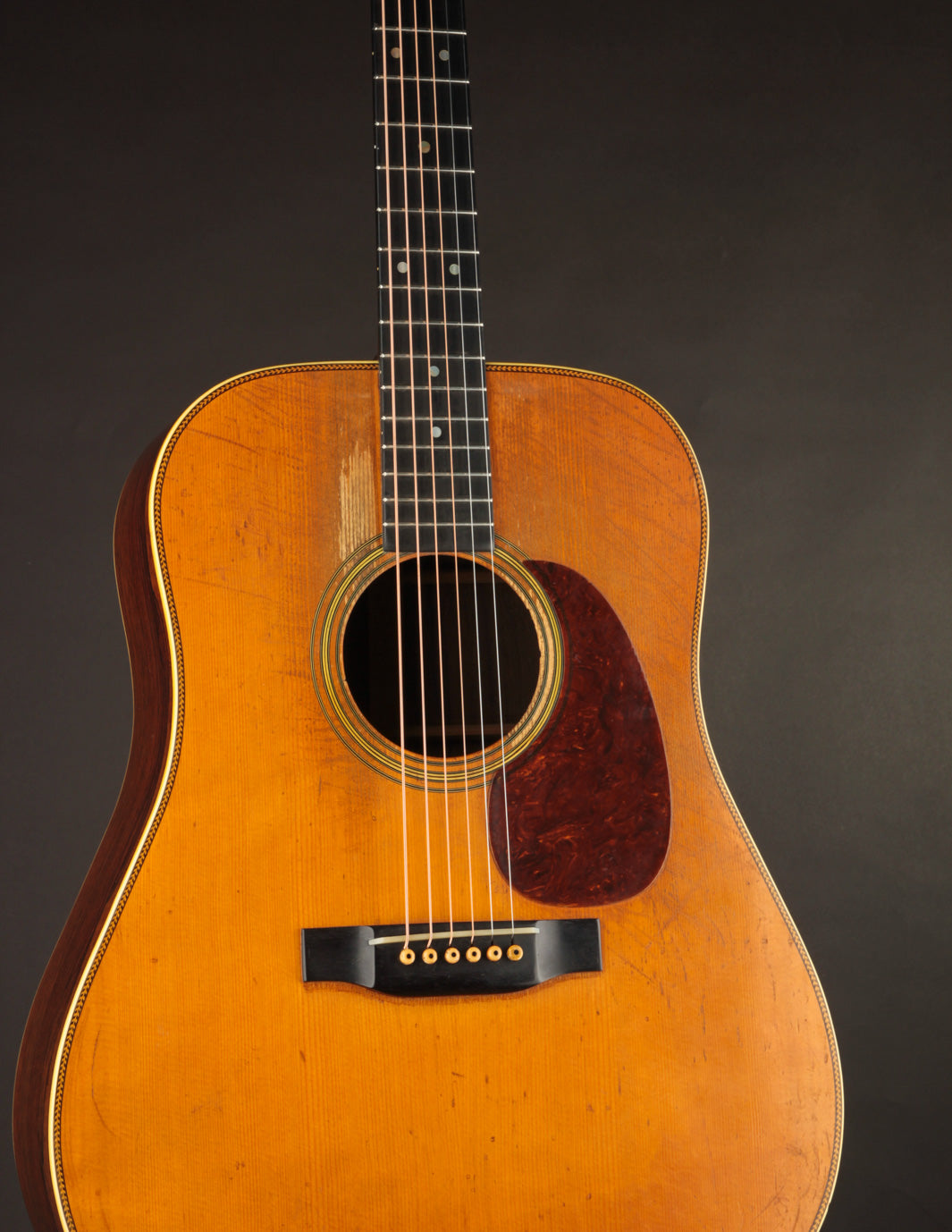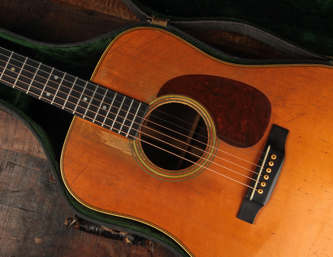 This D-28 has been played; and its voice shows the benefit of many hours logged under a flatpick. The instrument is hugely resonant, with wide-open punch, power, and midrange clarity.