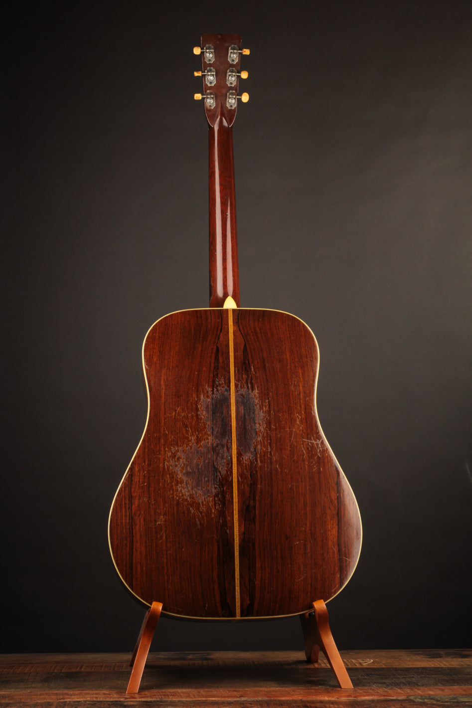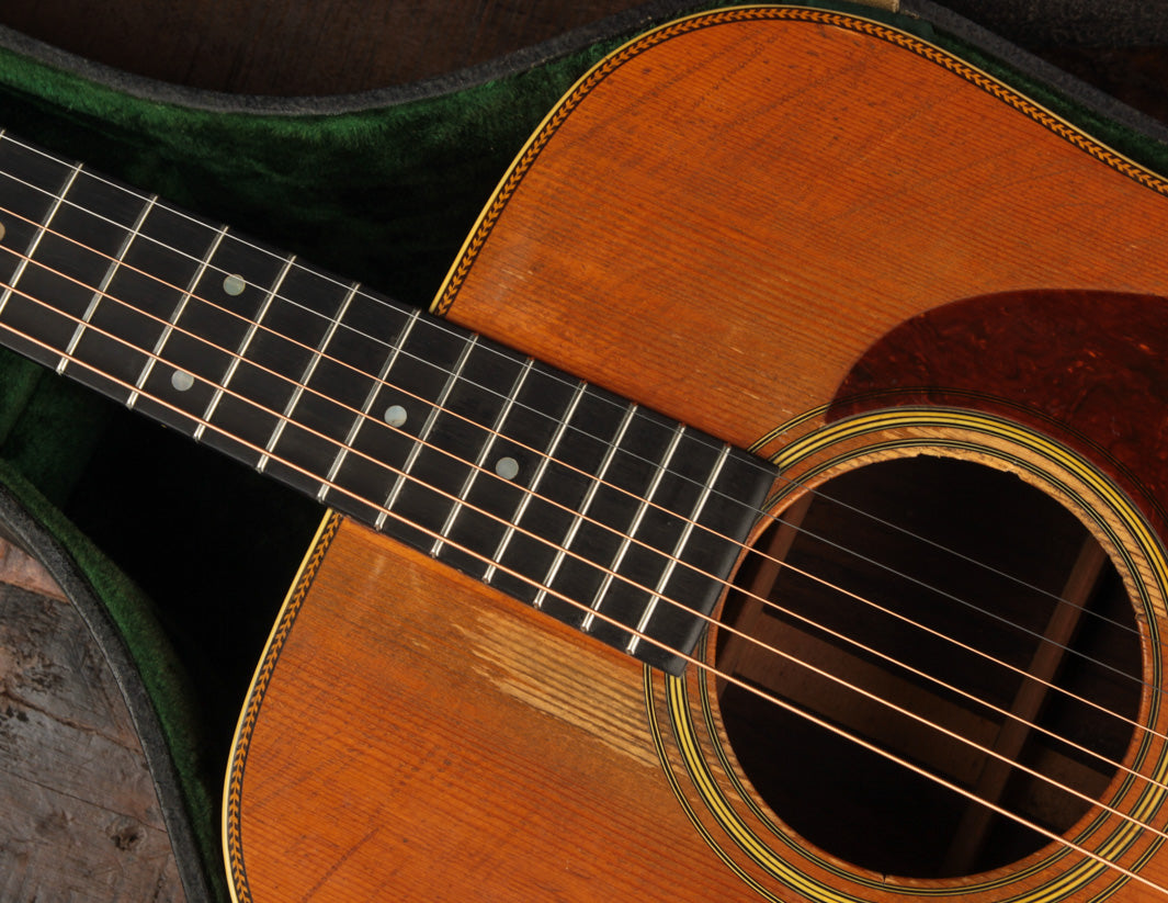This D-28, serial number 91961, is less than a thousand serial numbers away from the one that preceded it. It also comes to us from the family of its original owner; and it also had never been worked on before we received it. It sports a Red Spruce top and T-bar neck reinforcement, making it the most coveted variant of the last of the herringbone D-28s (the now-famous top trim was discontinued in 1947).