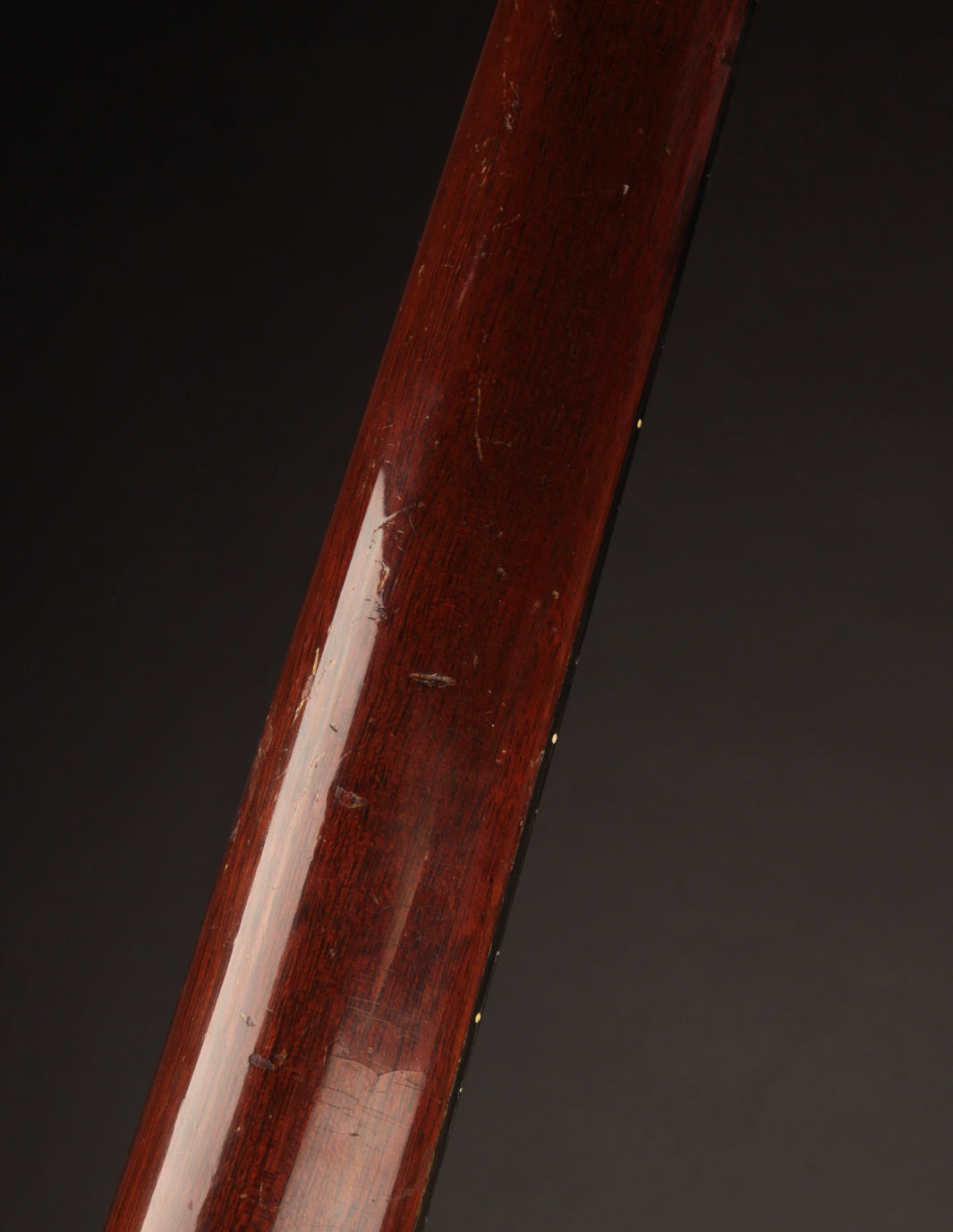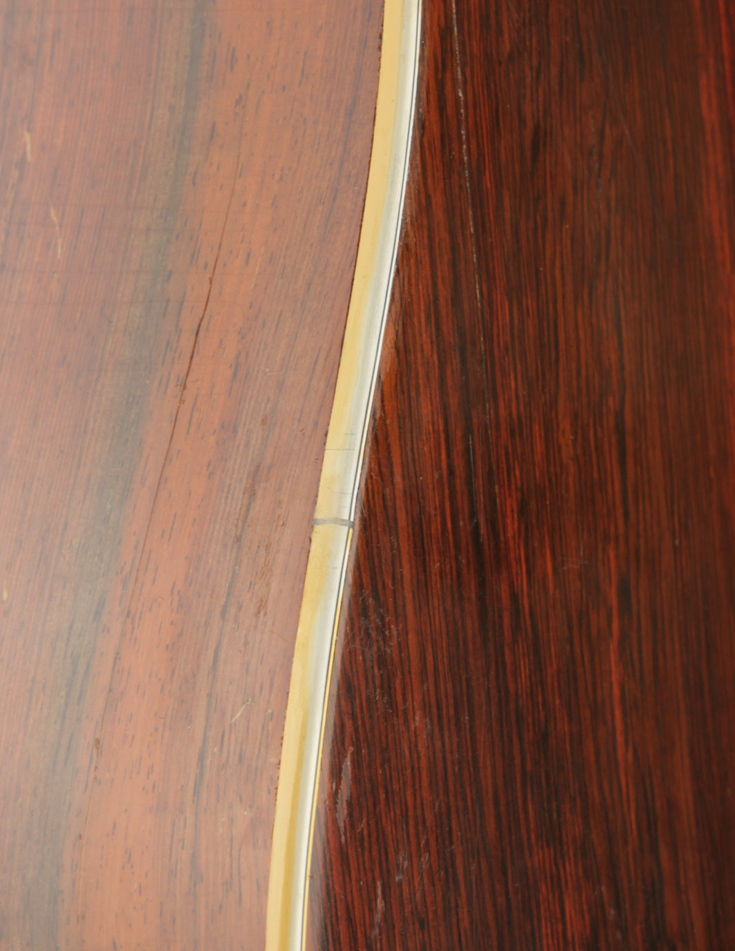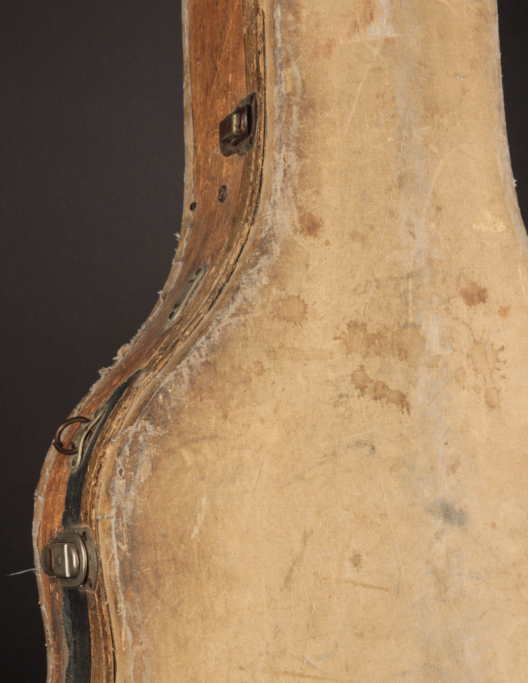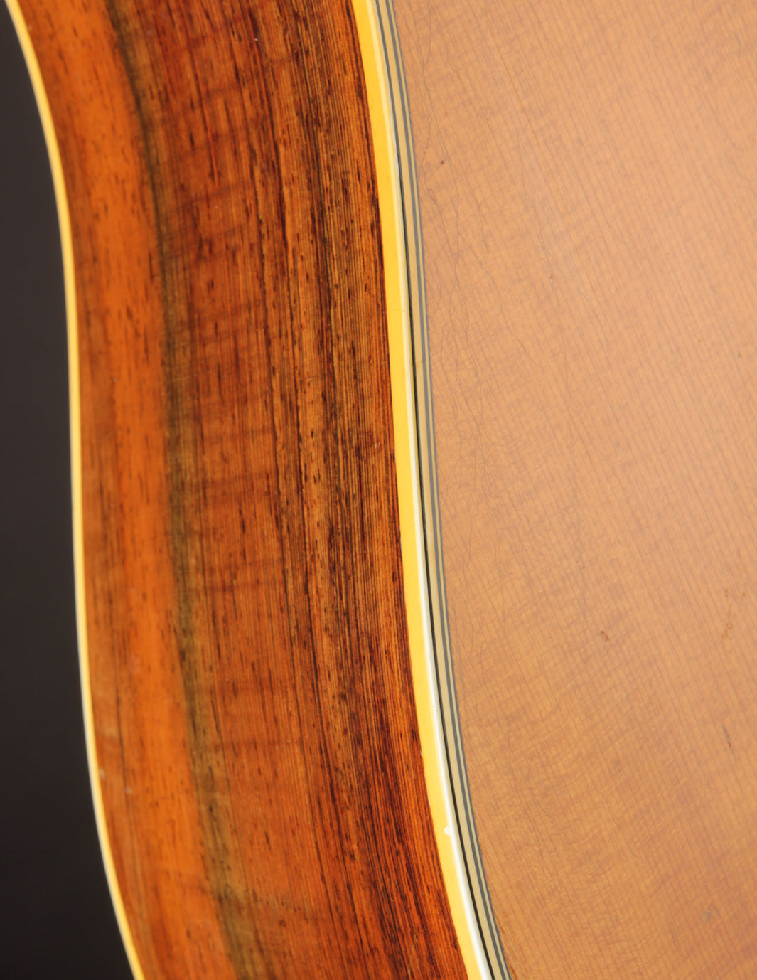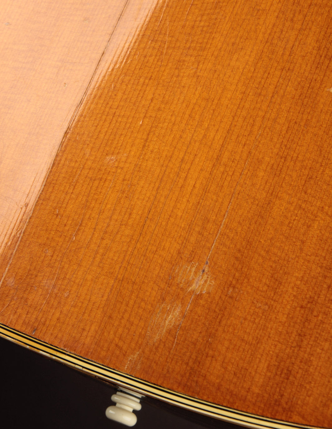 Our repair techs performed a neck reset, bridge replacement, refret, and glued cracks in the top and binding. The original pickguard had been replaced some time ago (though we think the tortoise one on the guitar looks better than an original black one would). All internal components are original and in good condition. We've kept the guitar with the original owner's case, though as the photos show it's a bit worse for the wear. We have new Martin dreadnought cases in stock if an upgrade is desired. Please note that expedited shipping is required at online checkout ~ interested buyers are welcome to contact us for Ground options.