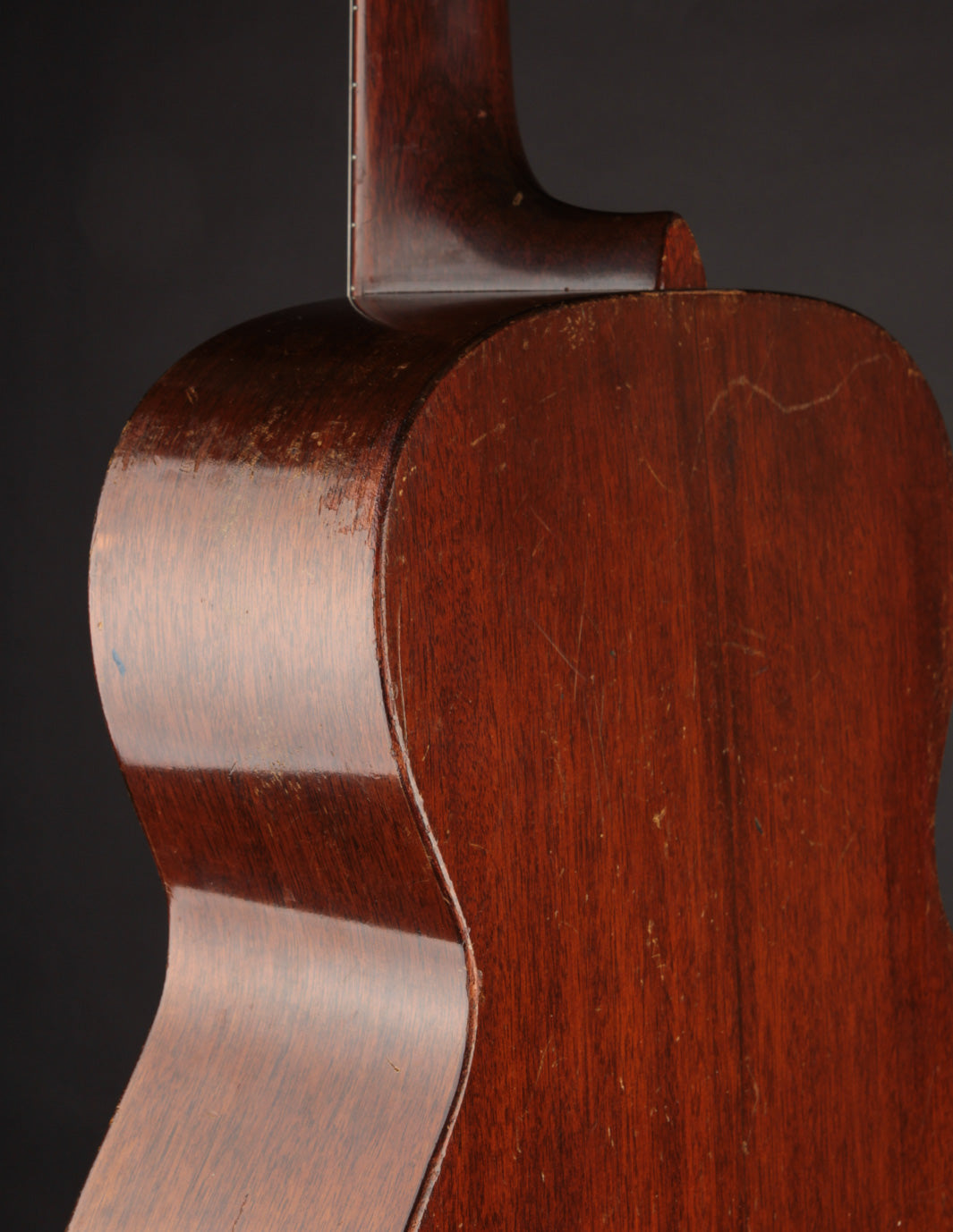 Condition: we'd rate it very good overall. Our shop has performed a new neck set; and the guitar plays beautifully. One tuner has been replaced long ago, but all other structural components are original to the guitar. No further work is required at this time. The guitar is priced with a 1970's Martin hard case.