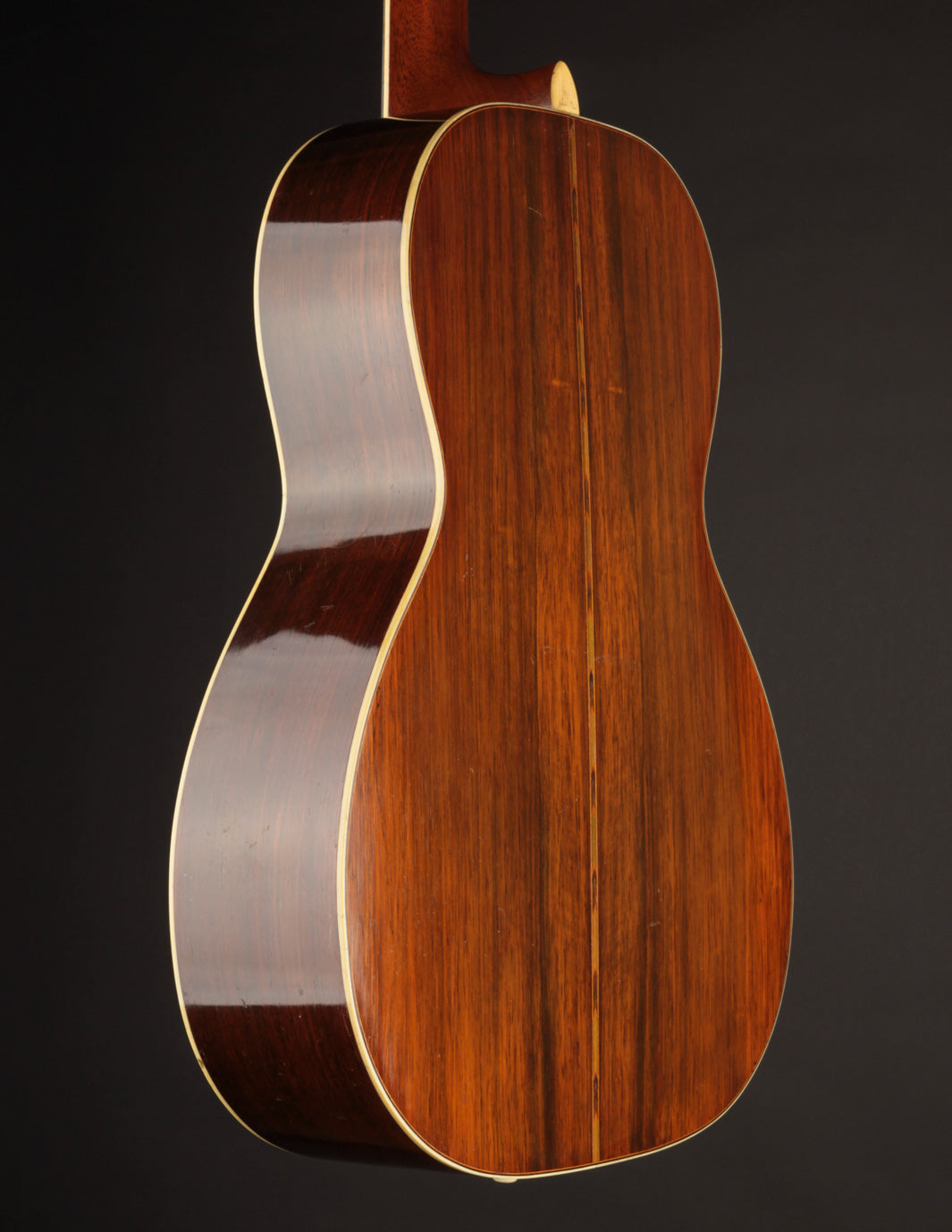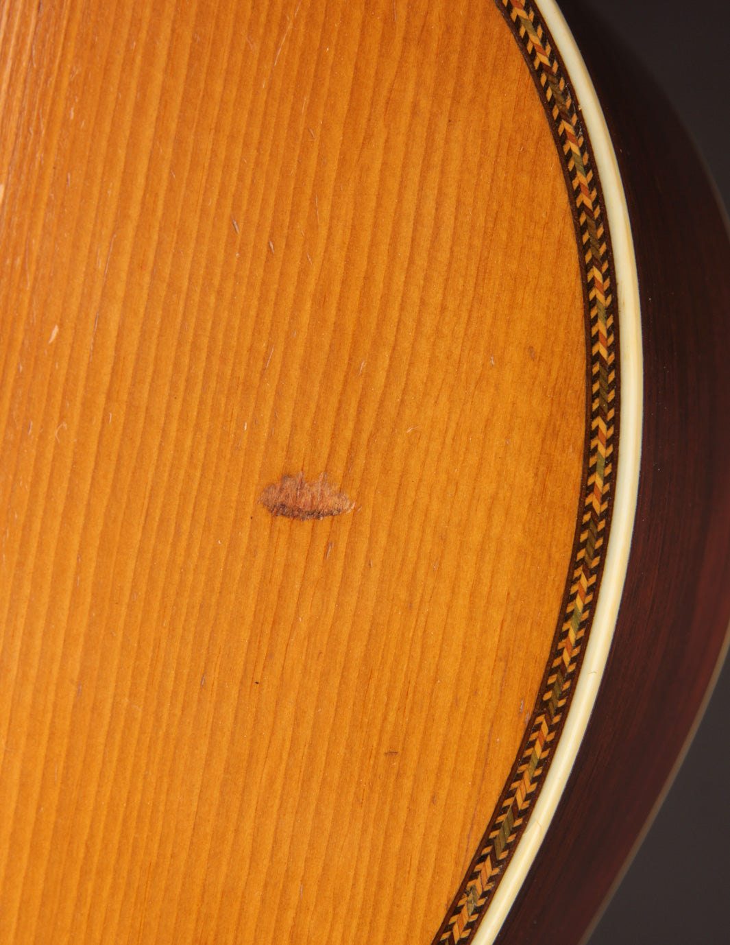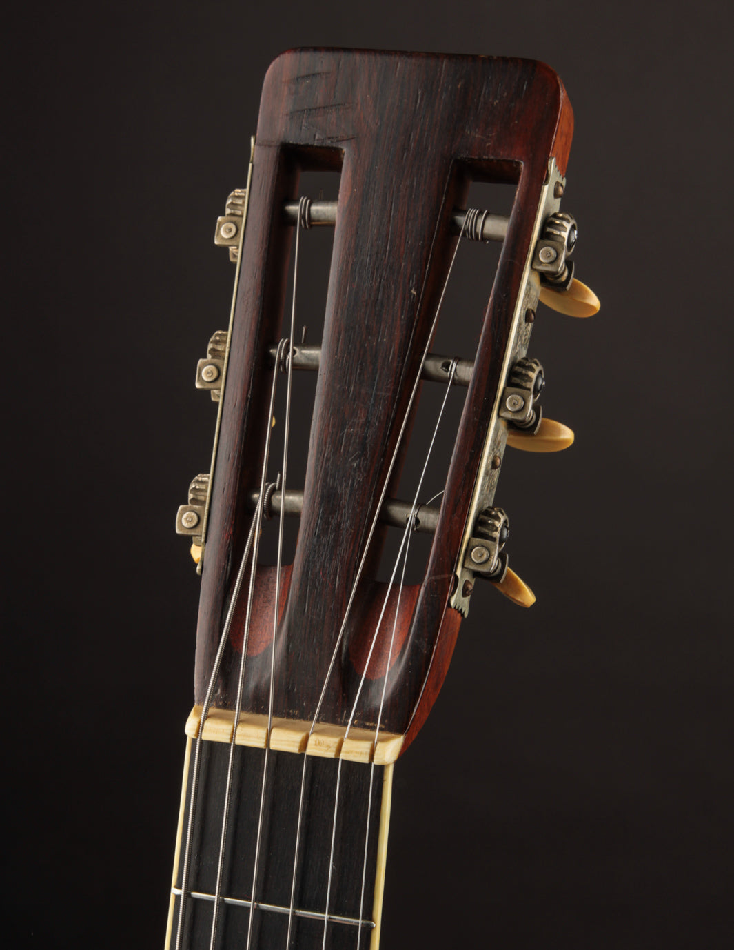 Condition: in vintage terms, this guitar falls somewhere between "very good" and "excellent." Certainly, for a 110-year old guitar, it's in great shape! There's one previously repaired top crack near the bass foot of the bridge, and an almost-invisible, hairline crack in the top (treble side, upper bout) that isn't through the wood. There are scattered dings and fingernail wear across the soundboard (remember, this guitar was played!). And the back shows a small assortment of scratches and a spot of smudgy wear (possibly from a rubber guitar stand). Our shop has installed a new saddle (the original is in the case), and the guitar plays easily with a straight neck and minimal top belly. The included case is the only one the guitar ever had, to the best of the family's knowledge -- it's a 1960's chipboard hard case. On consignment; expedited shipping required.
