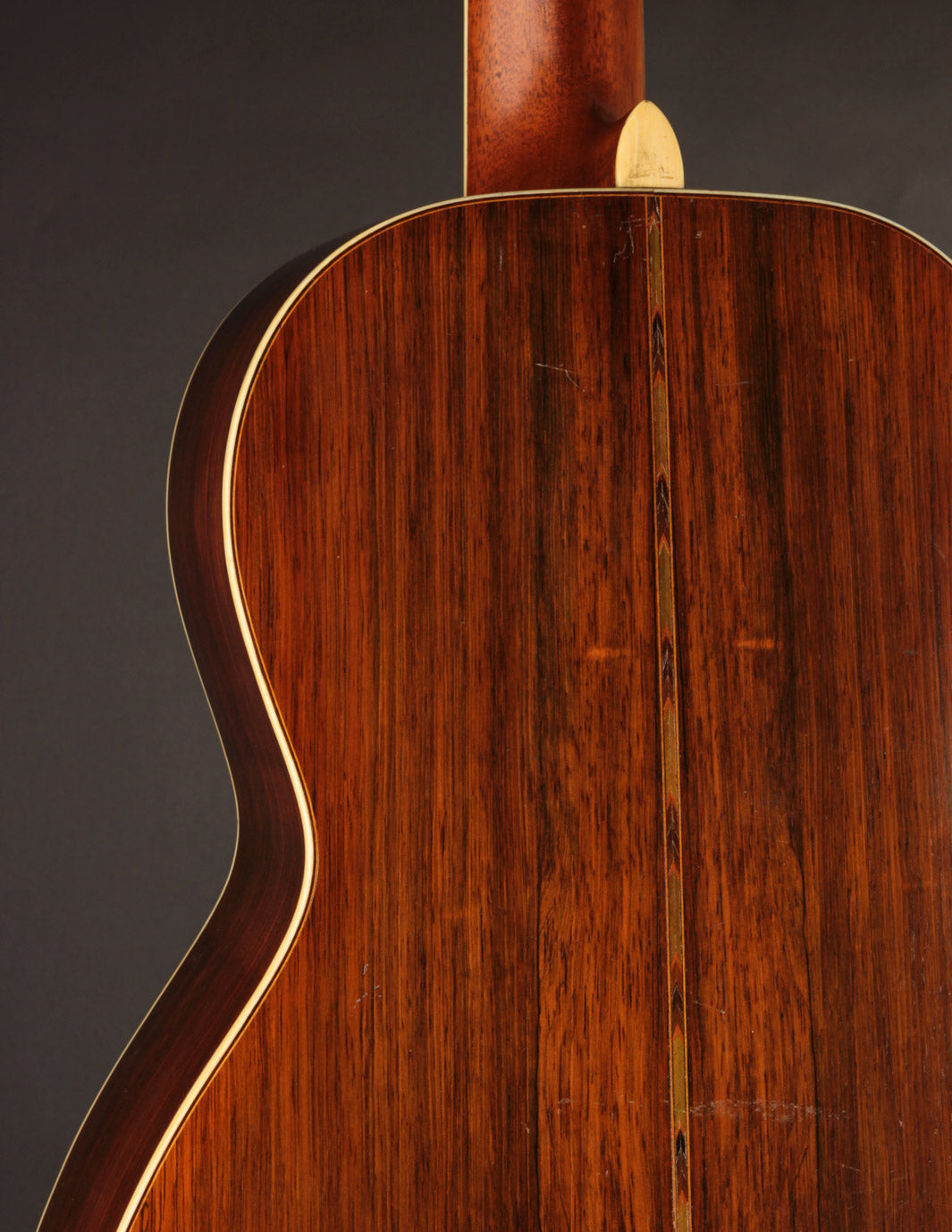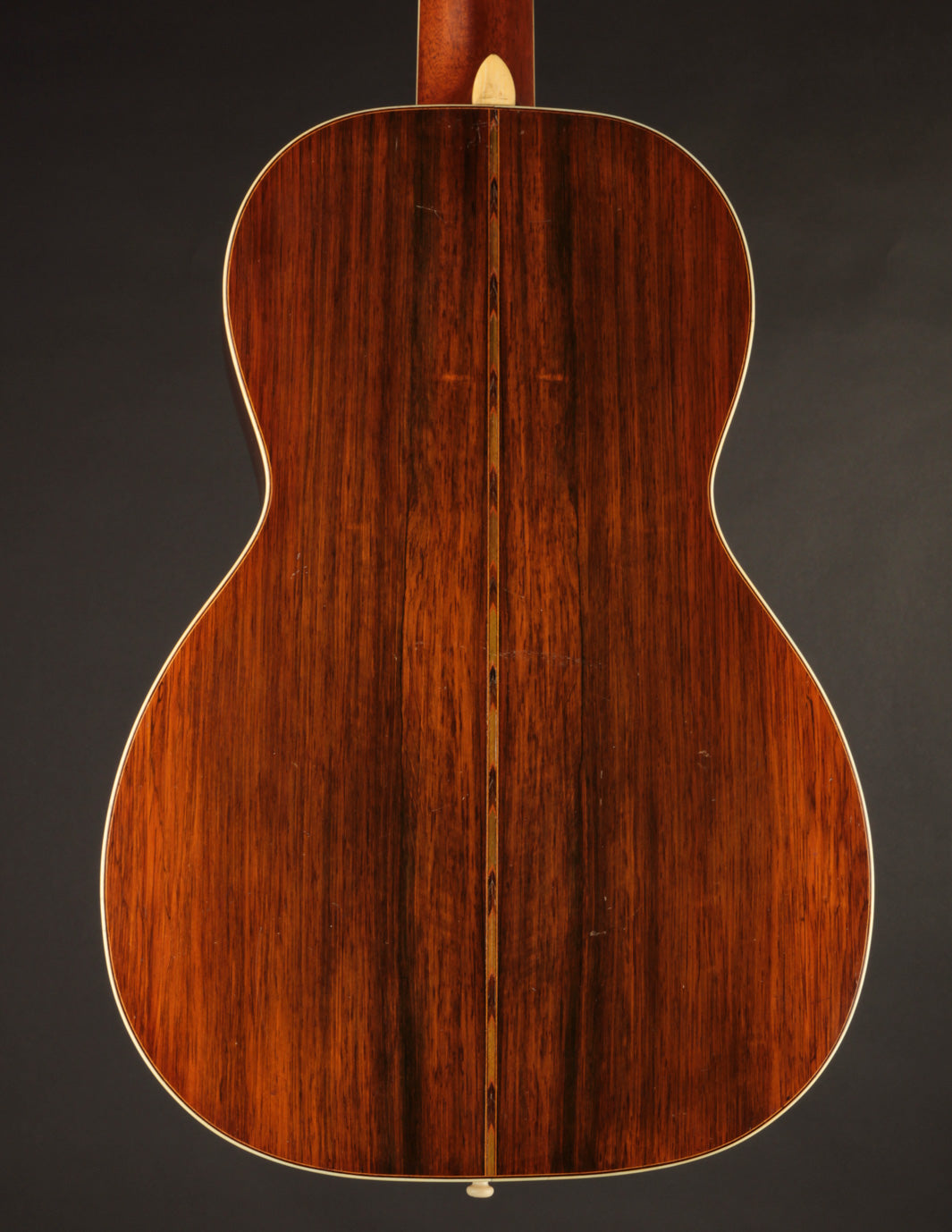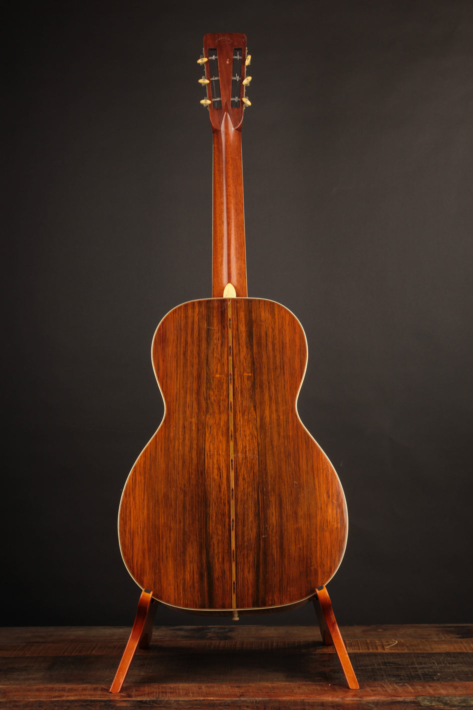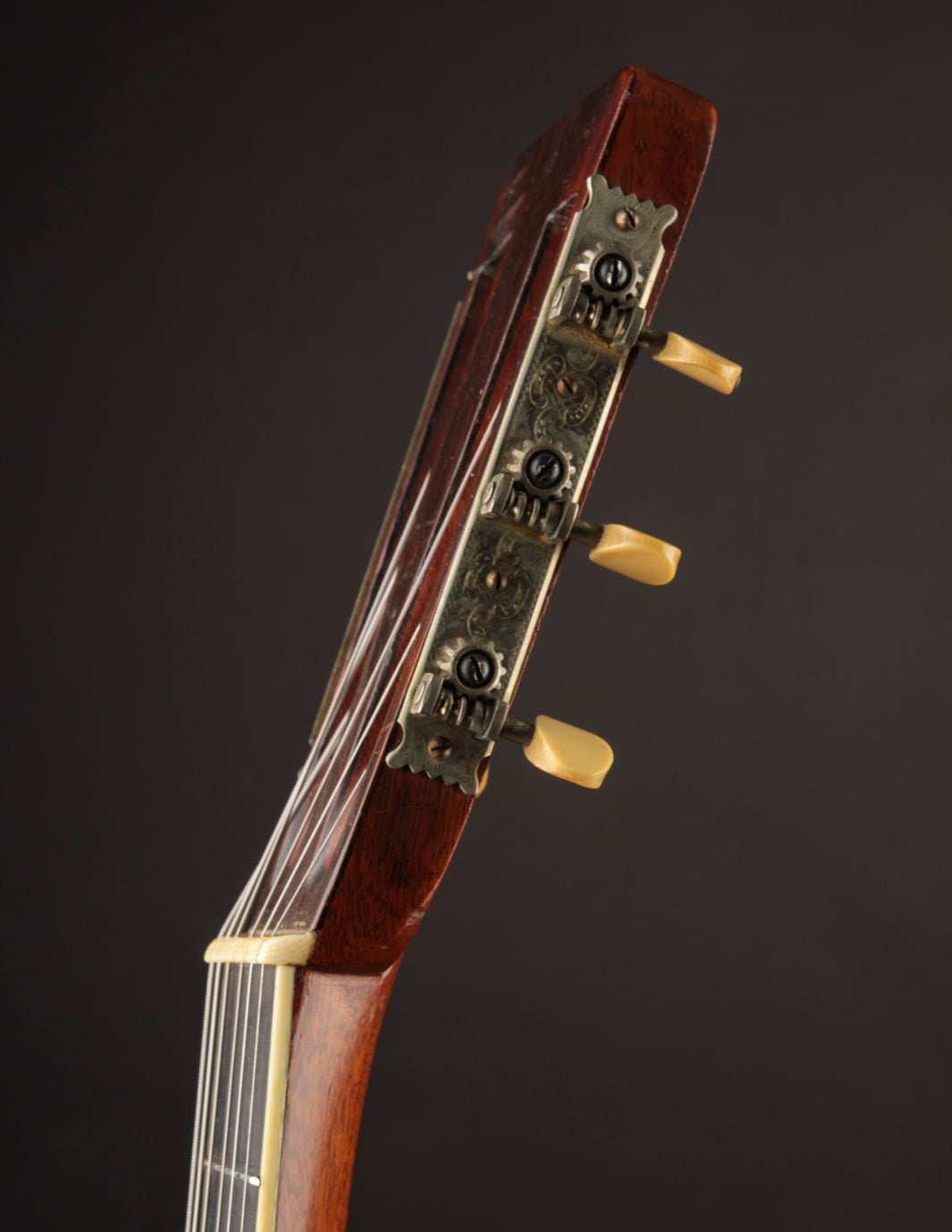 Condition: in vintage terms, this guitar falls somewhere between "very good" and "excellent." Certainly, for a 110-year old guitar, it's in great shape! There's one previously repaired top crack near the bass foot of the bridge, and an almost-invisible, hairline crack in the top (treble side, upper bout) that isn't through the wood. There are scattered dings and fingernail wear across the soundboard (remember, this guitar was played!). And the back shows a small assortment of scratches and a spot of smudgy wear (possibly from a rubber guitar stand). Our shop has installed a new saddle (the original is in the case), and the guitar plays easily with a straight neck and minimal top belly. The included case is the only one the guitar ever had, to the best of the family's knowledge -- it's a 1960's chipboard hard case. On consignment; expedited shipping required.