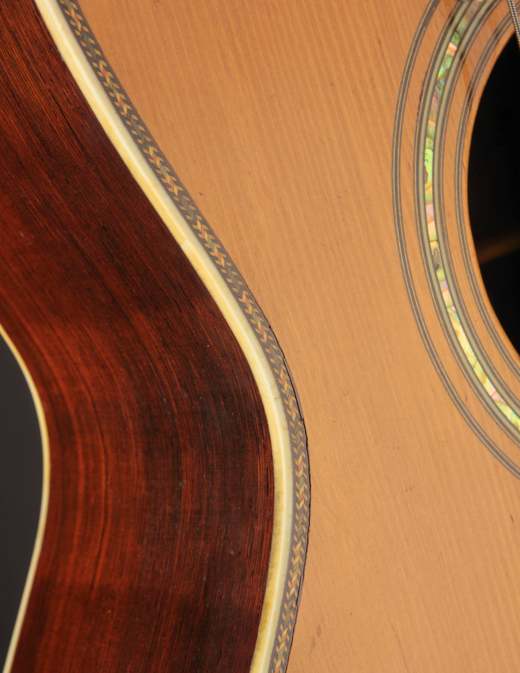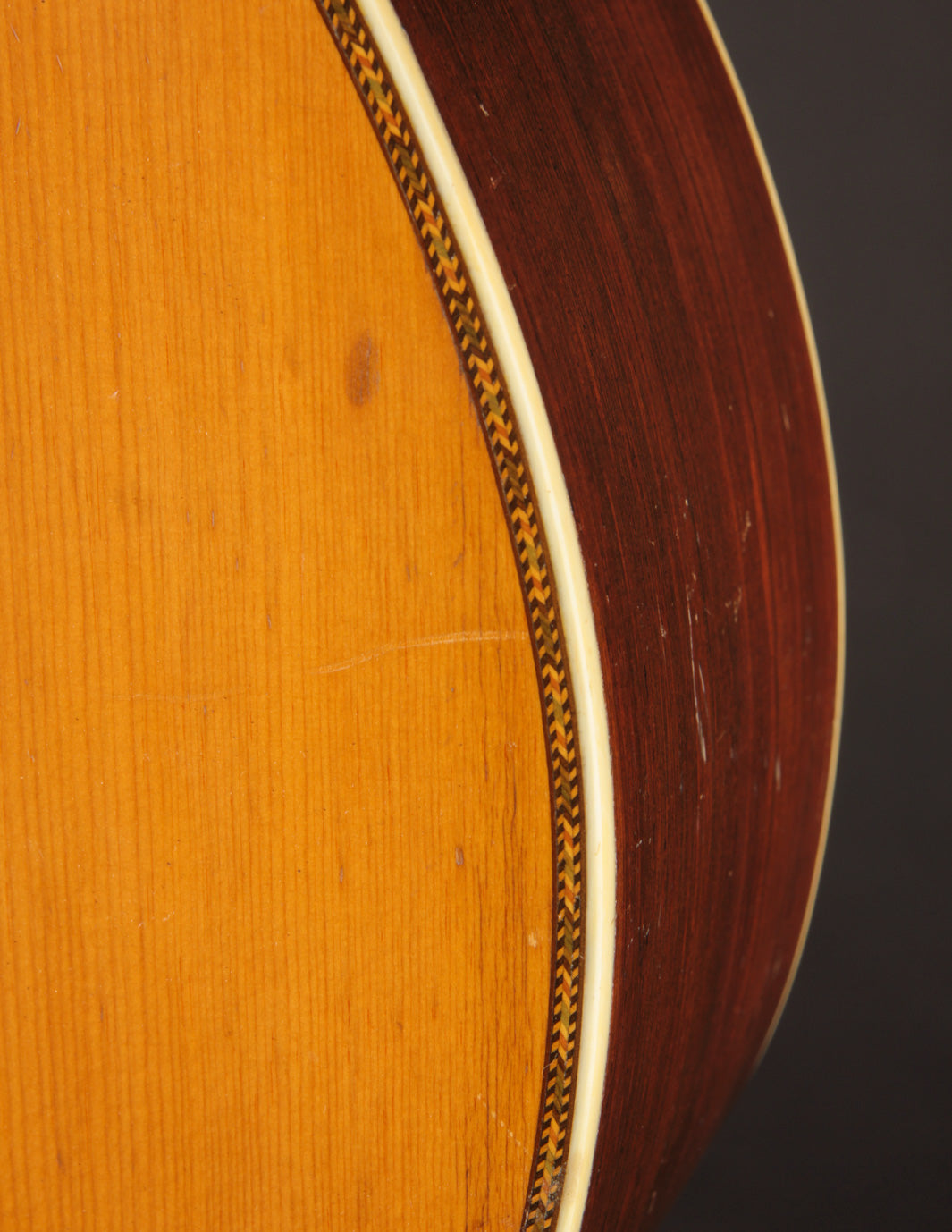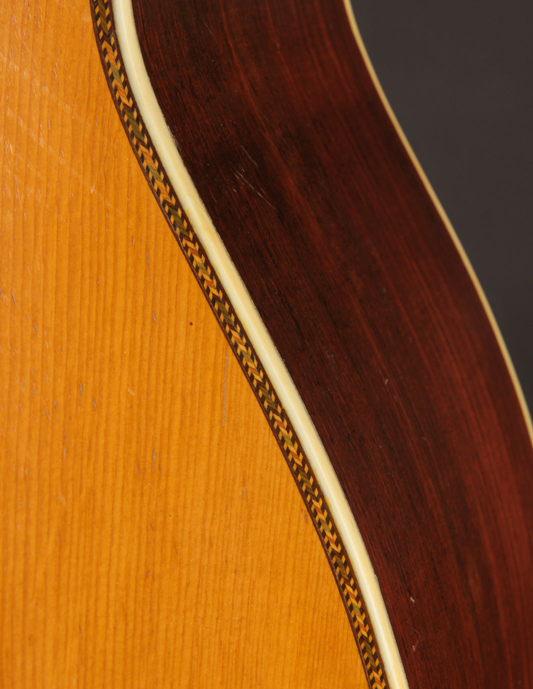 This beautiful, family-owned Martin 0-30 has just come in for consignment! It was stamped "11829" on January 13, 1914, and shipped to J.A. Handley in Lowell, Massachusetts, on April 5, 1915 -- an interesting window into either a) Martin's production lead times in that era or b) how long this guitar might've stayed at the Martin factory before finding a home. The guitar was brought to us by the granddaughter of the original owner, who performed with it in a professional acoustic ensemble in downtown Boston. The aforementioned granddaughter inherited the guitar, and has preserved it very well. It's a lovely-sounding instrument, incredibly lightly built, and joyously resonant to the lightest touch. While one could certainly use silk n' steel strings for a softer tone, we've got it strung with .011-.052 nickel strings at the moment and it sounds glorious. This is a near-time capsule example of Martin's craftsmanship and fabled tone, with the fatter treble sound and quicker response the 1920's 12-fret guitars are known for.