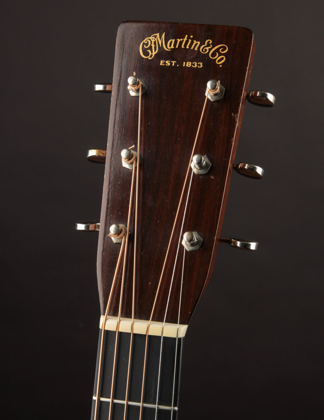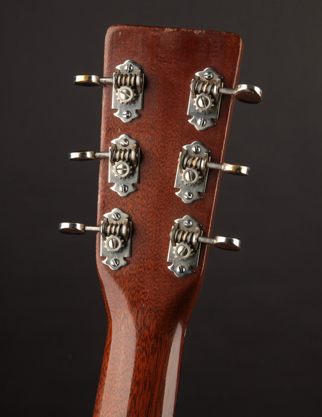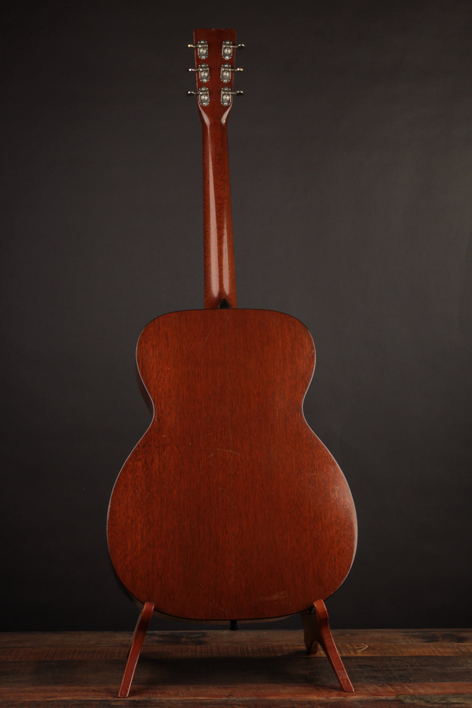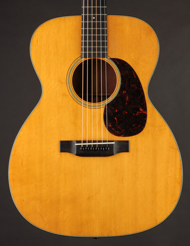 Vintage Martin guitars don't come much cleaner than this 1940 000-18 -- a wonderful sounding example of a "rear-X" mahogany guitar. Beginning in 1939, Martin moved the placement of the X brace in their guitars slightly towards the bridge, resulting in a less-boomy, more balanced sound. In a 000-18 body, the rear-shifted X has the following effect ~ a slightly more aggressive midrange, with less woofiness in the low end and brighter trebles. None of the characteristic growl and woody sparkle inherent in a pre-war mahogany Martin is absent; and this particular instrument makes for a dreamy flatpick guitar if the player desires a 000 with the narrower 1 11/16" nut width. The rear-X voicing makes it a warm-yet-incredibly articulate fingerpicking guitar as well. Translation? It seems there's no style of play (or music) this guitar won't accommodate with aplomb, and its depth of tone will delight anyone who's in search of the golden-era Martin luster.