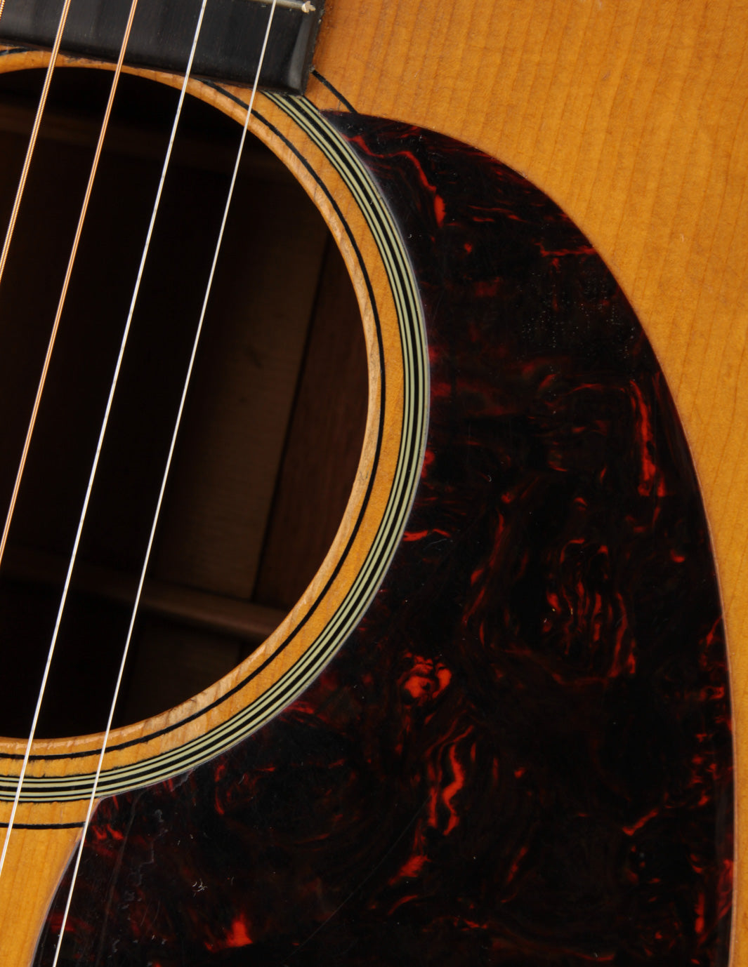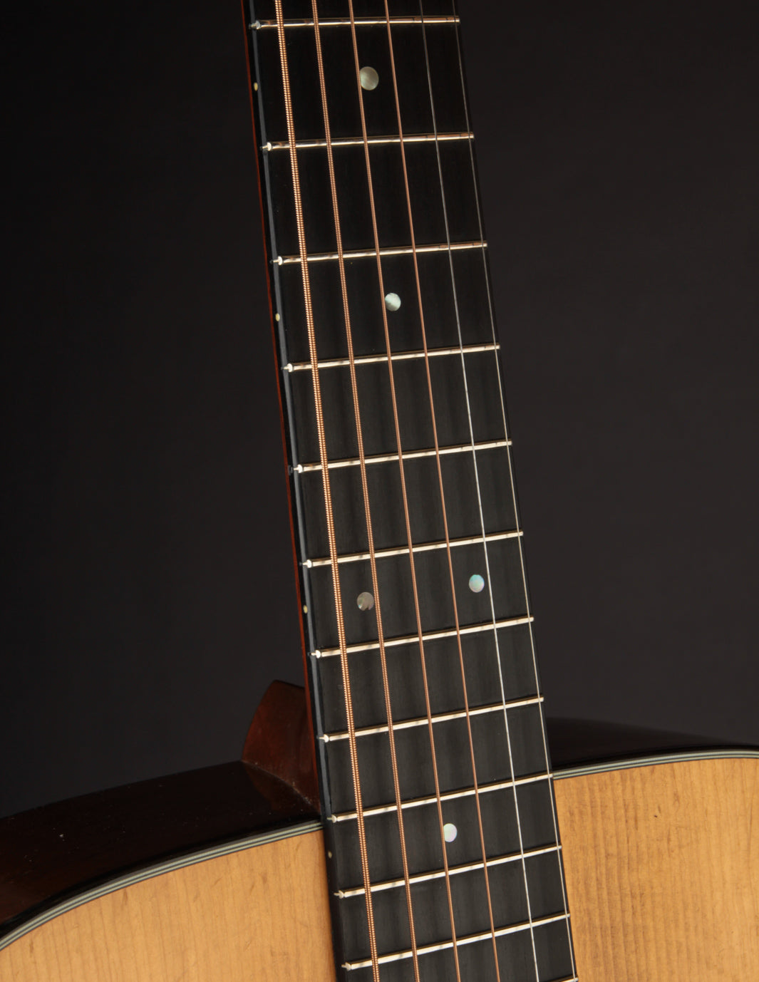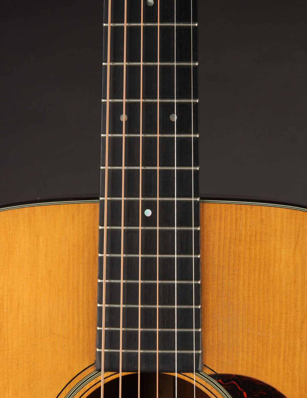 Vintage Martin guitars don't come much cleaner than this 1940 000-18 -- a wonderful sounding example of a "rear-X" mahogany guitar. Beginning in 1939, Martin moved the placement of the X brace in their guitars slightly towards the bridge, resulting in a less-boomy, more balanced sound. In a 000-18 body, the rear-shifted X has the following effect ~ a slightly more aggressive midrange, with less woofiness in the low end and brighter trebles. None of the characteristic growl and woody sparkle inherent in a pre-war mahogany Martin is absent; and this particular instrument makes for a dreamy flatpick guitar if the player desires a 000 with the narrower 1 11/16" nut width. The rear-X voicing makes it a warm-yet-incredibly articulate fingerpicking guitar as well. Translation? It seems there's no style of play (or music) this guitar won't accommodate with aplomb, and its depth of tone will delight anyone who's in search of the golden-era Martin luster.