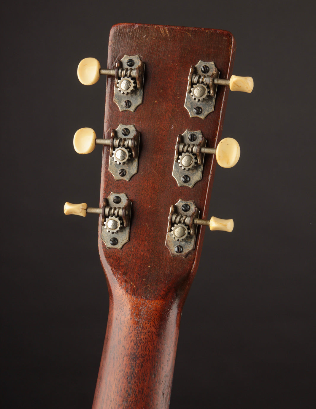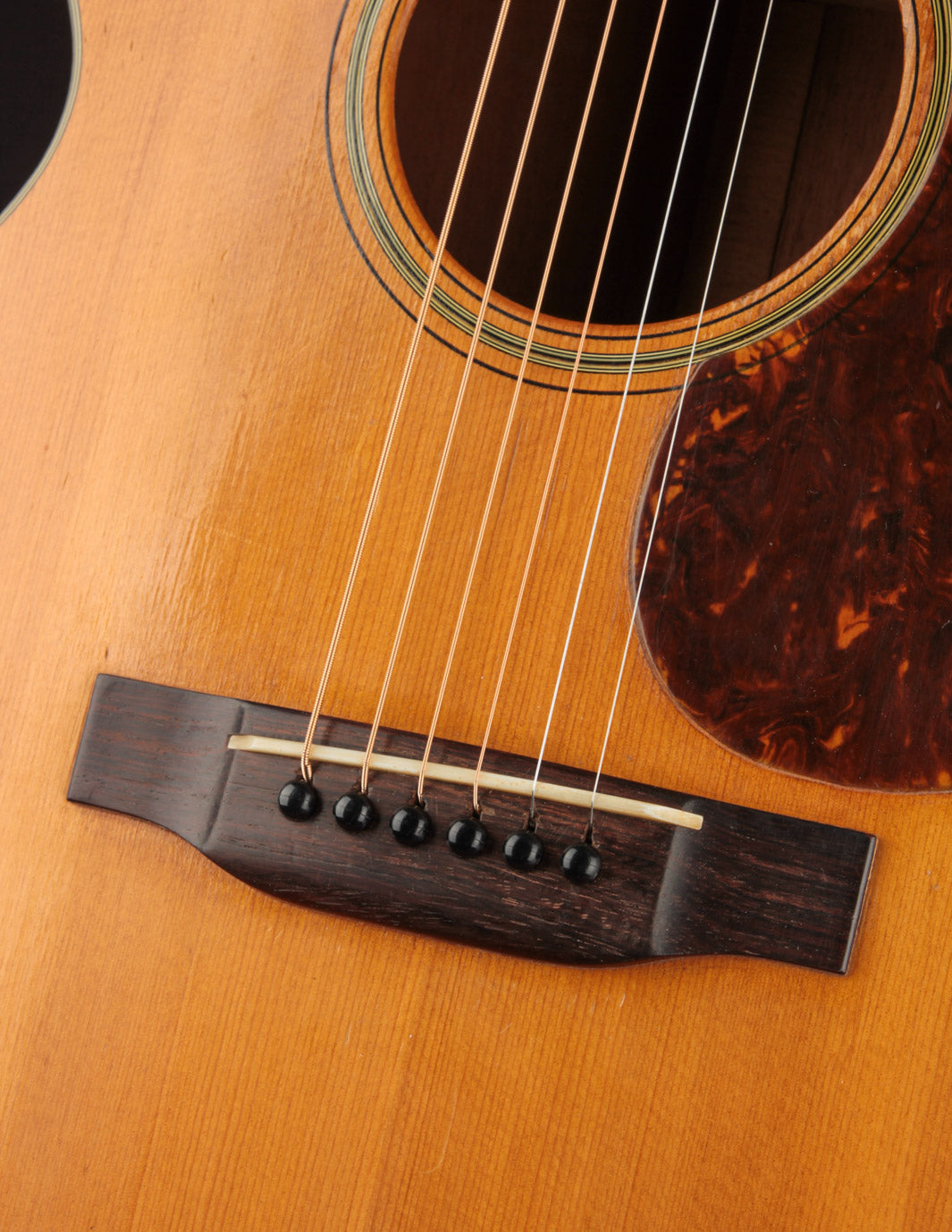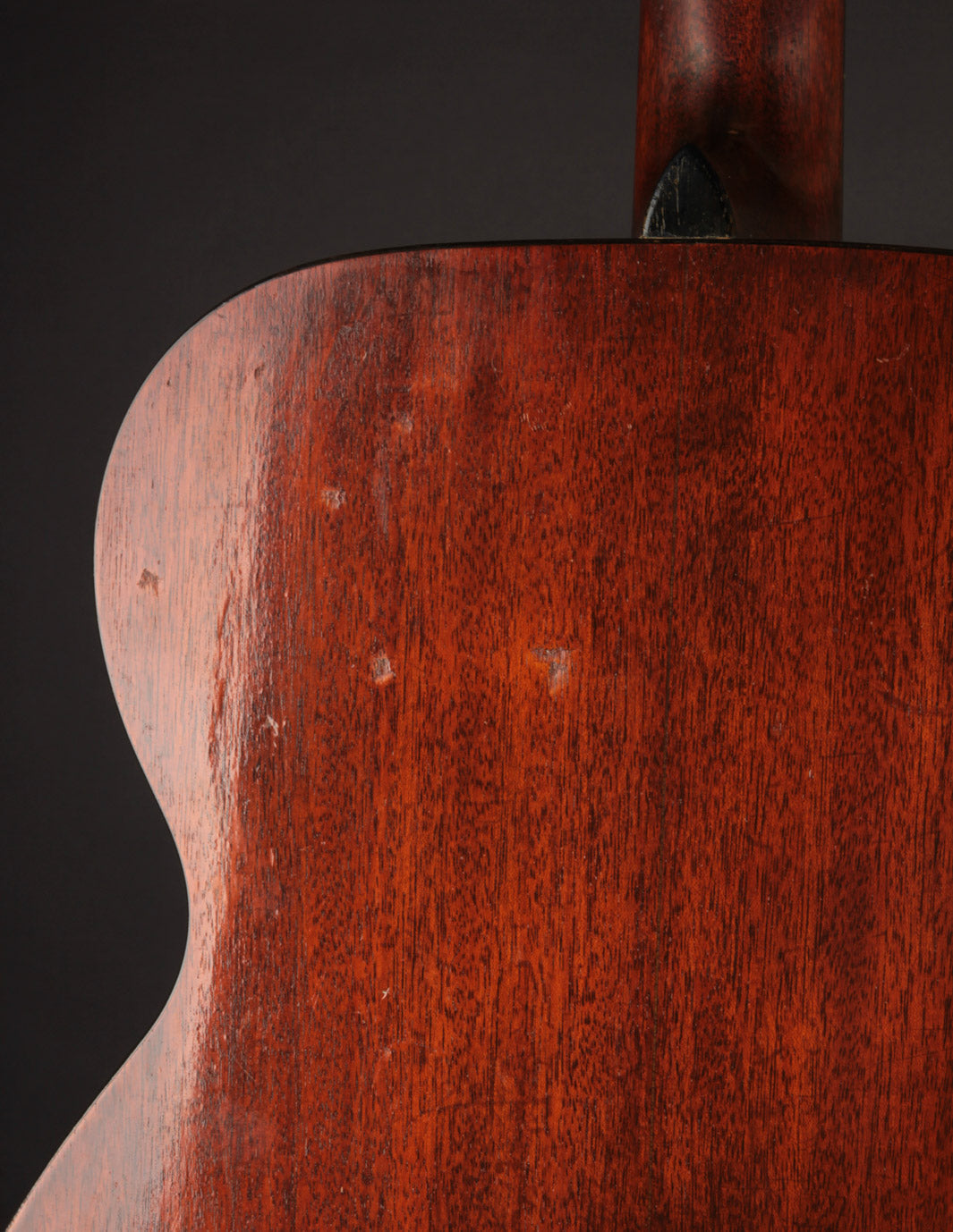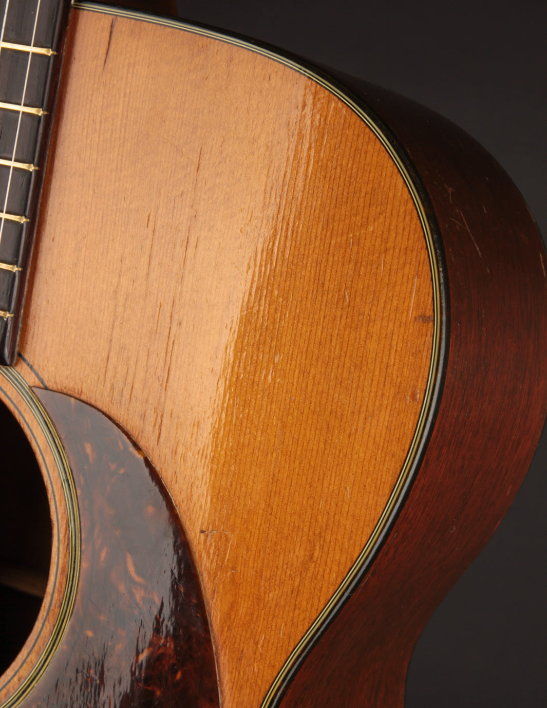 The guitar has had a recent neck reset, and plays cleanly up and down the neck. Our shop has installed a new nut, to replace an older replacement with too-narrow spacing. The back has been refinished, and the back and sides show light overspray. The bridge is original, and the bridge plate appears so as well. It's likely that a luthier has thinned the neck a bit at some point in the past: it feels a bit thinner in the first position than other Martins from this period, and the neck finish shows signs of alteration in that area. To reiterate, the takeaway with this guitar is: excellent sounding instrument for a player who doesn't mind a few alterations. Priced with new hard case from the "Original Case Co." Expedited shipping only online -- please contact us for other options!