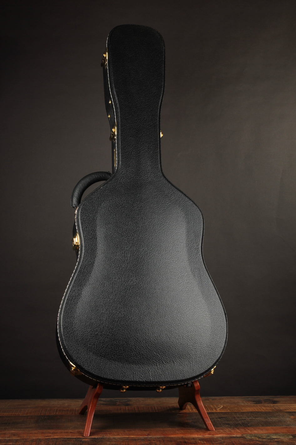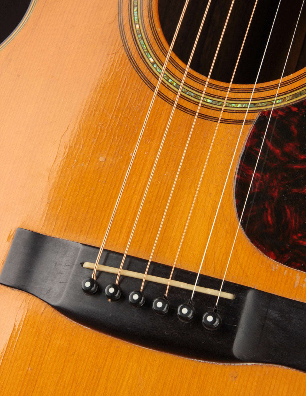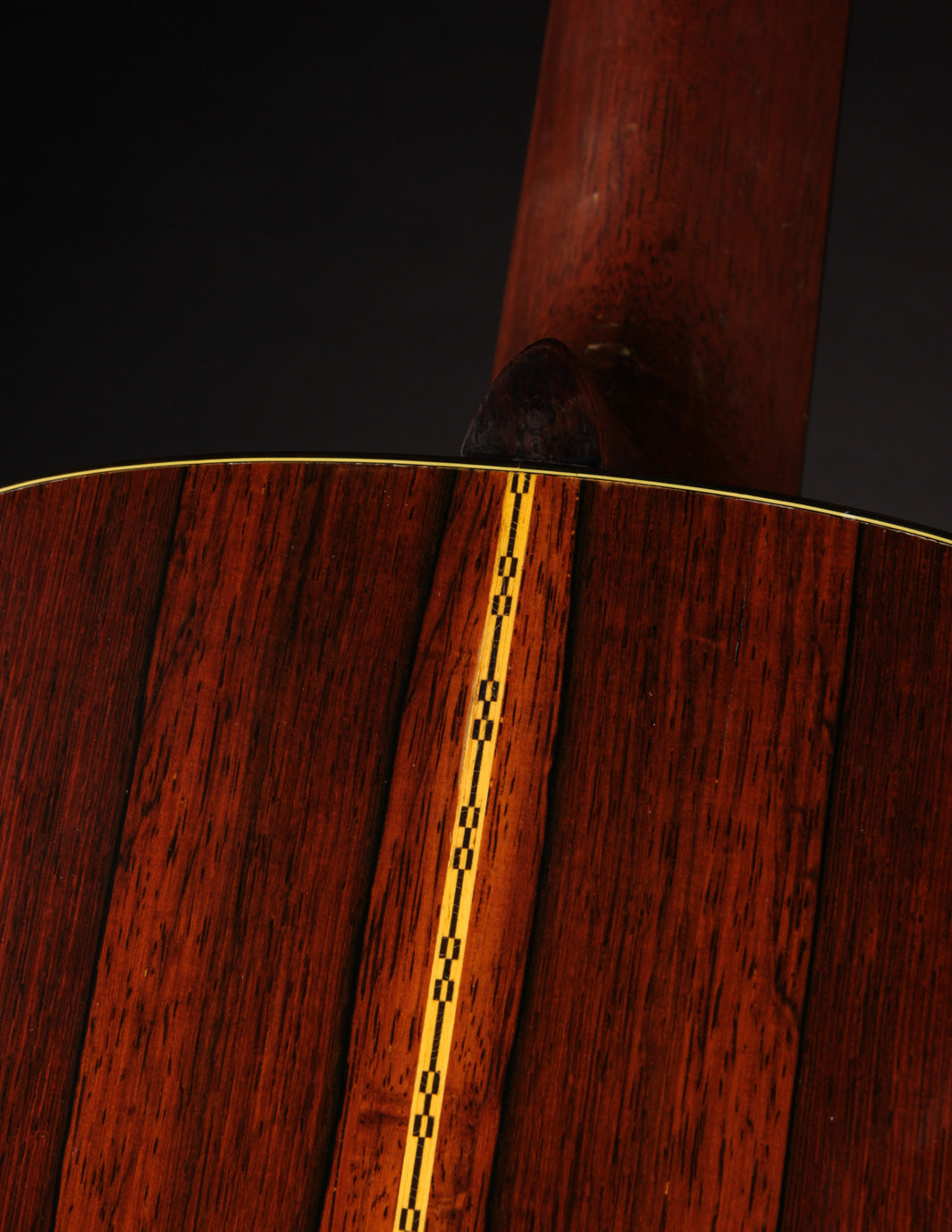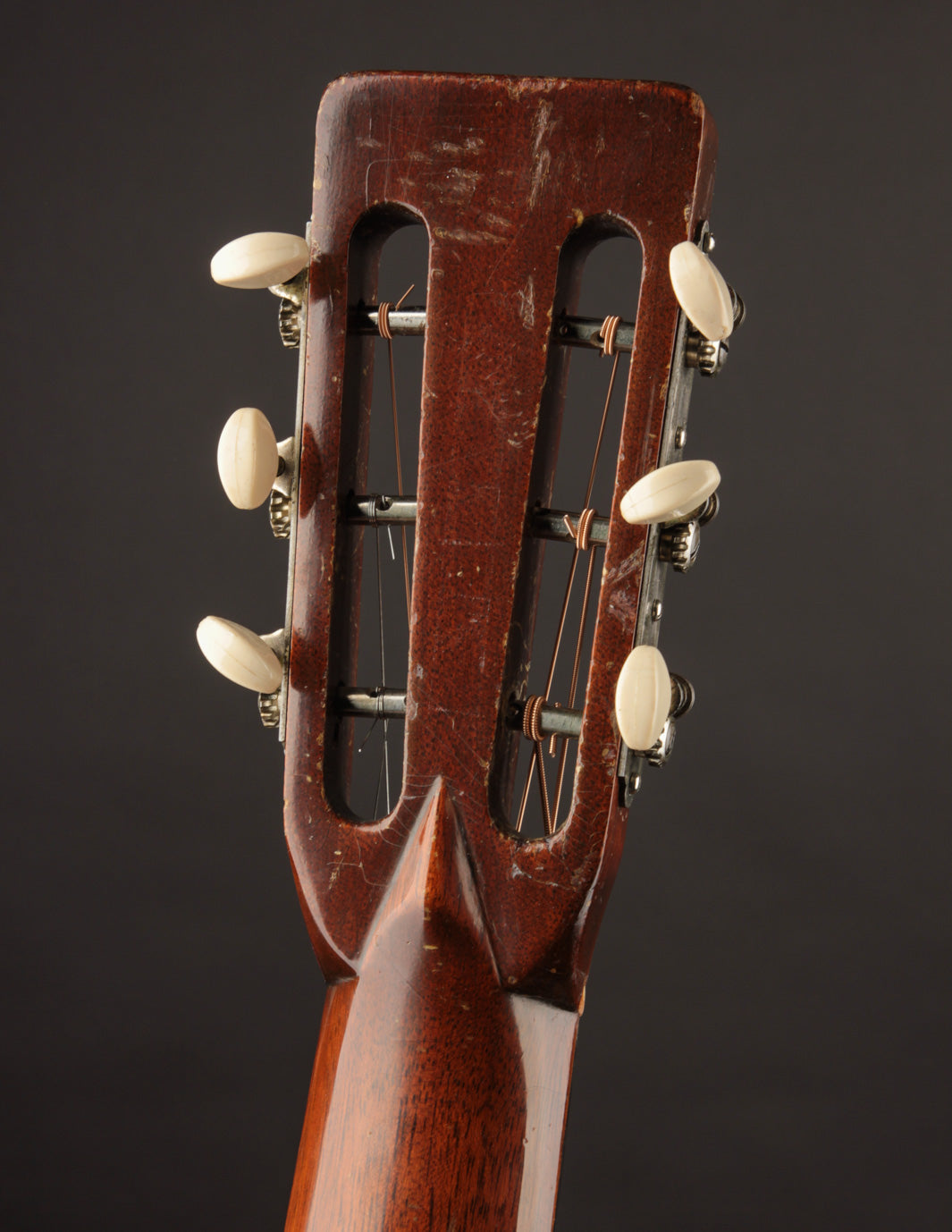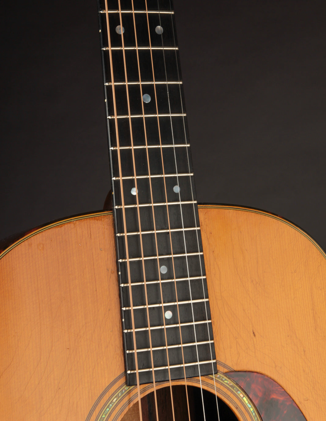 This exceptionally cool 1965 Martin 000-21S ("S" for "Special Order") has just come in for consignment! Martin wasn't making a 12-fret 000 in the 1960's, but produced this guitar as a special order for one of their retailers who ordered it as a gift for his wife. It features some absolutely stunning Brazilian Rosewood back & sides, and (perhaps even more stunning?) and old-stock Red Spruce top from the 1930's complete with pearl rosette. The aforementioned dealer also requested the couple's dog's name be stamped on the neck block; and sure enough, you'll find "Duende" branded there right next to ther serial number (200000). The guitar went back to Martin at some point for a headstock crack repair, at which time it was oversprayed. The original bridge has been replaced as well. Other than that, the instrument remains in lovely condition and plays nicely up and down the neck. The sound is wonderful ~ big, powerful, and open, with a depth of tone one simply does not normally hear in a 1960's Martin. Price includes non-original Martin hard case. On consignment; expedited shipping required.