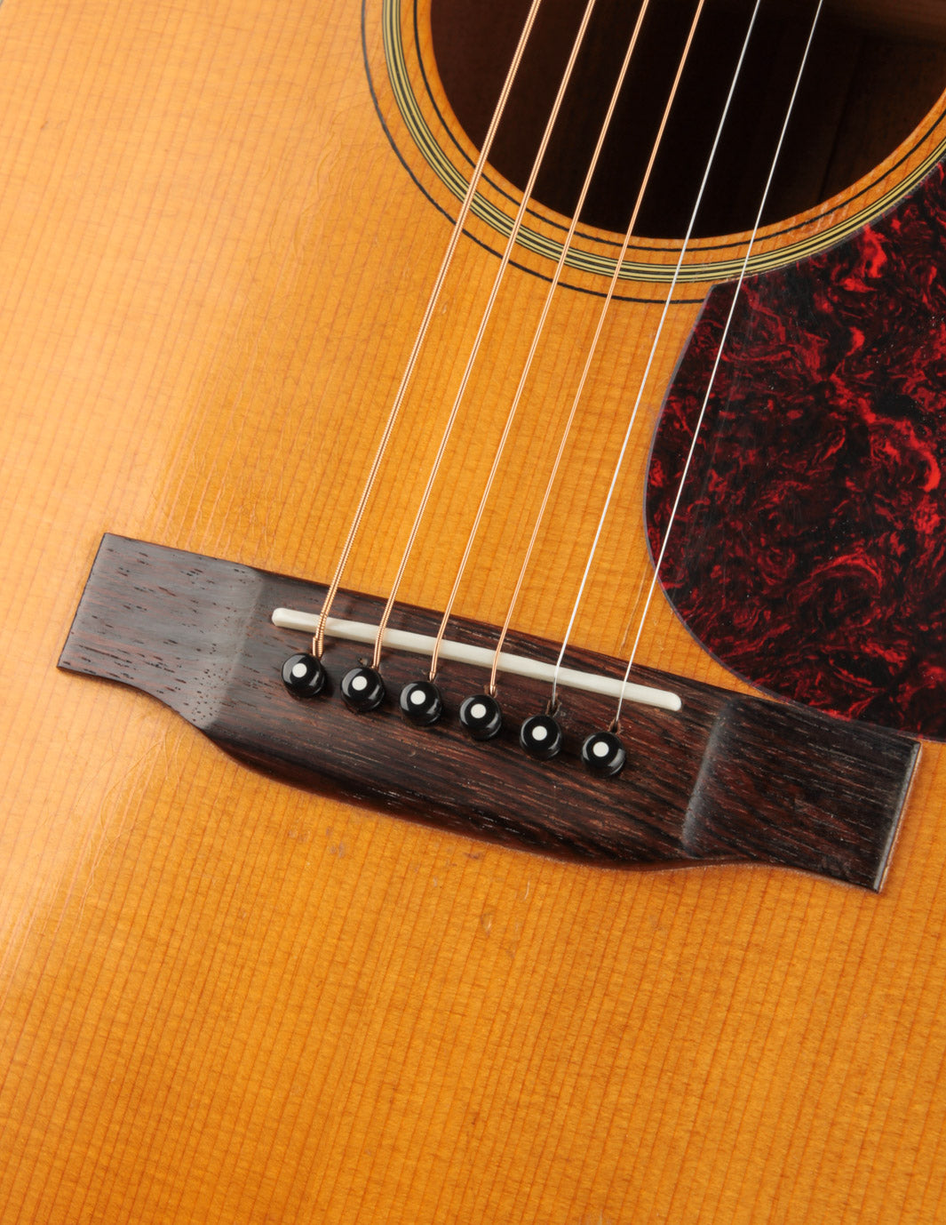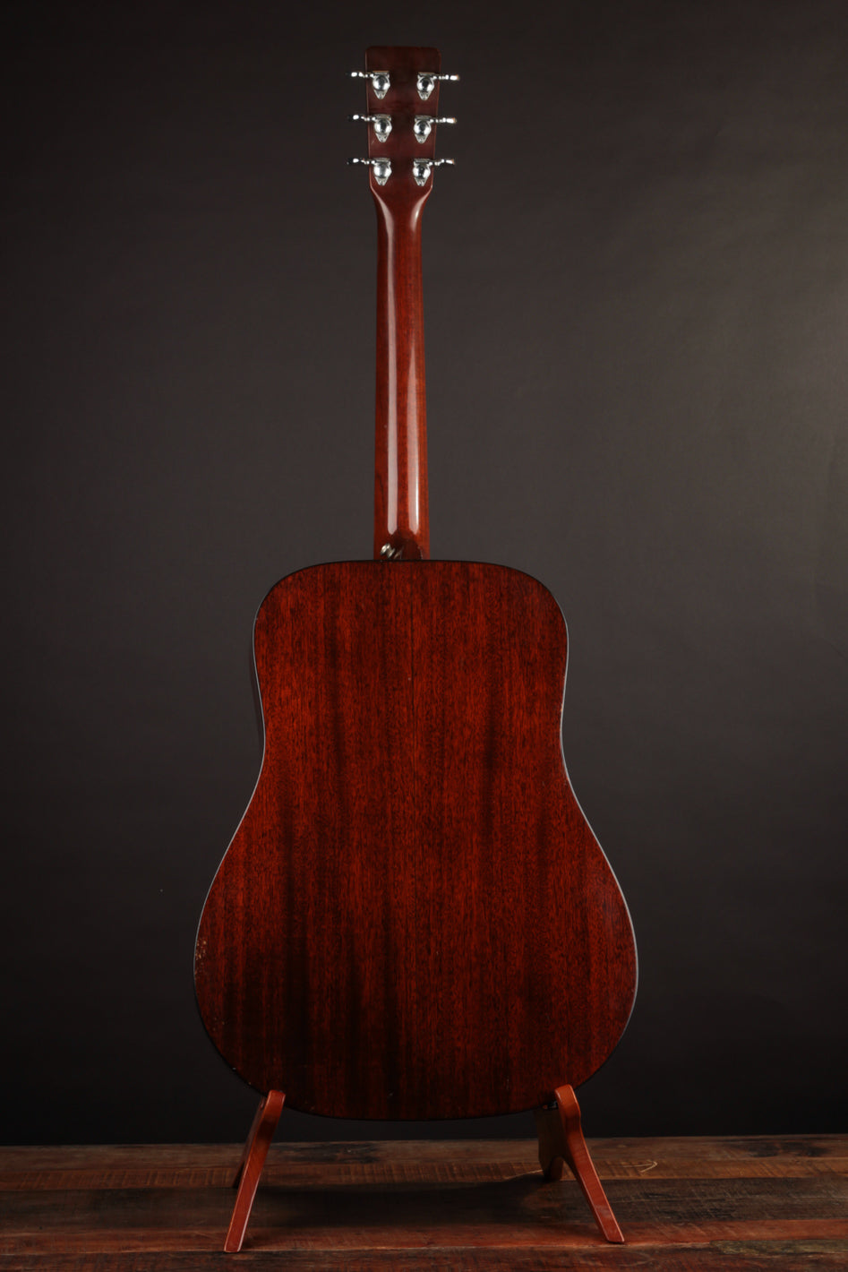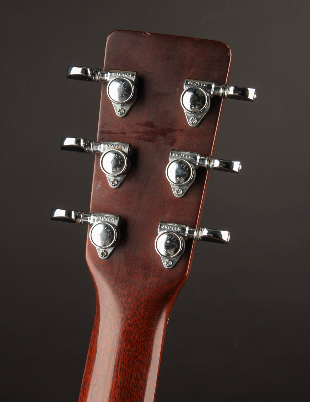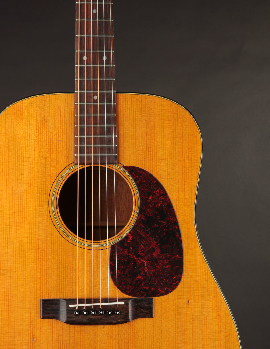 This guitar has had a well-done neck reset in the recent past, and it sets up beautifully with stock Martin saddle height and medium gauge strings. The pickguard has been replaced, and the finish has been buffed, making it appear a bit glossier than it otherwise might appear. There is some light finish crazing, and a smattering of dings and scrapes, but no cracks and a sound structure. Priced with non-original hardshell case.