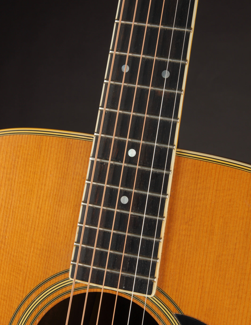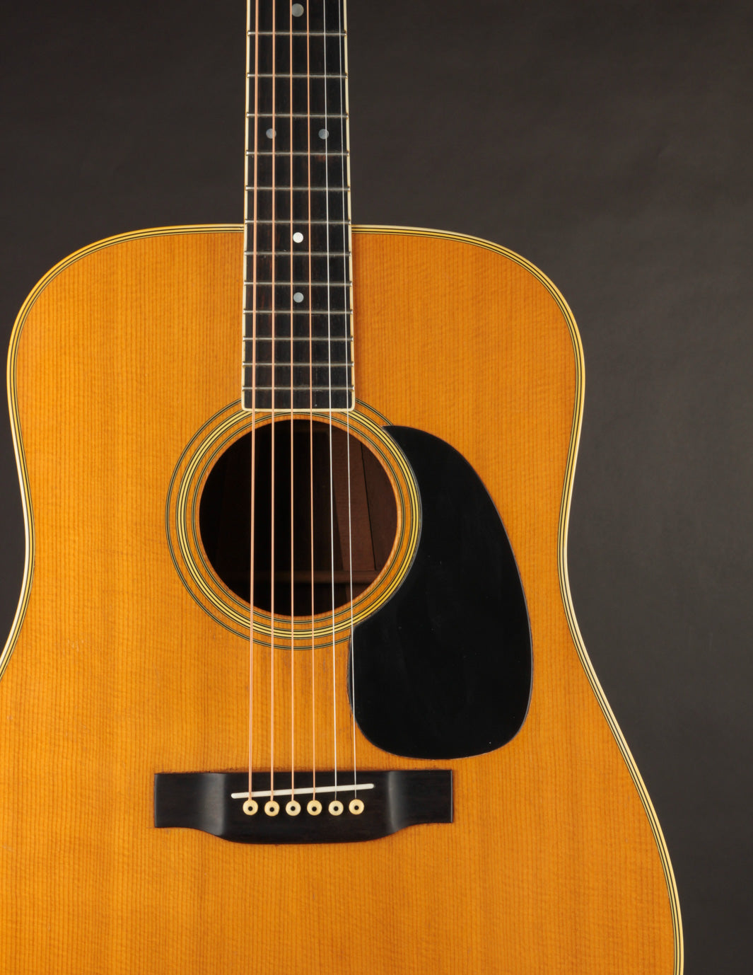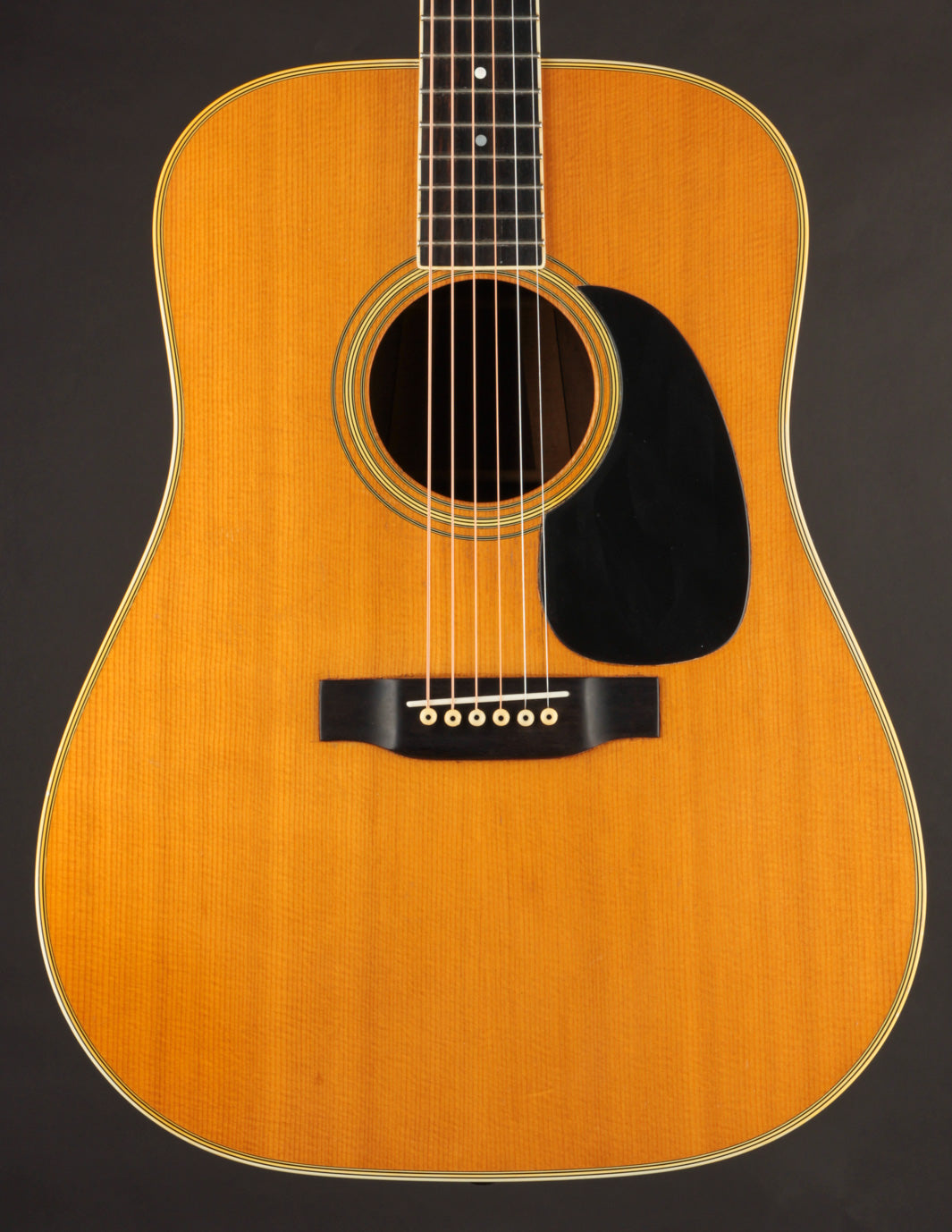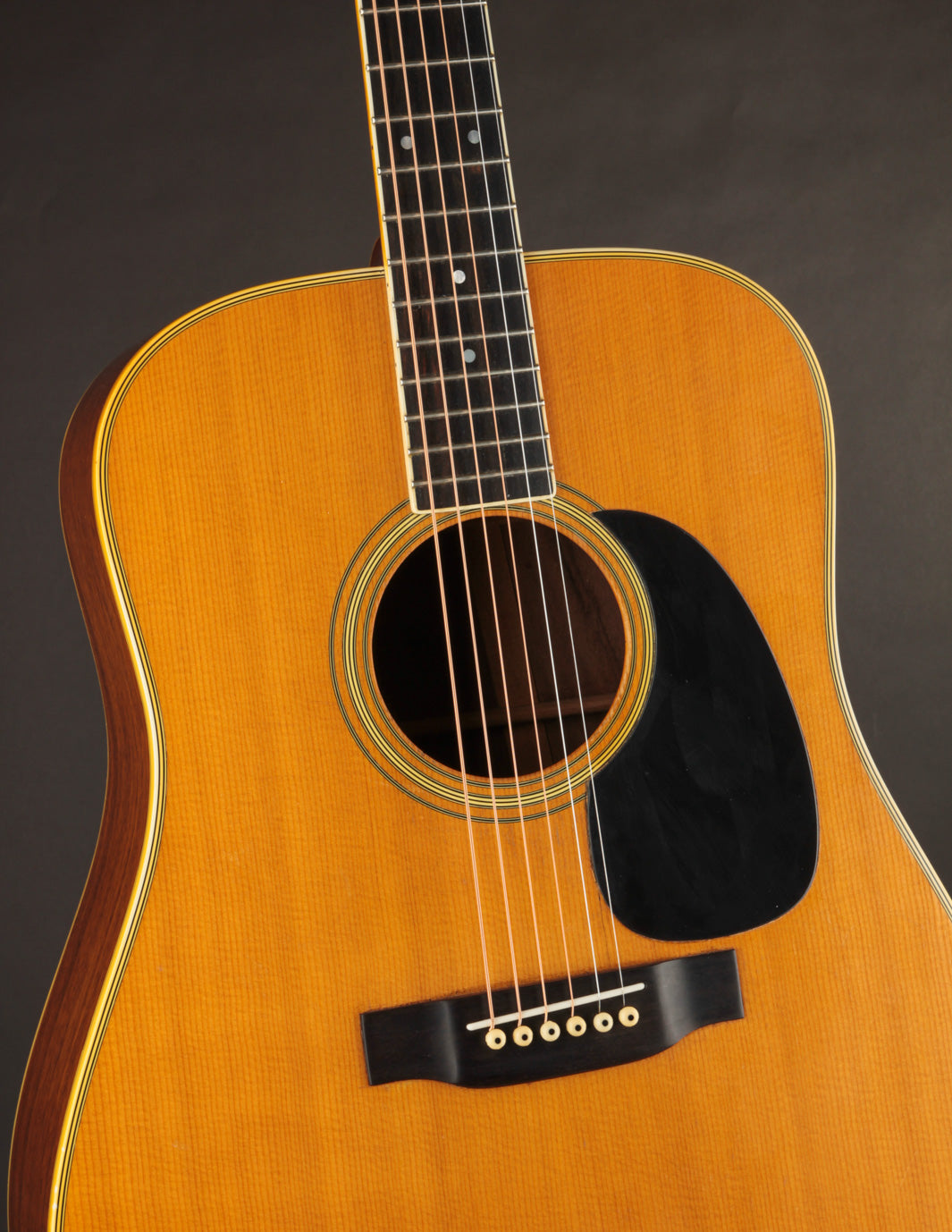 We acquired this 1971 Martin D-35 from the estate of a longtime customer, who'd had it in his possession for many years (though we're not sure he was the original owner). The guitar had been sitting unplayed for much of the last decade, and was due for its hundred-thousand-mile tune up. We reset the neck, cleaned the frets, and set it up, and it's now ready for its next 50 years. This D-35 has a very rewarding, boomy sound; and it features some striking-looking Indian Rosewood to boot. A great choice for anyone interested in a vintage (yes, we know, this is a 70's guitar, so it may not meet the purist standard for that term) Martin with richness aplenty in its voice.