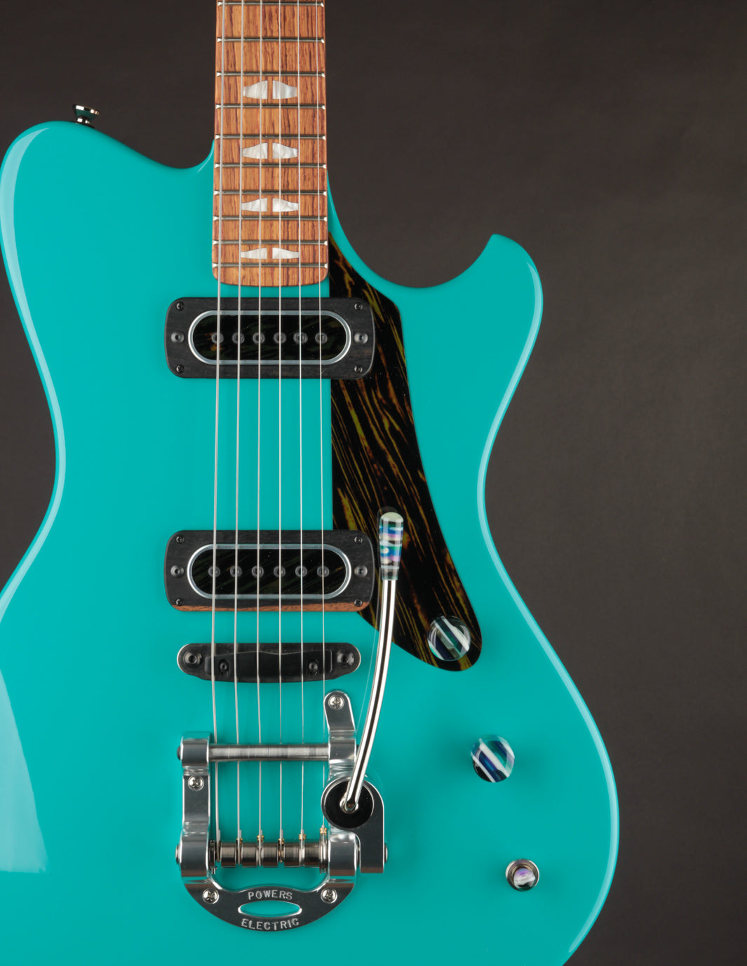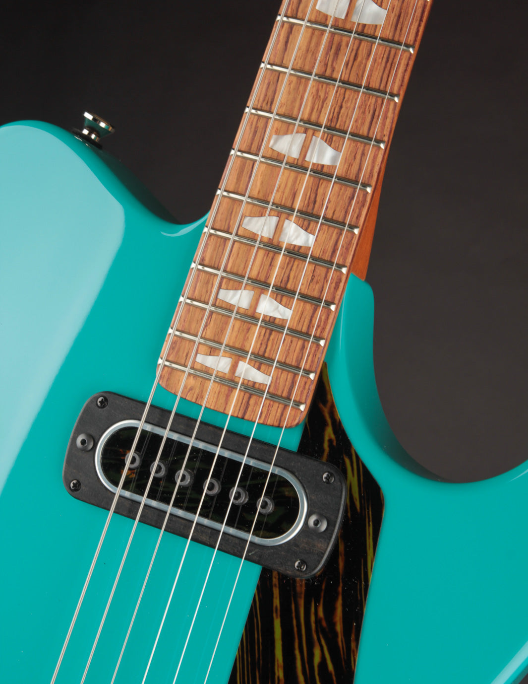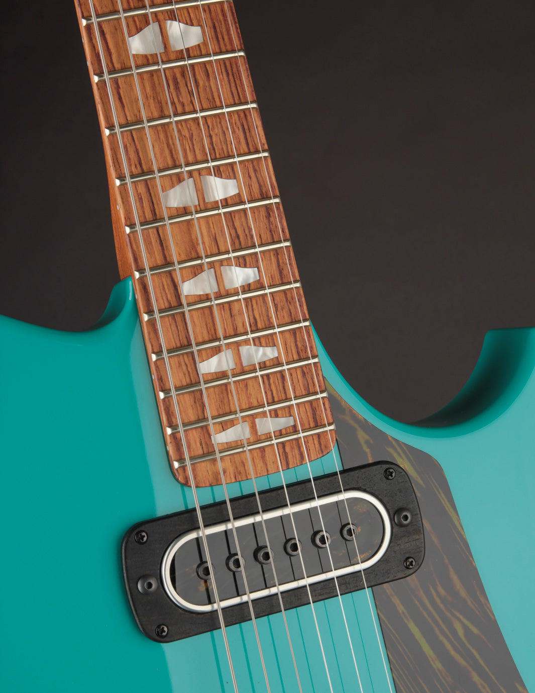 Popping the case of the Tropical Turquoise A-Type open revealed a much needed pop of Southern California. This guitar just embodies warm weather and has us imagining taking the classic car down to the beach for a little surfing and some much needed relaxation.