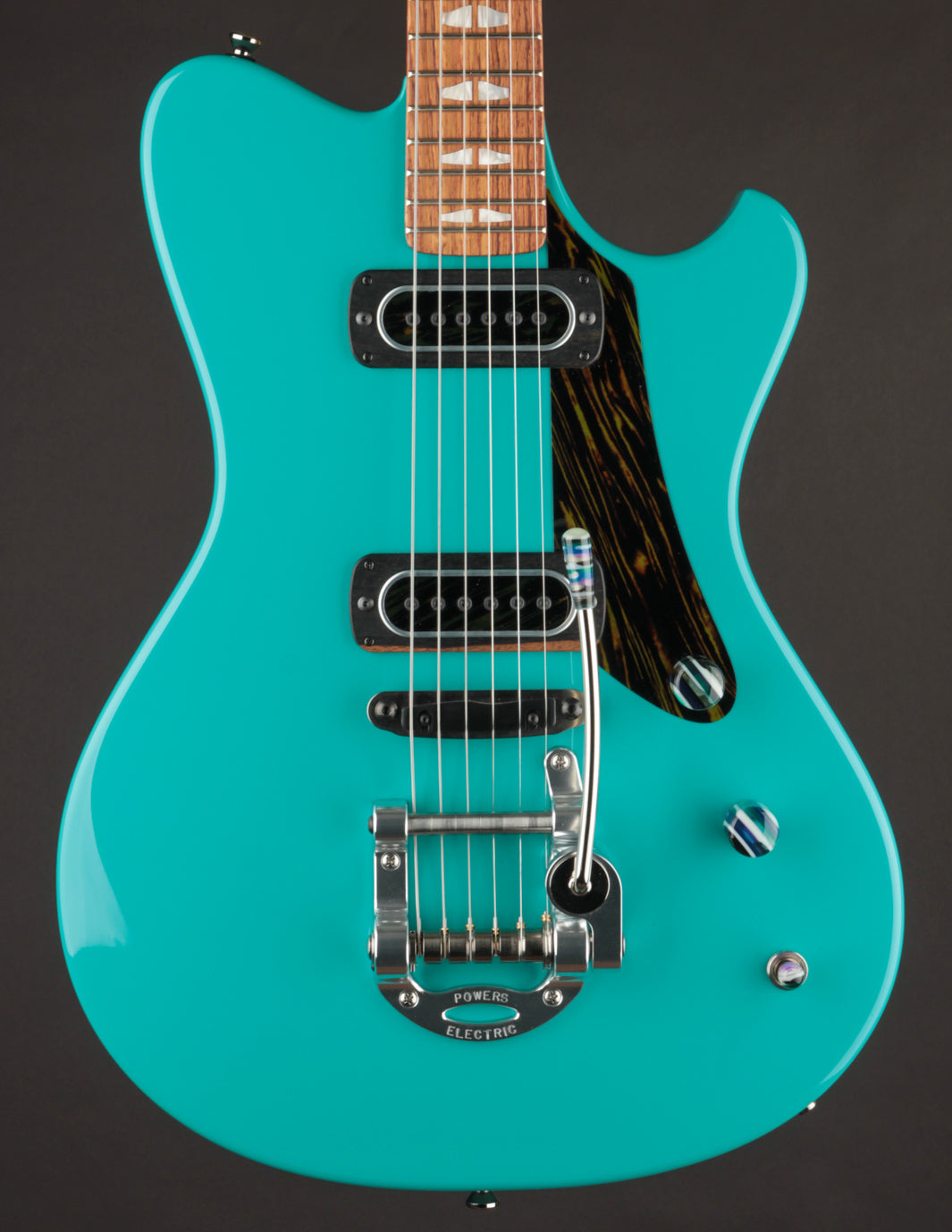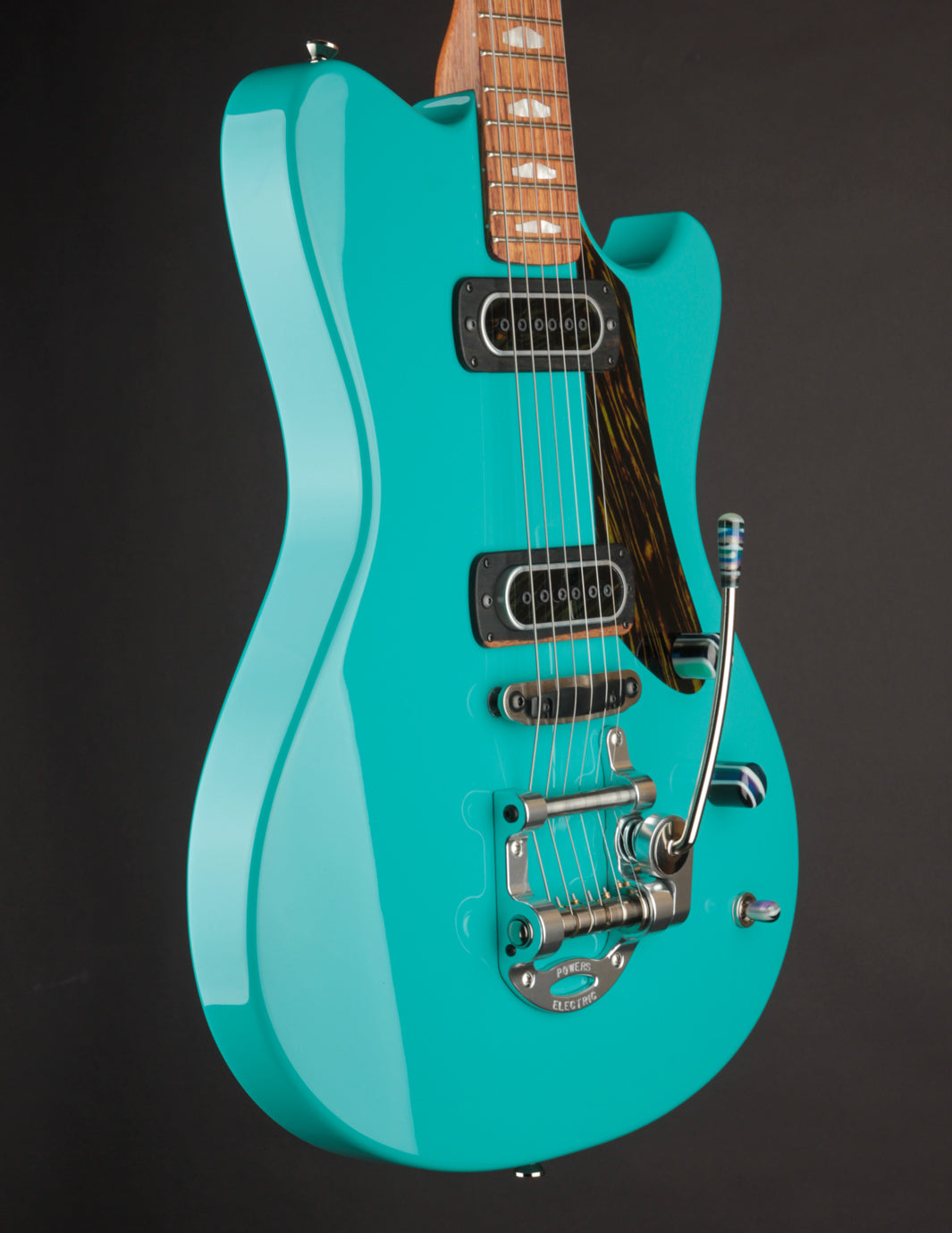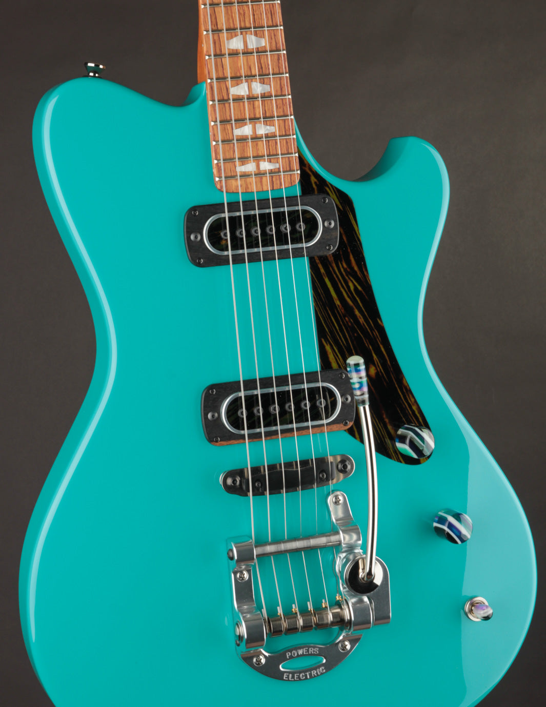 Popping the case of the Tropical Turquoise A-Type open revealed a much needed pop of Southern California. This guitar just embodies warm weather and has us imagining taking the classic car down to the beach for a little surfing and some much needed relaxation.