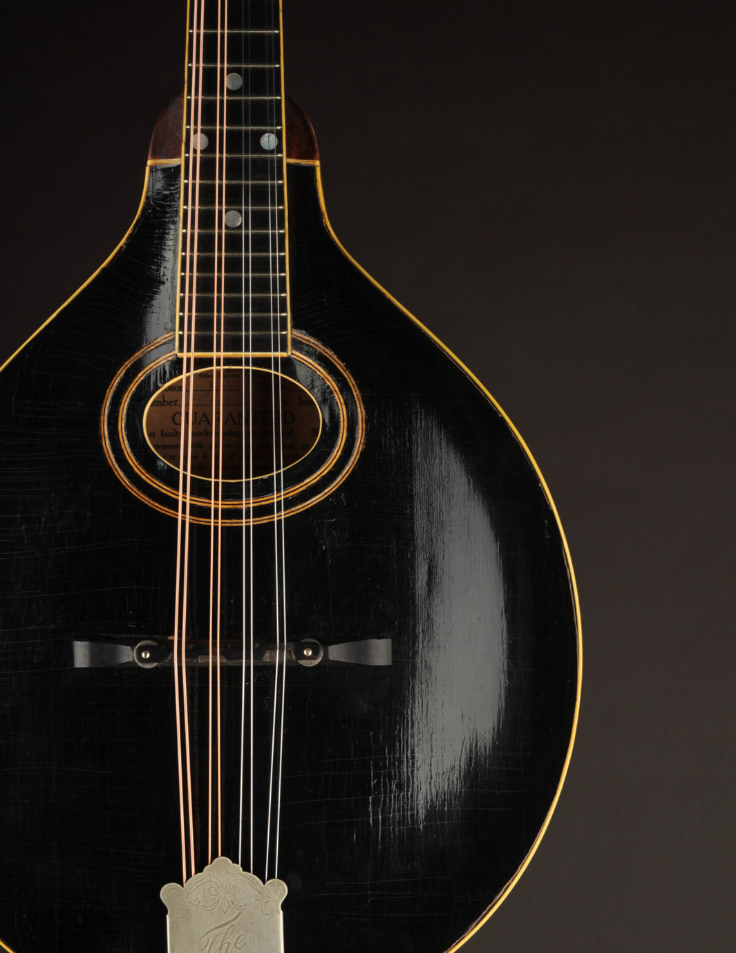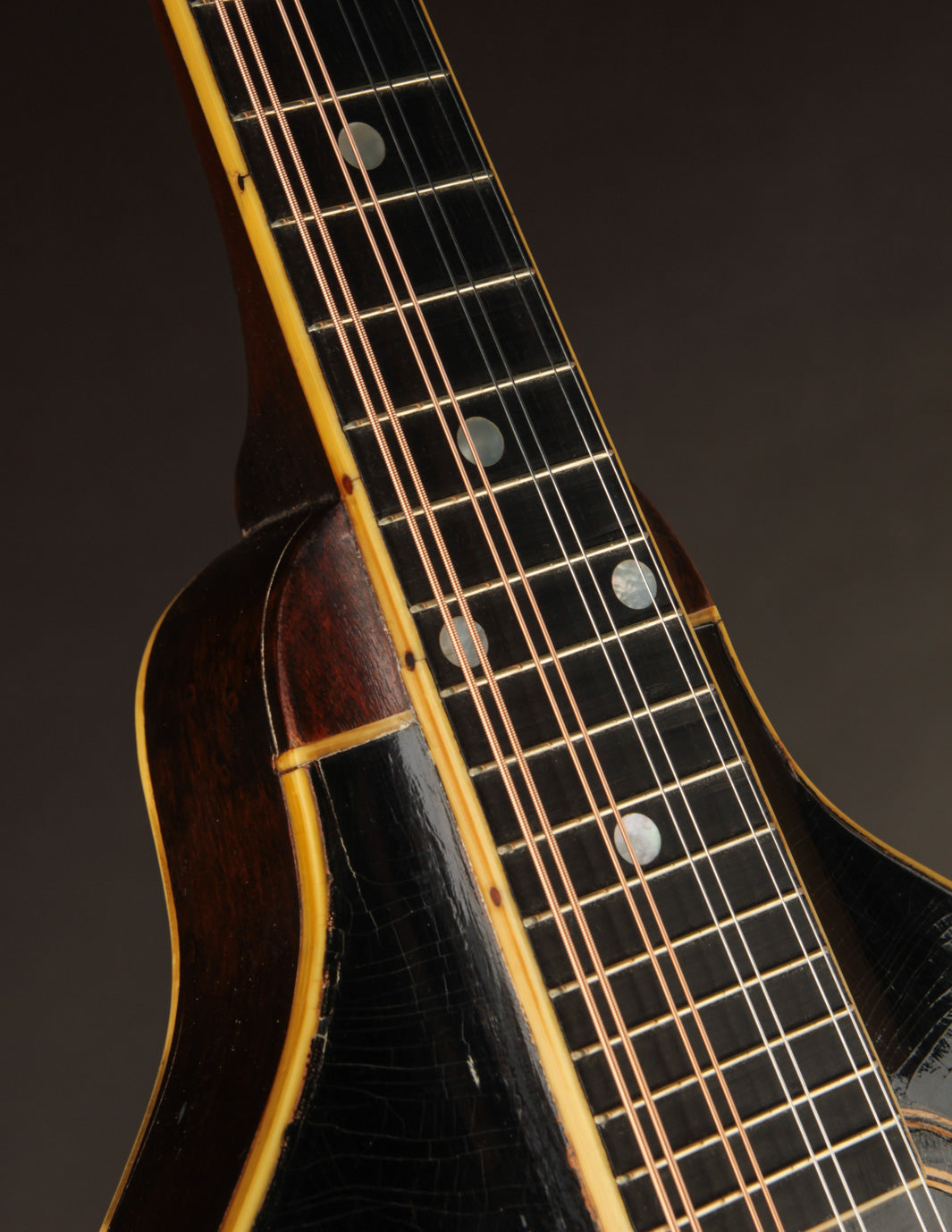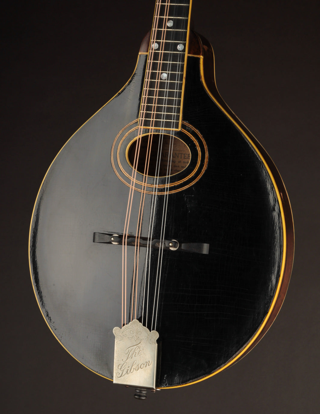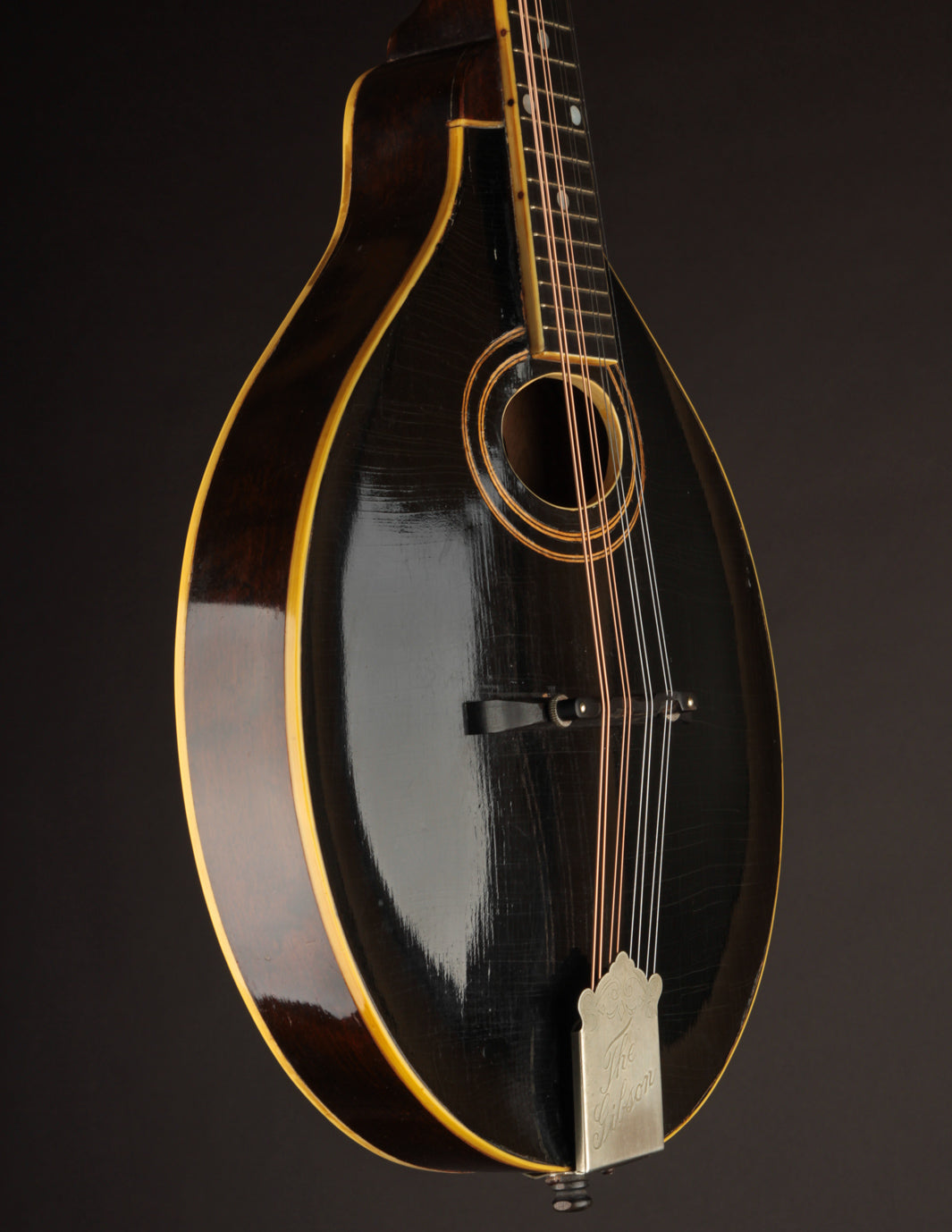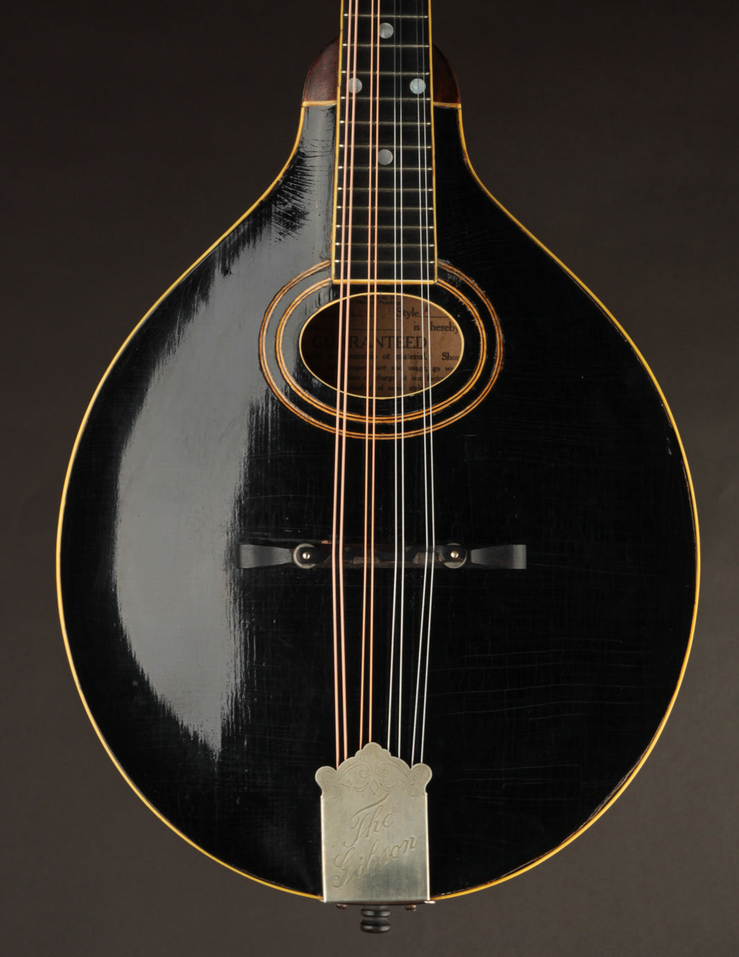 The most sought-after of the vintage Gibson A model mandolins, in a handsome black top finish.